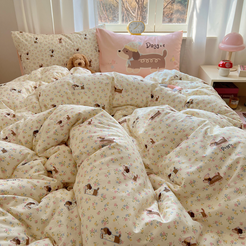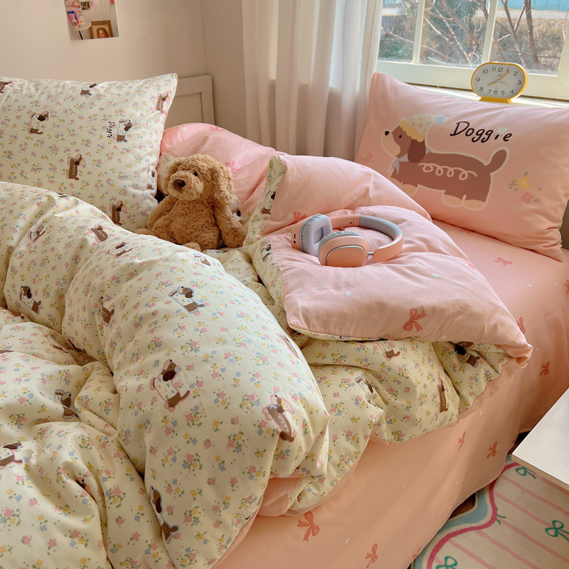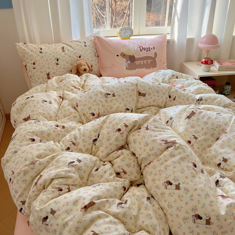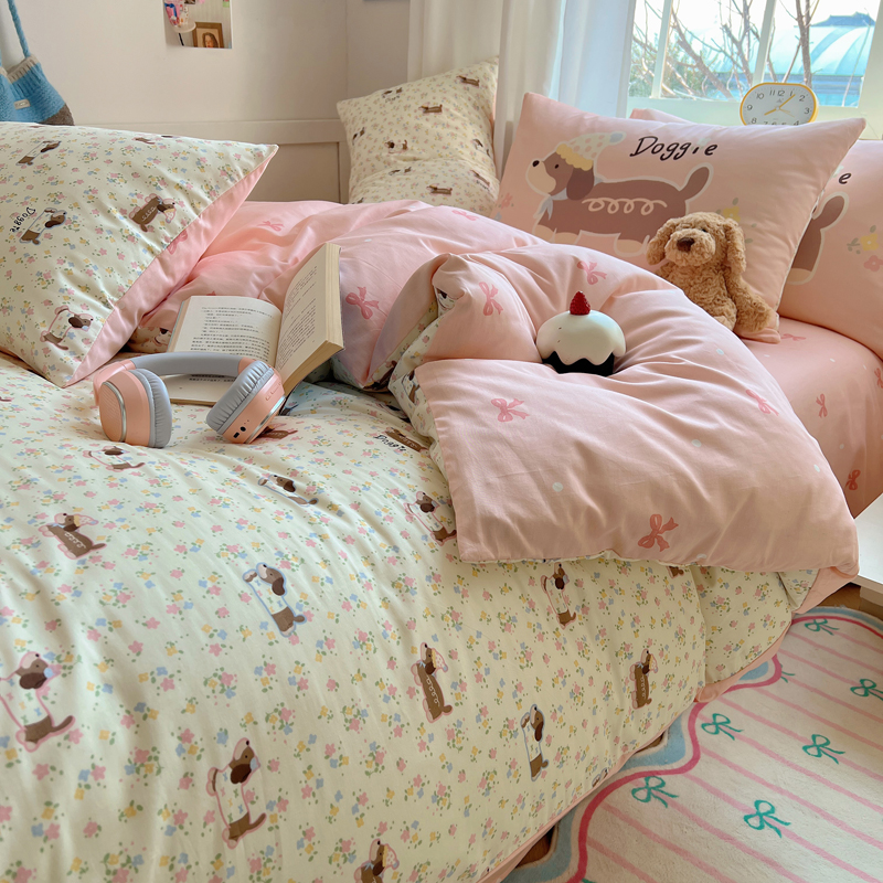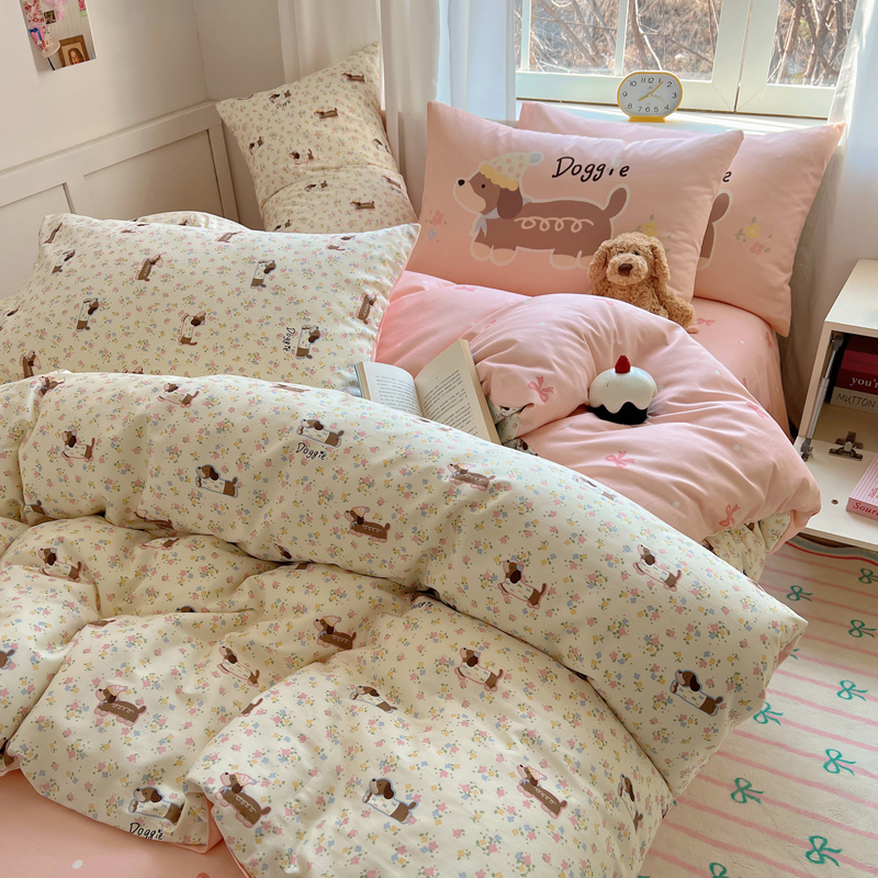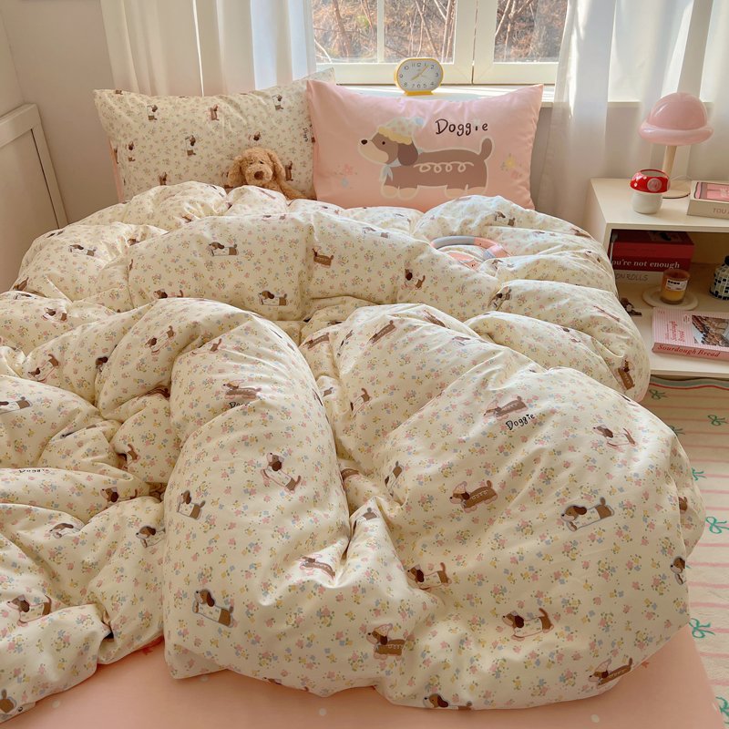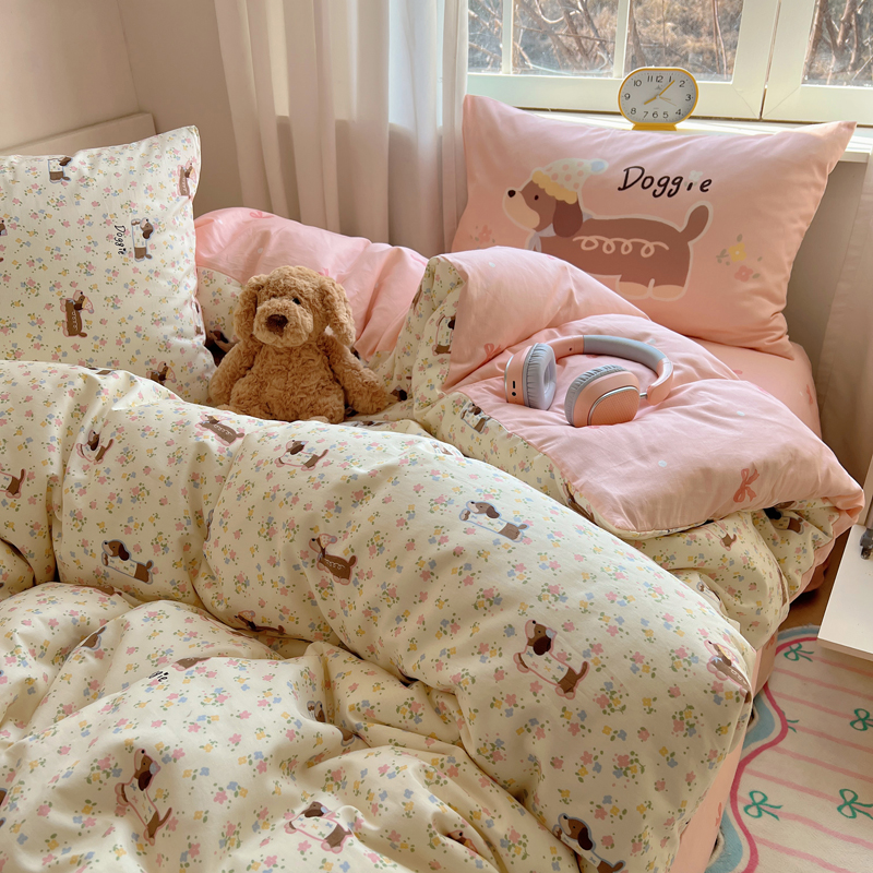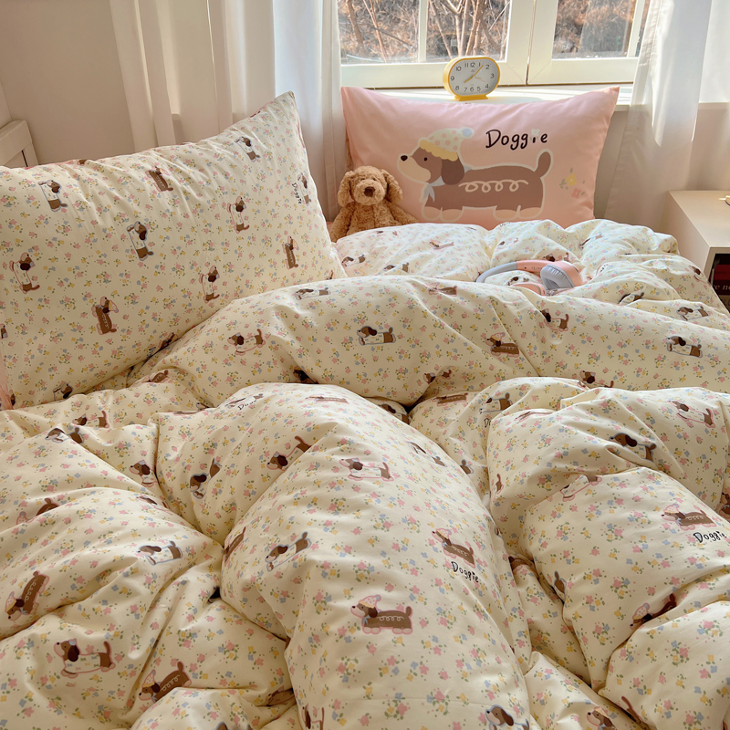 桃喜 2025春夏新款全棉13372大版枕套混搭系列四件套 小花狗