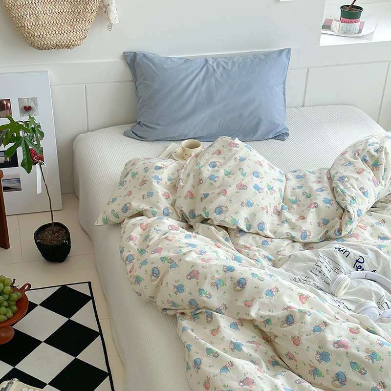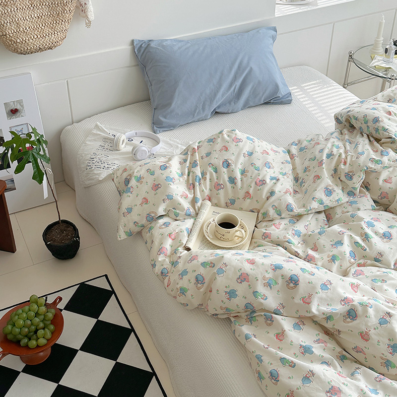 (总)尺素 2026新款纯棉卡通ins风四件套可爱少女风全棉被套纯色1.8床笠加大床单学生1.2三件套,告白熊--浅蓝,格调粉--奶黄,格调粉--桃粉,蓝白情书--浅蓝,清梦--冰沙绿,清梦--浅黄,小熊软糖--焦糖