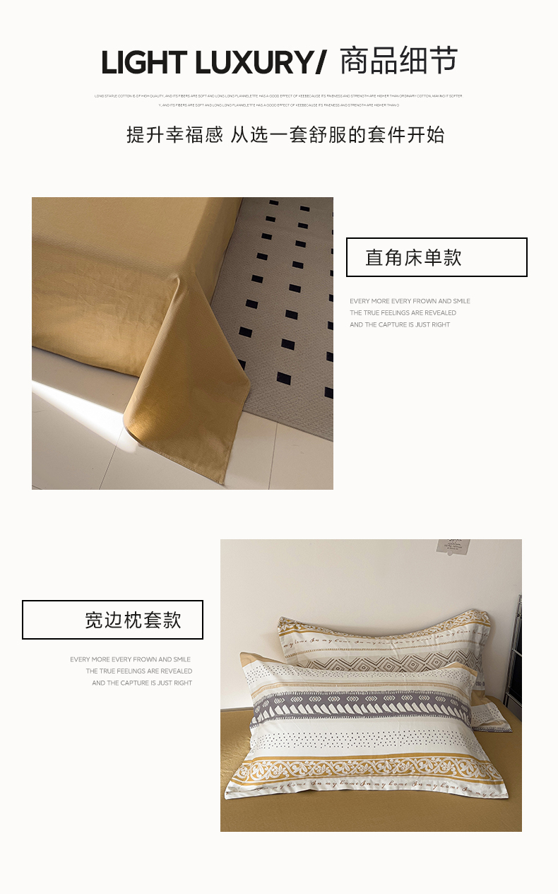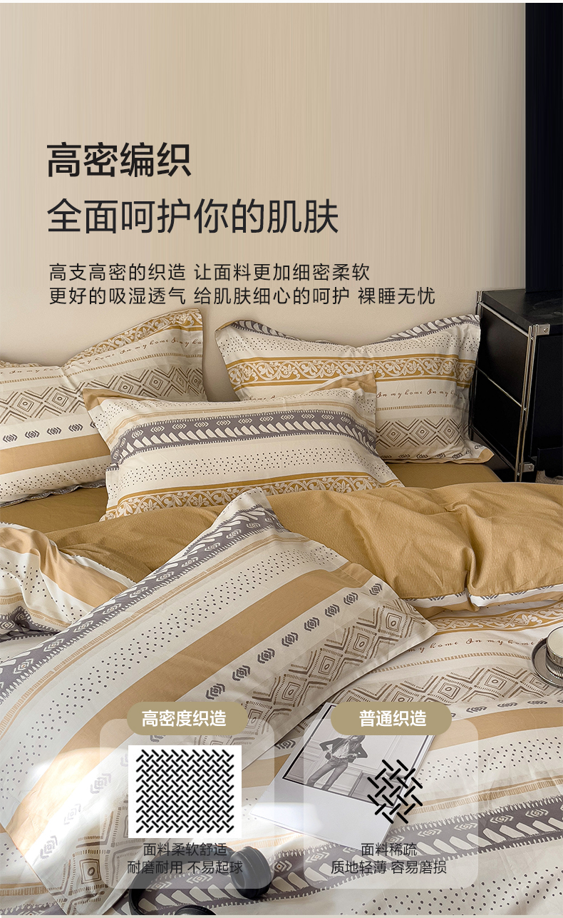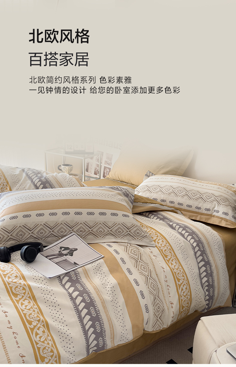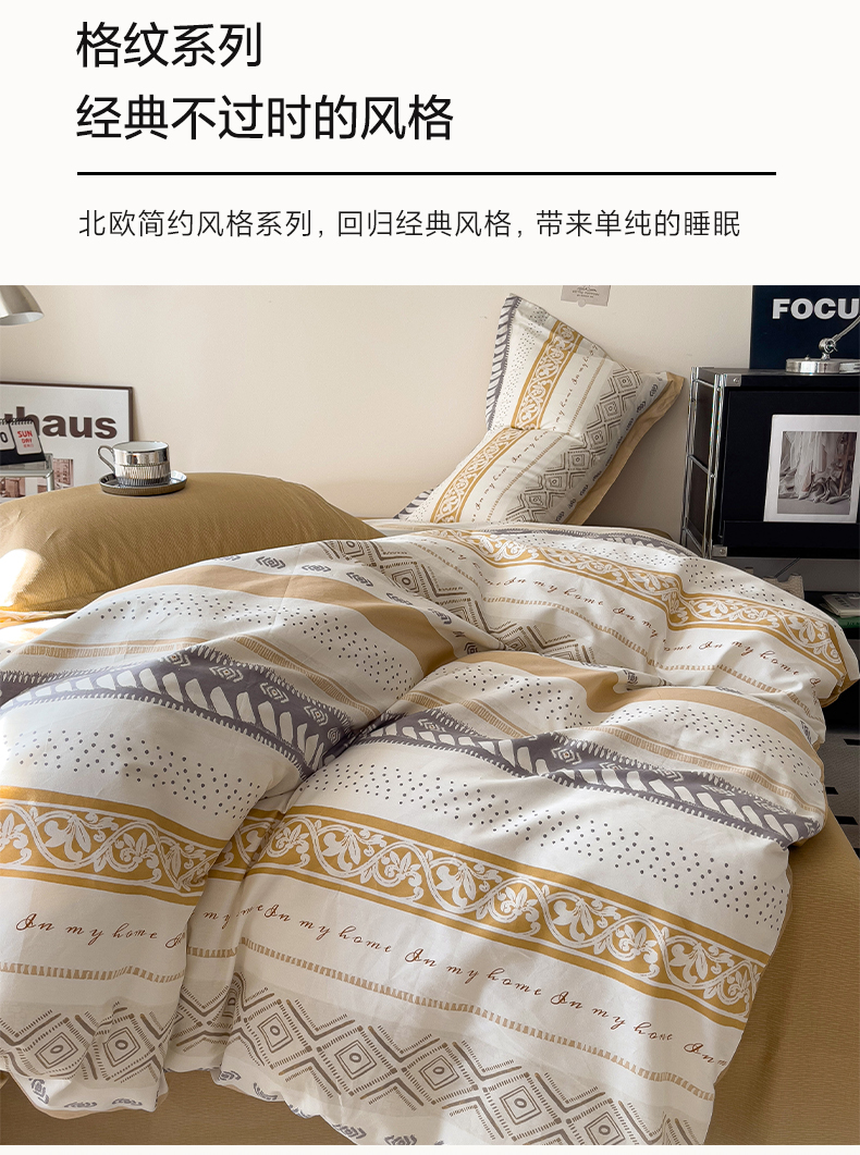 商品名称:盛馨 2025年高支高密全棉套件简约北欧风13372纯棉床笠四件套三件套 米洛