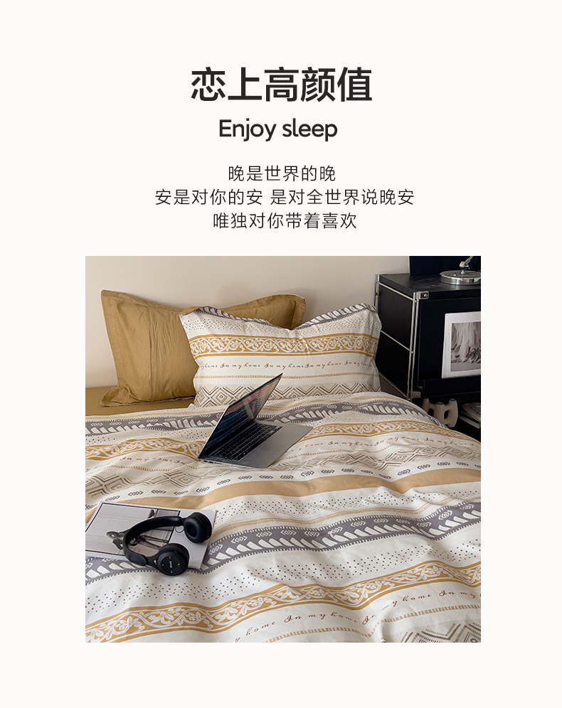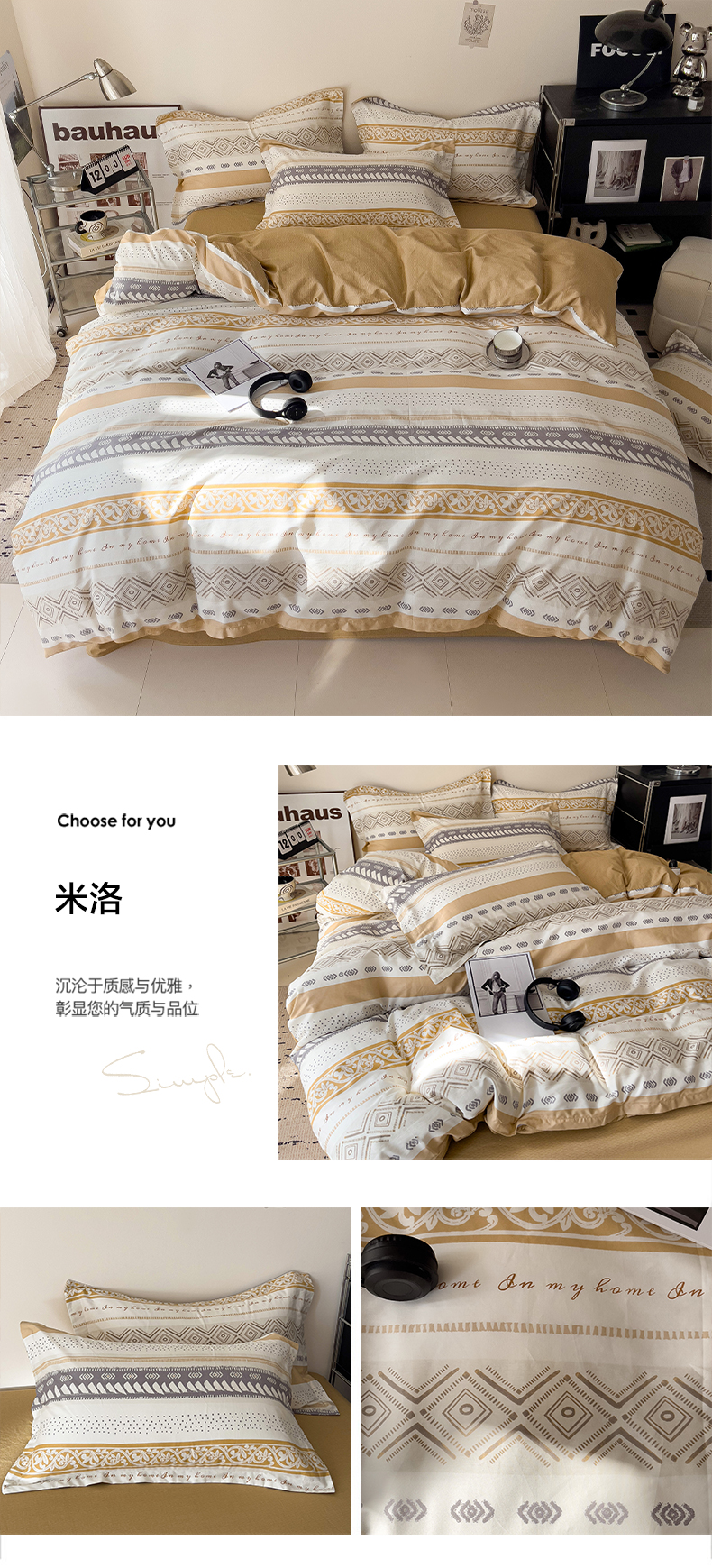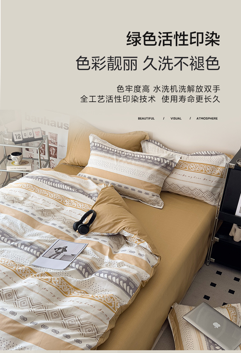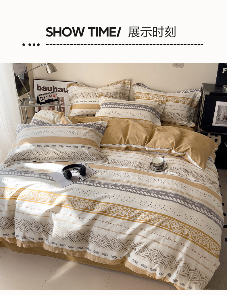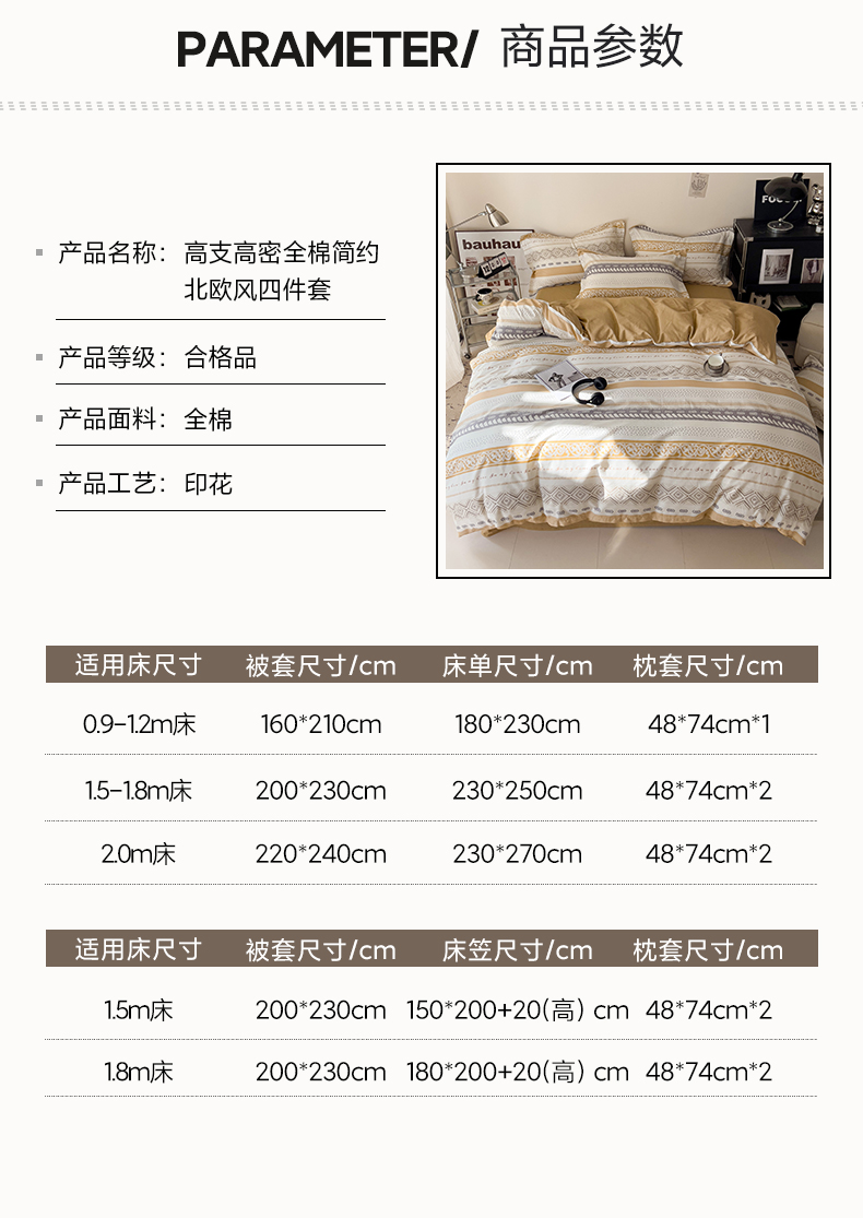 商品名称:盛馨 2025年高支高密全棉套件简约北欧风13372纯棉床笠四件套三件套 米洛