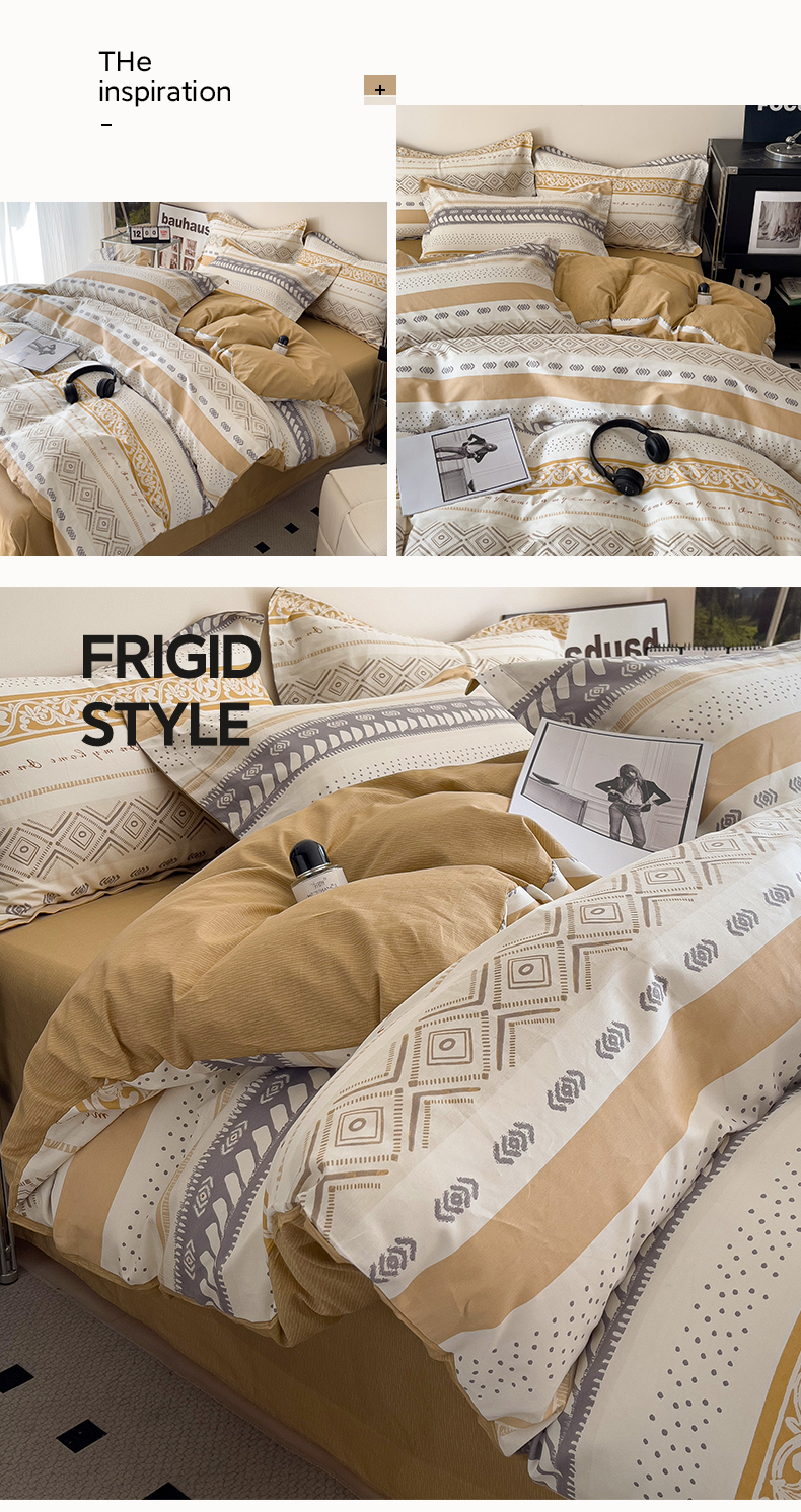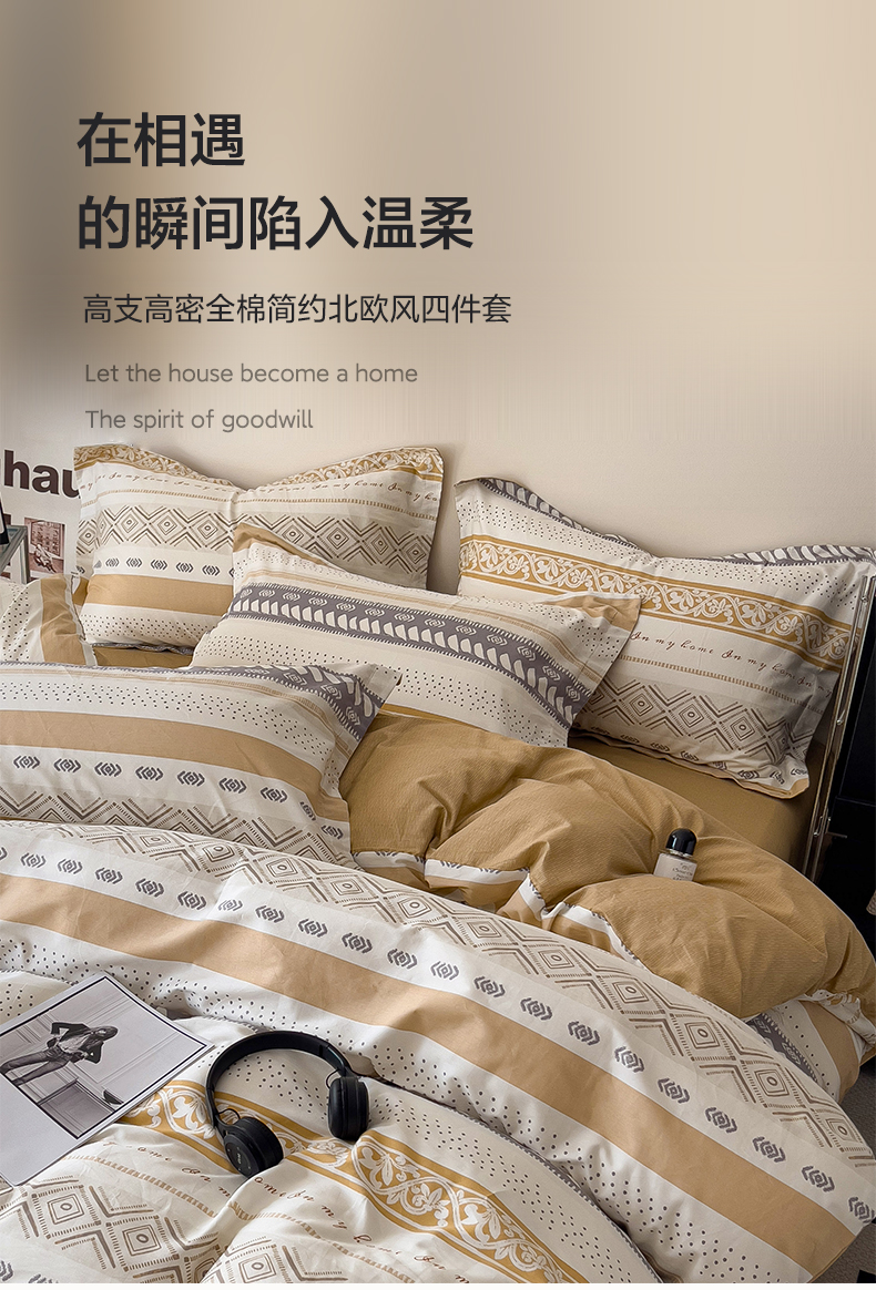 盛馨 2025年高支高密全棉套件简约北欧风13372纯棉床笠四件套三件套 米洛