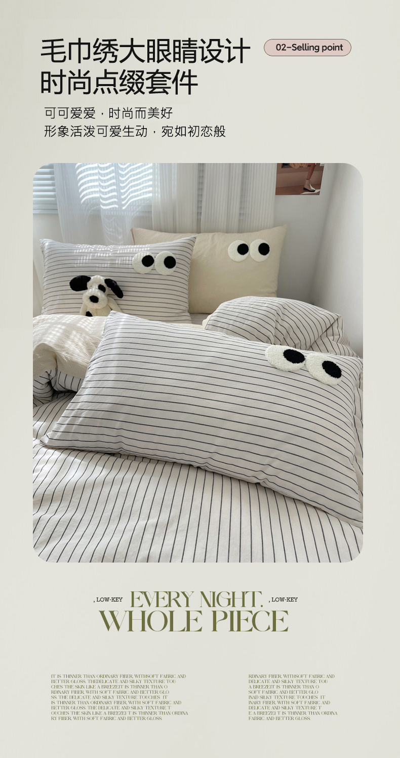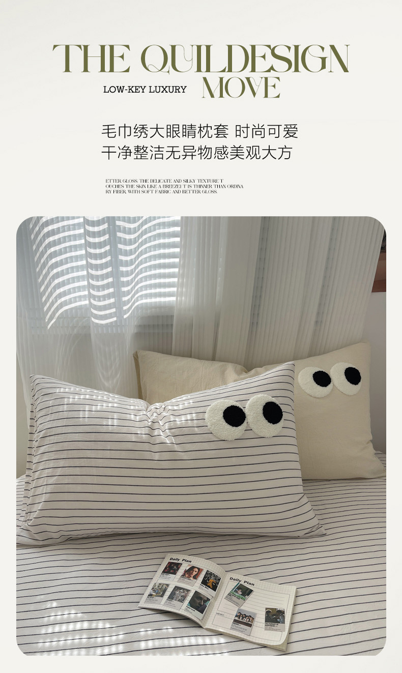 丽涵家纺 2025新品全棉水洗棉大眼毛巾绣四件套-密条系 大眼密条浅米2