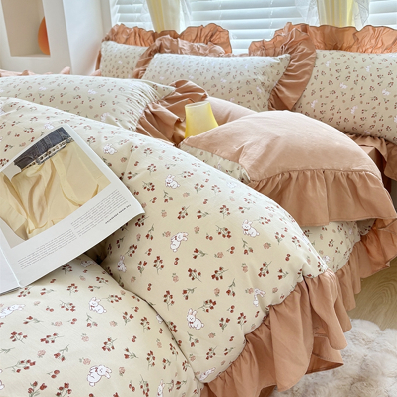 仟网汇 2025新款韩版糯糯棉花边四件套田园法式 花仙兔