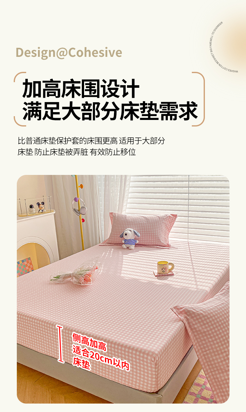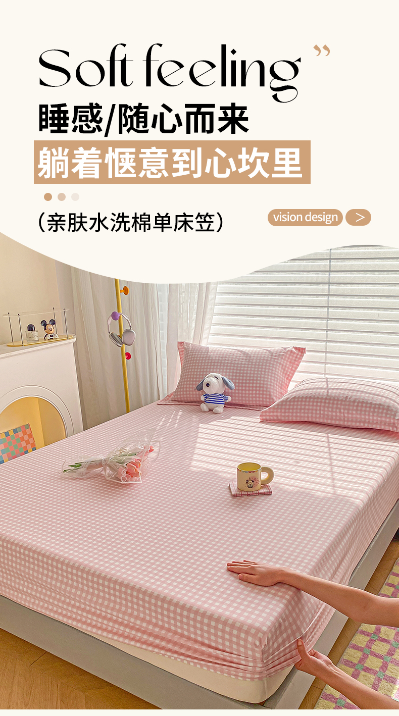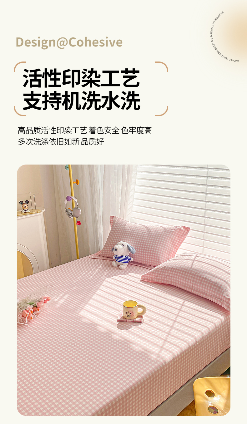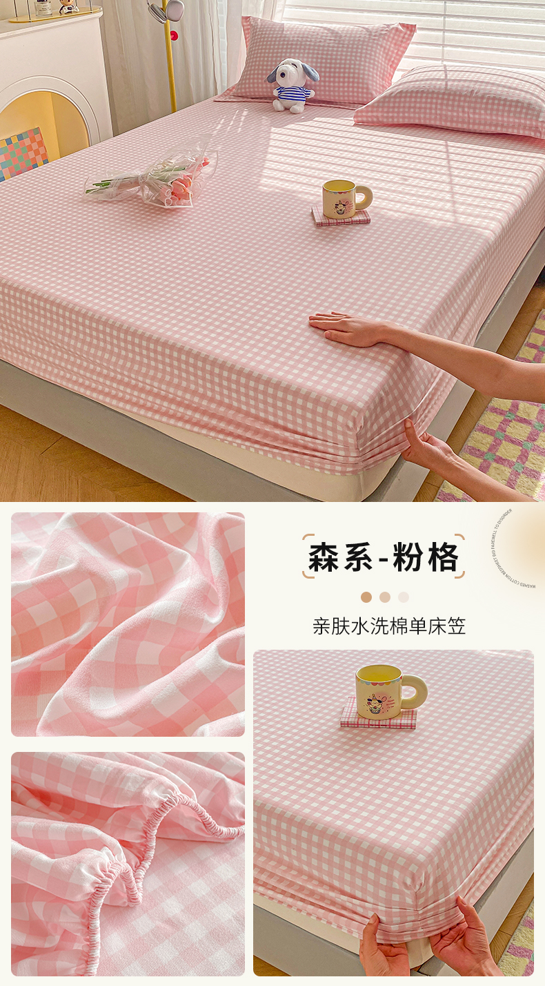 商品名称:恬澳家纺 2025新款森系水洗棉无印风单床笠 森系-粉格