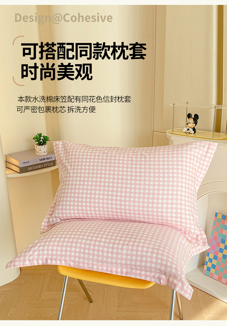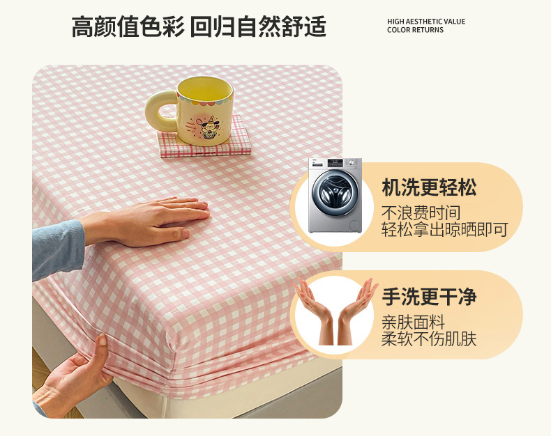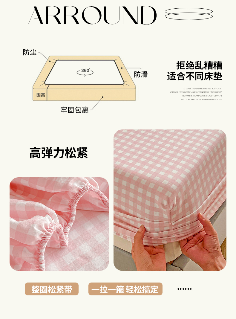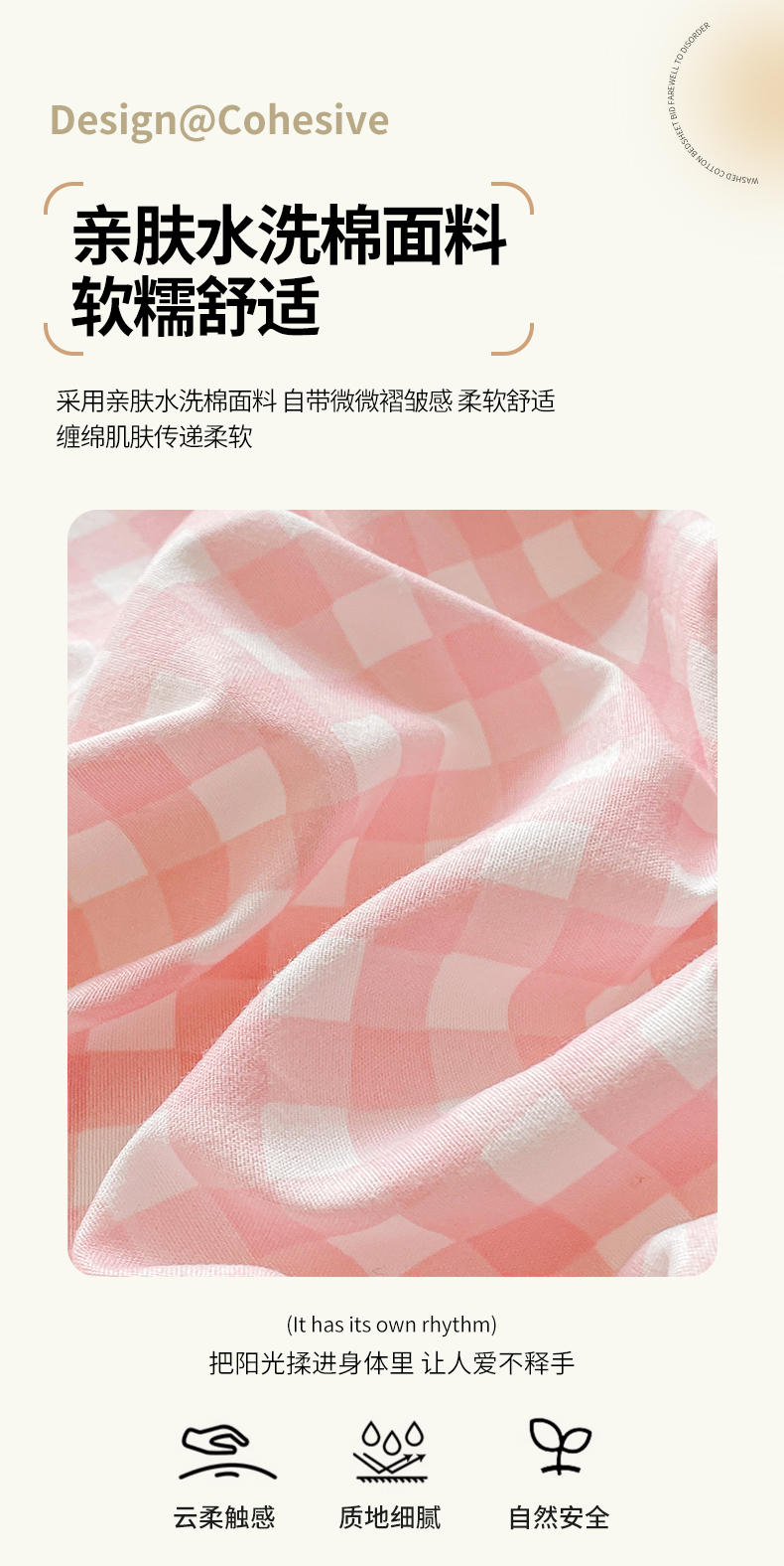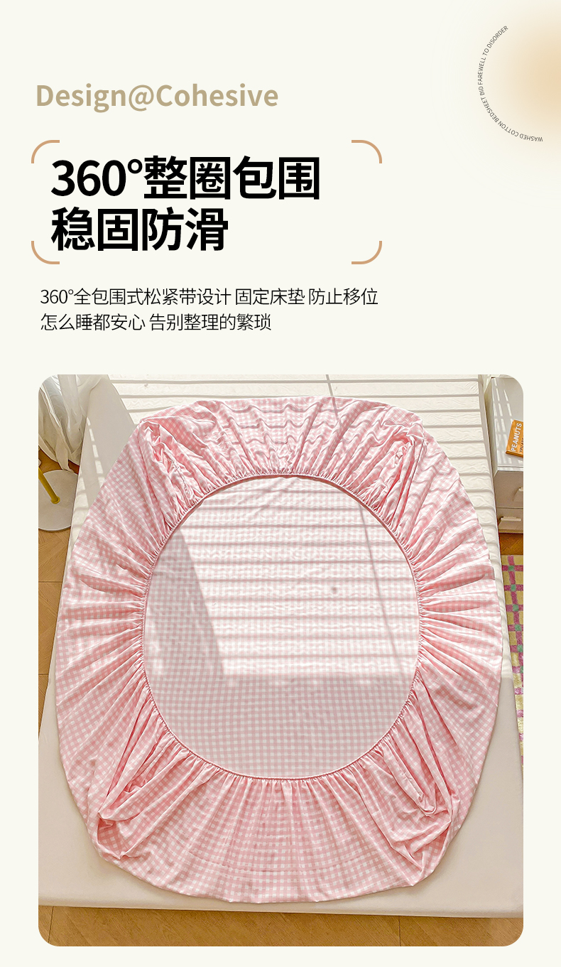 商品名称:恬澳家纺 2025新款森系水洗棉无印风单床笠 森系-粉格