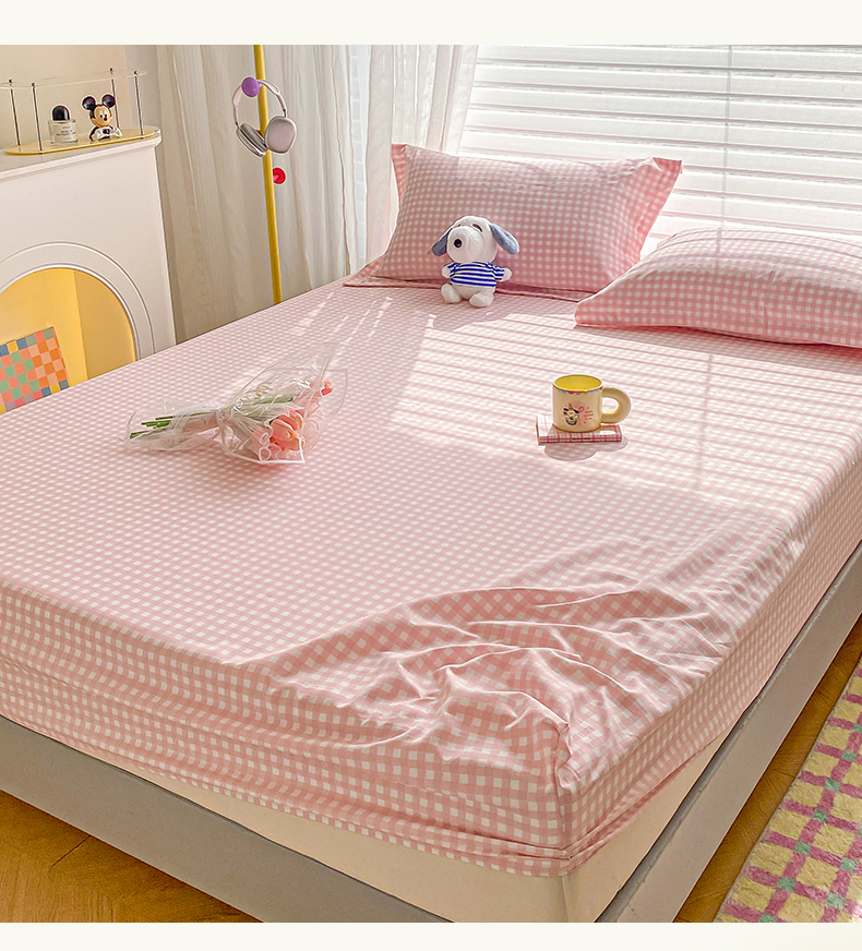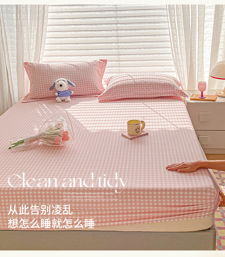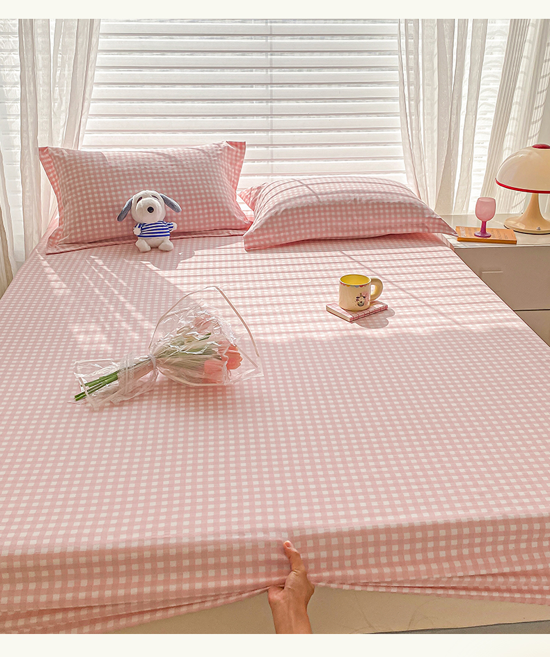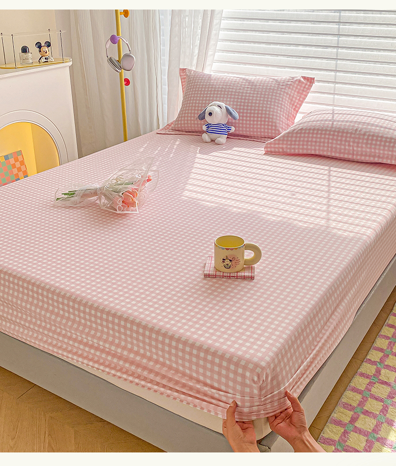 恬澳家纺 2025新款森系水洗棉无印风单床笠 森系-粉格