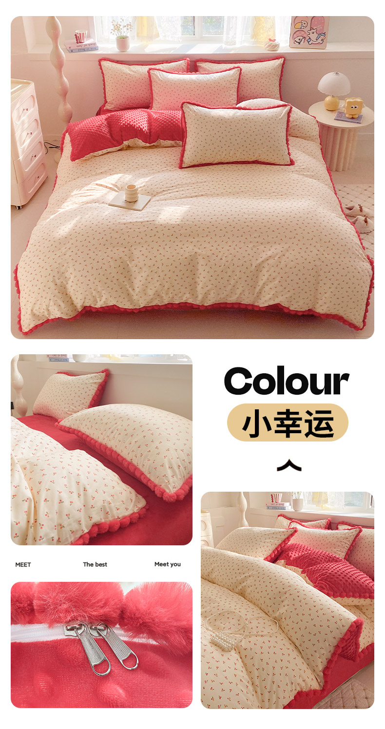 千朵 2025新款棉加豆豆绒毛毛球边四件套 小幸运