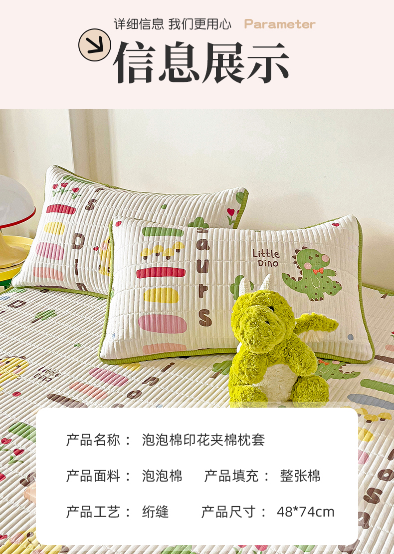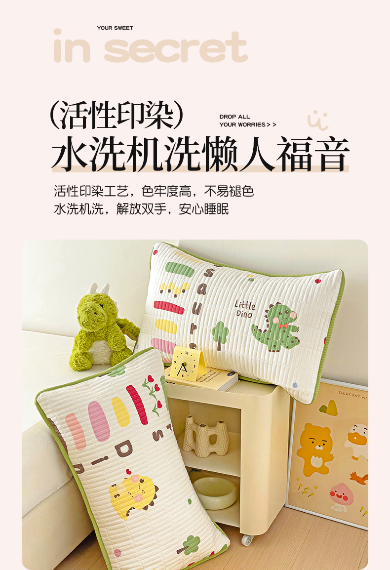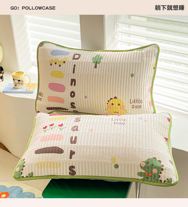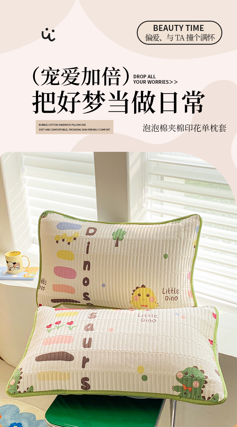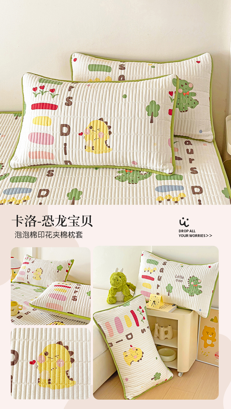 商品名称:恬澳家纺 2025新款泡泡棉印花卡洛夹棉枕套 卡洛-恐龙宝贝