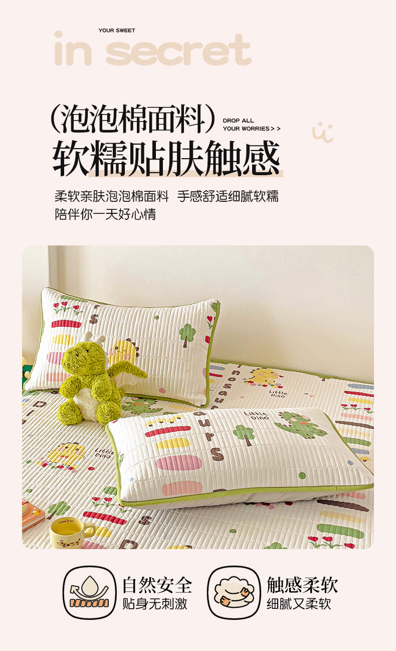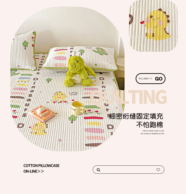 恬澳家纺 2025新款泡泡棉夹棉印花床护垫-场景二 卡洛-恐龙宝贝,卡洛-恐龙宝贝