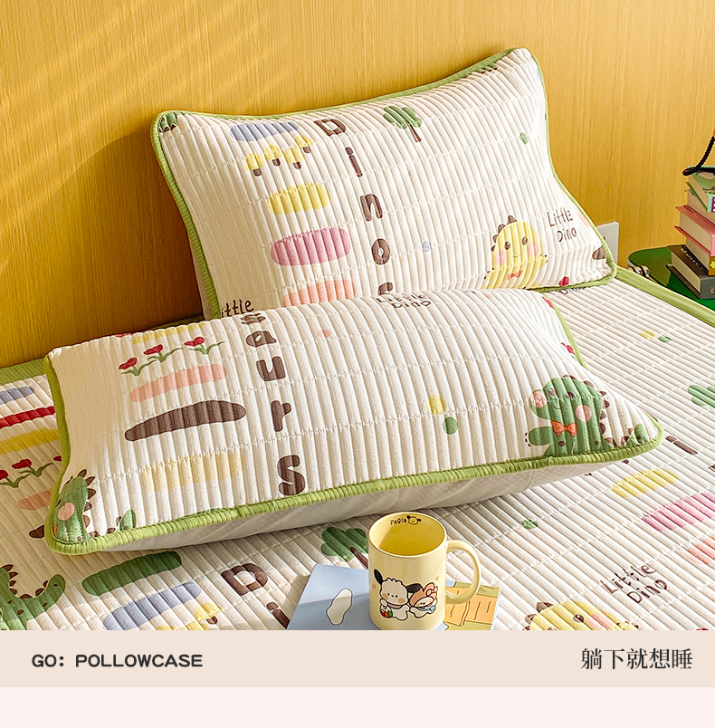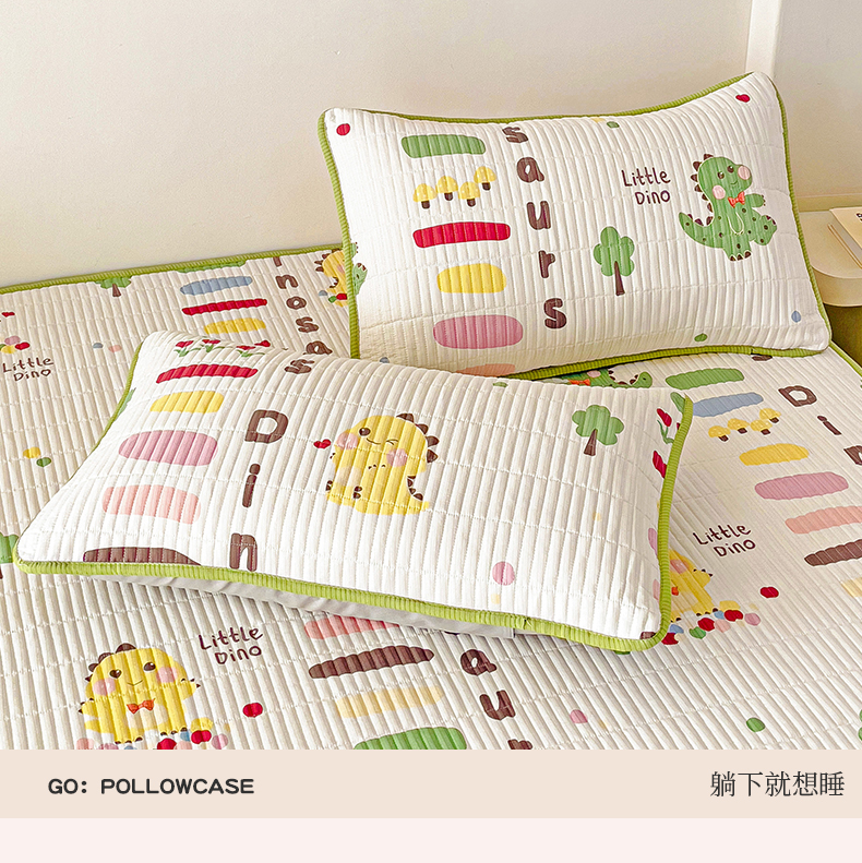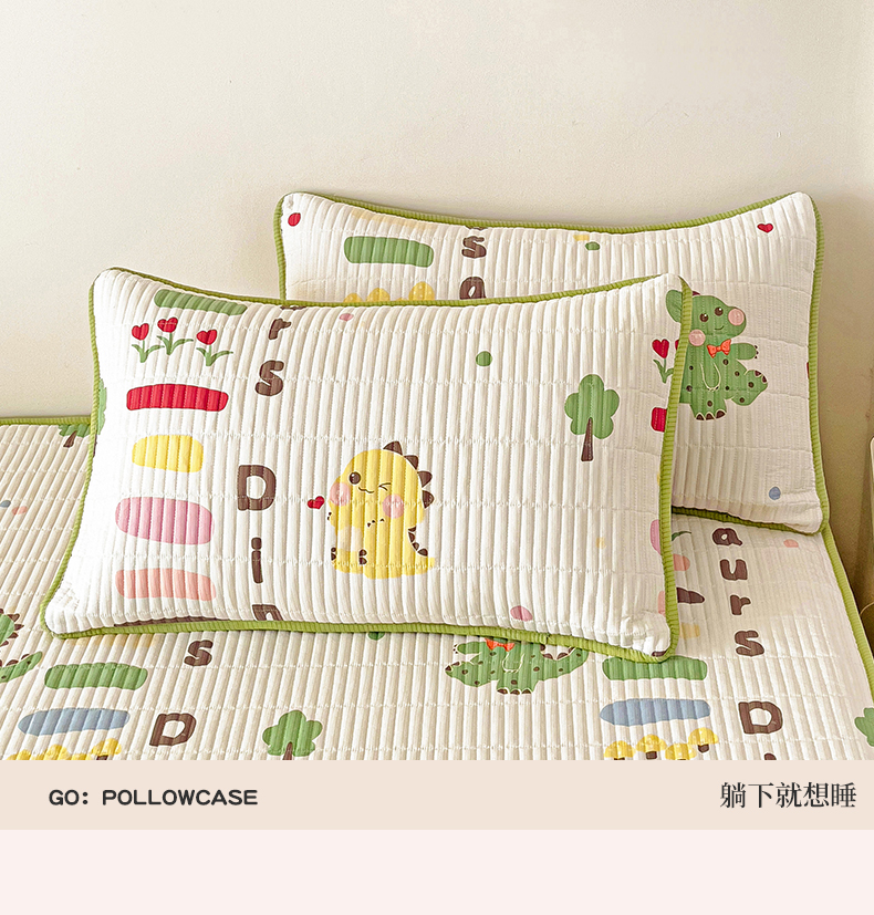 恬澳家纺 2025新款泡泡棉印花卡洛夹棉枕套 卡洛-恐龙宝贝