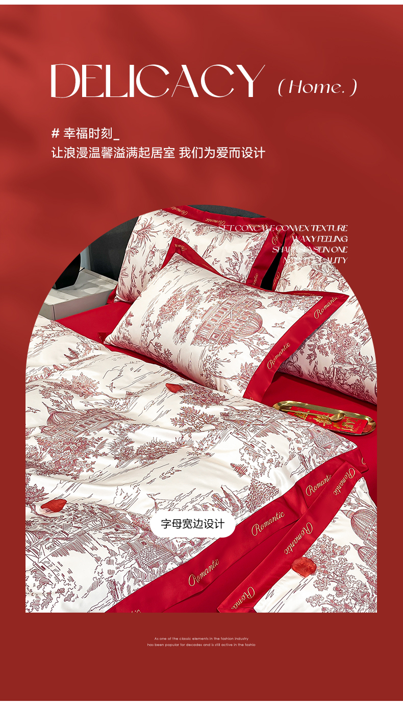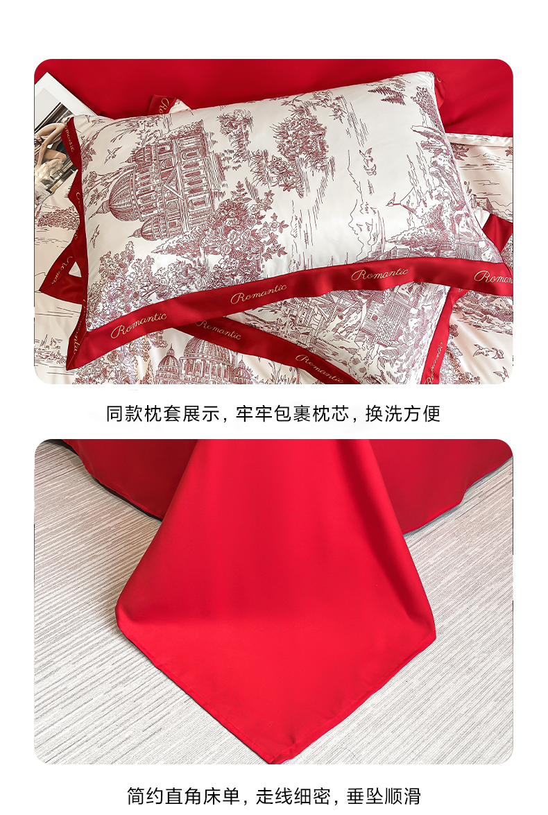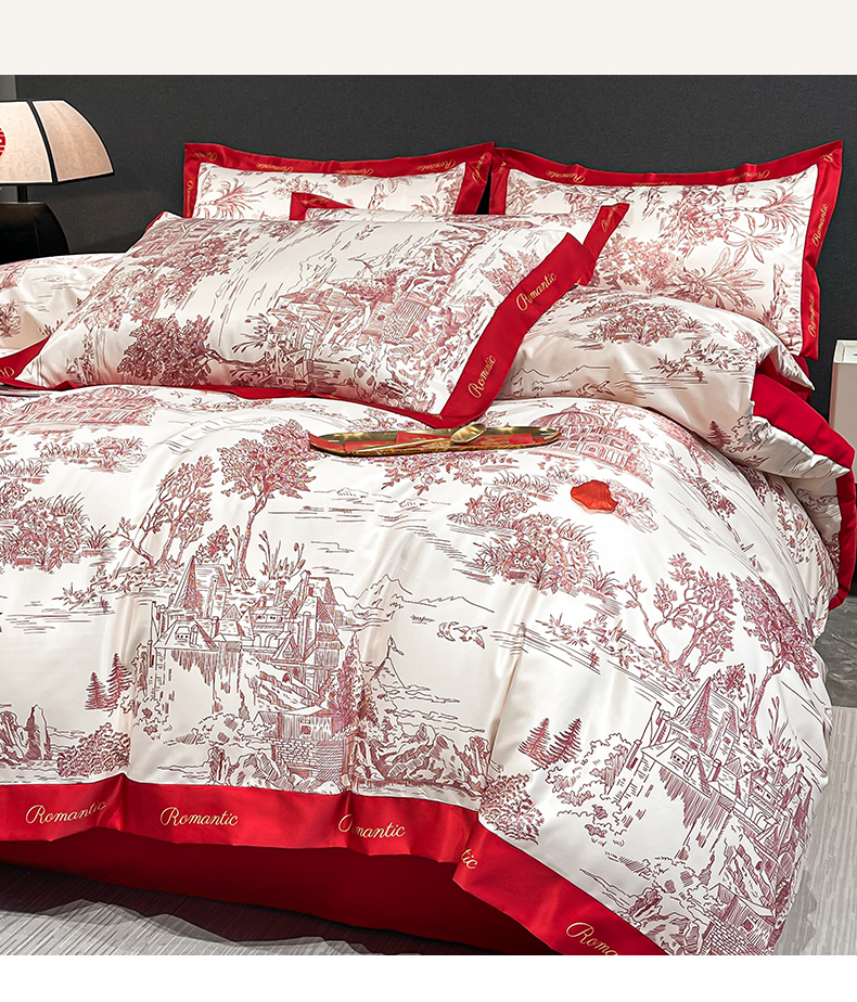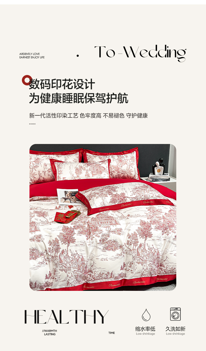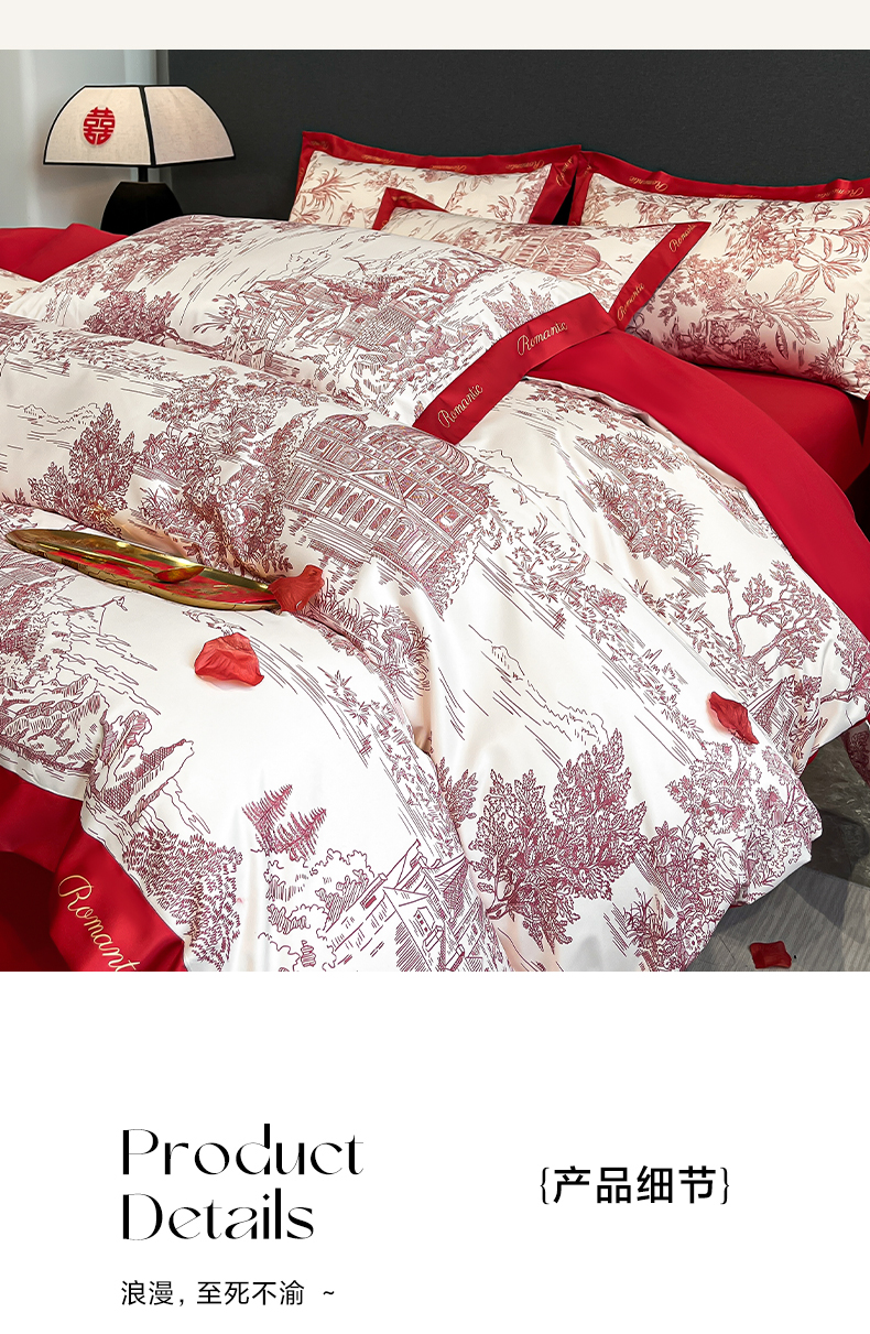花愿(原花纪) 2025新款水洗棉数码印花婚庆款四件套 浪漫庄园