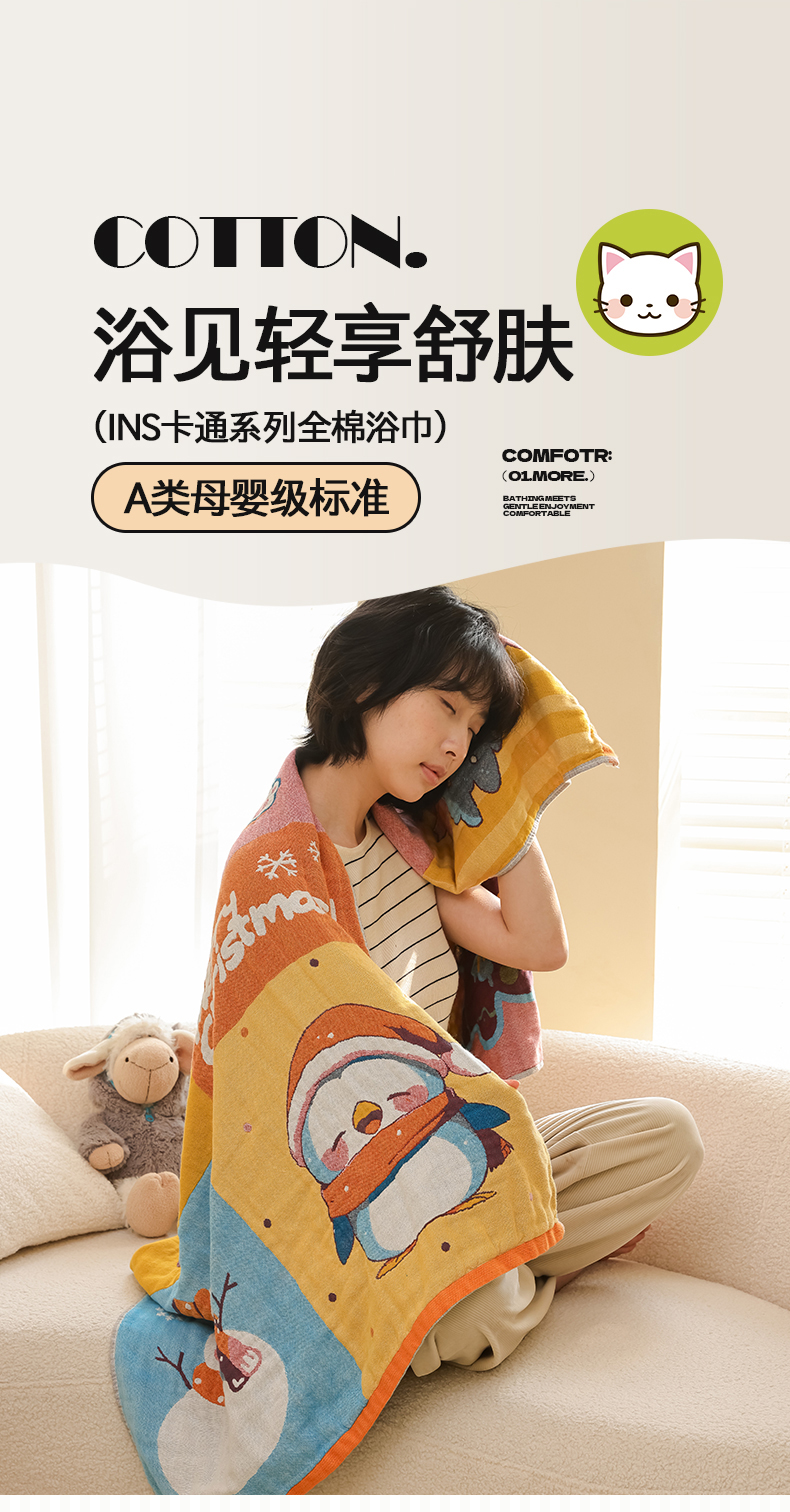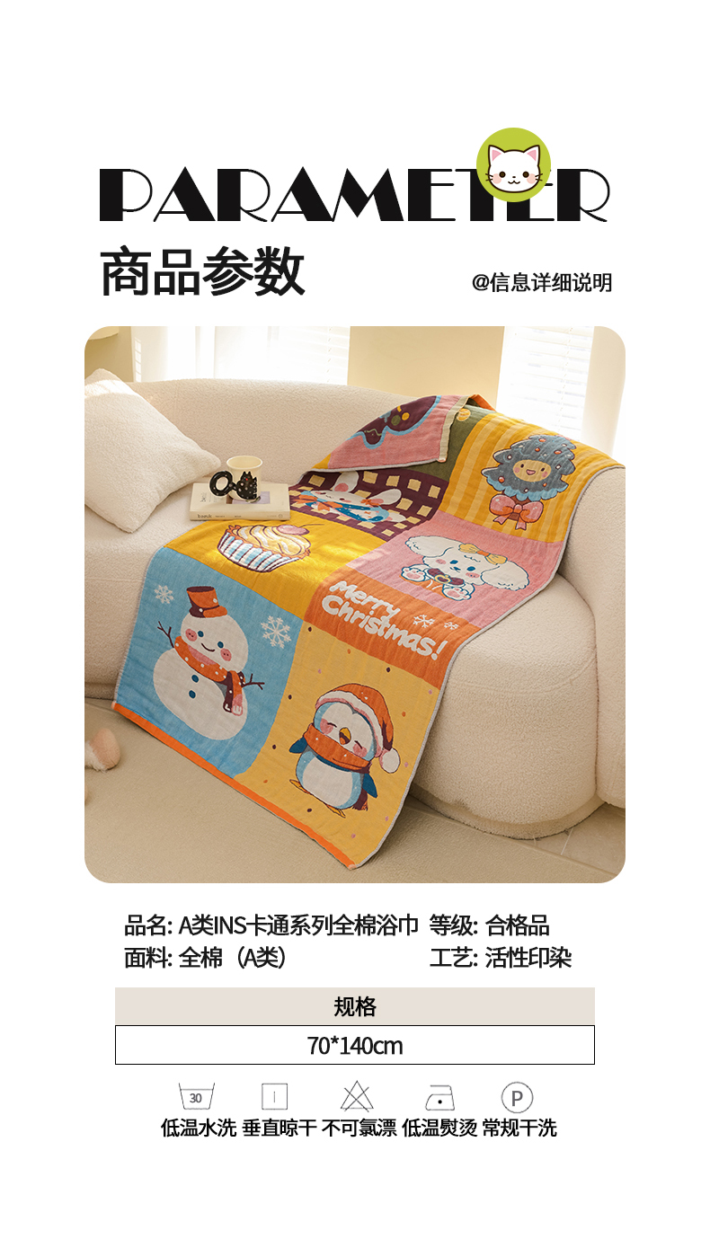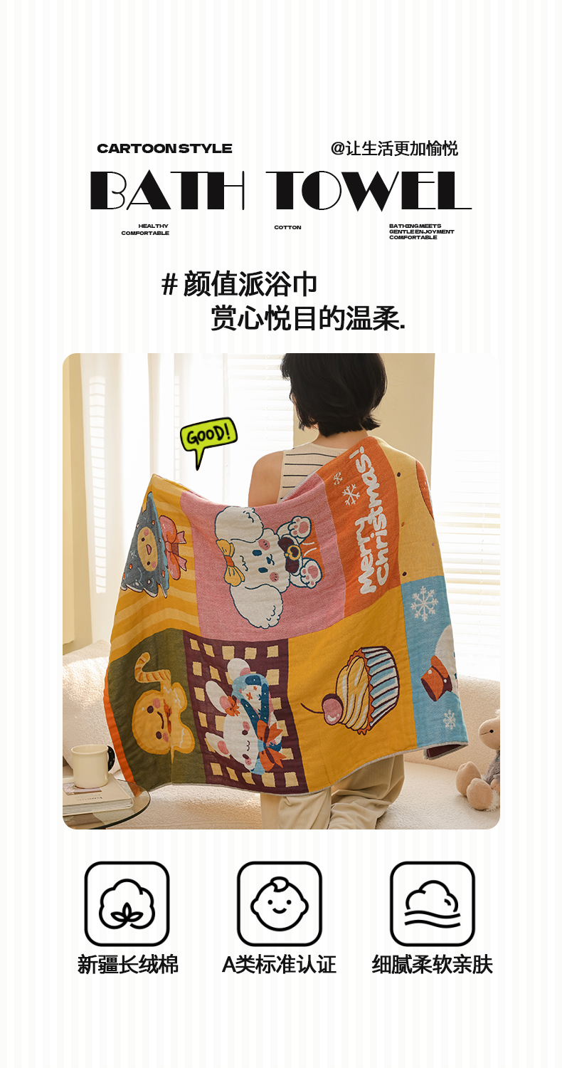 当前位置: 91家纺网 > 商品网购 > 居家日用 > 毛巾/浴巾/浴袍 > 浴巾 > 雯雨家纺 2025新款亲肤可爱全棉A类纱布浴巾 圣诞