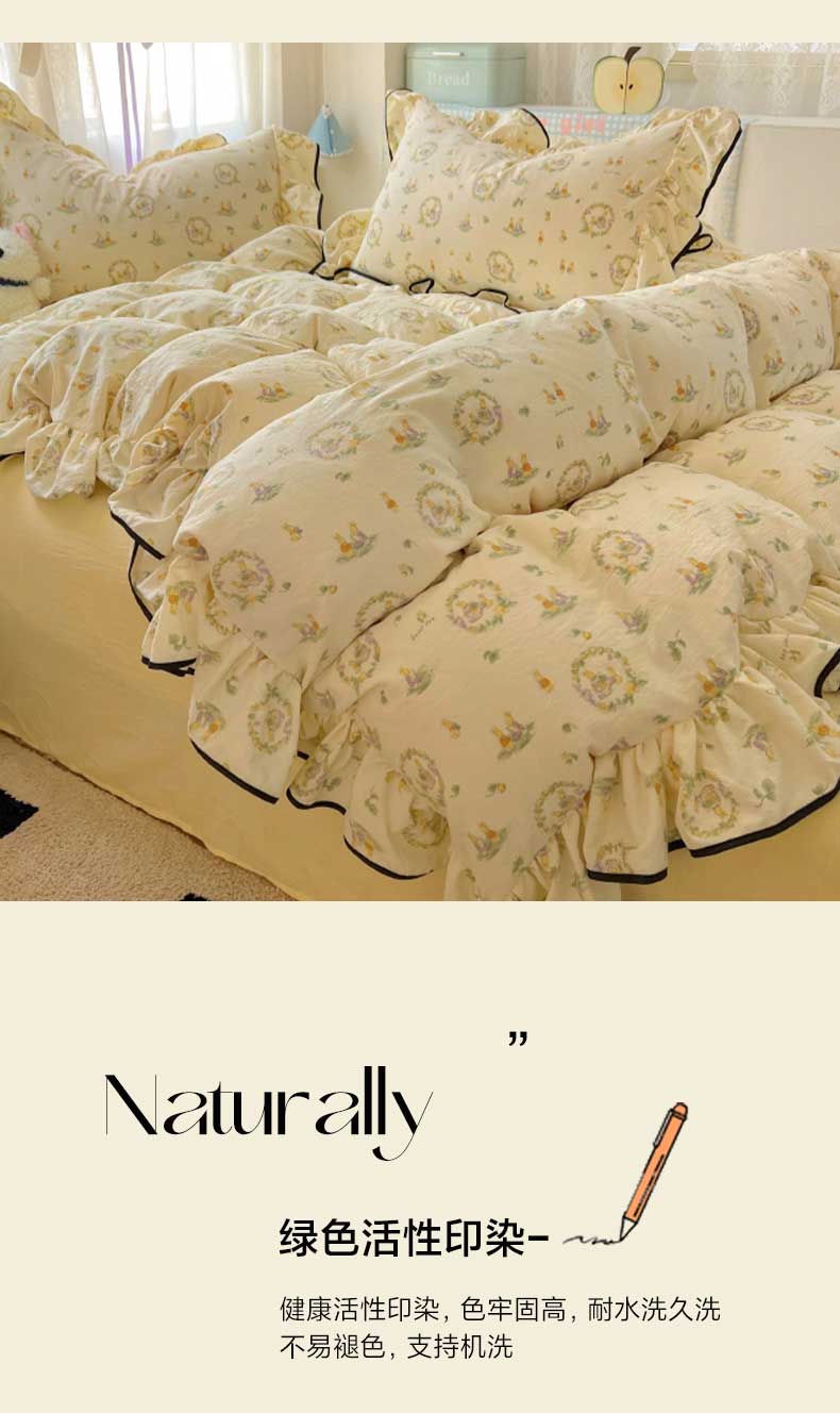 当前位置: 91家纺网 > 商品网购 > 床品套件 > 四件套 > 针织棉四件套 > 繁花家居 2025新款云感针织棉双层纱大花边超软四件套 花环小兔