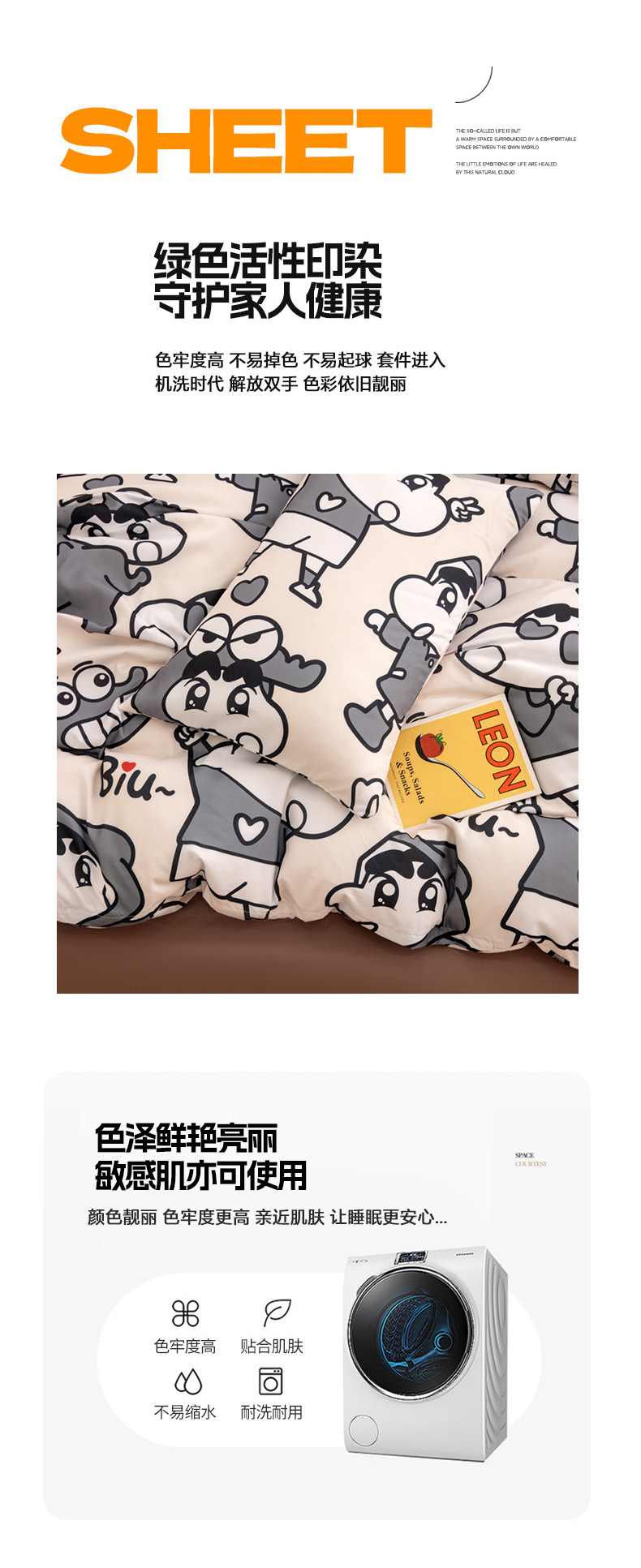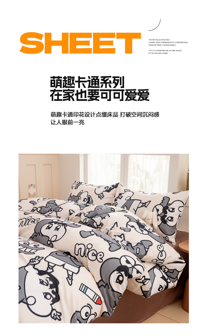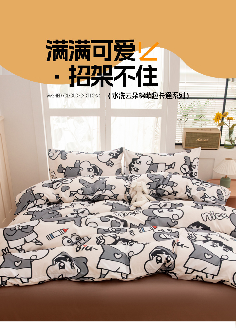 当前位置: 91家纺网 > 商品网购 > 床品套件 > 四件套 > 水洗棉四件套 > 乐居坊 2025新款亲肤舒适A类水洗云朵棉四件套-场景一 奇趣小新