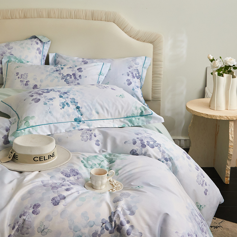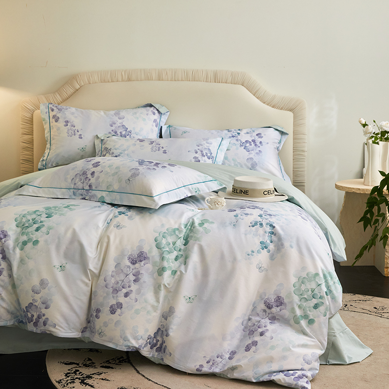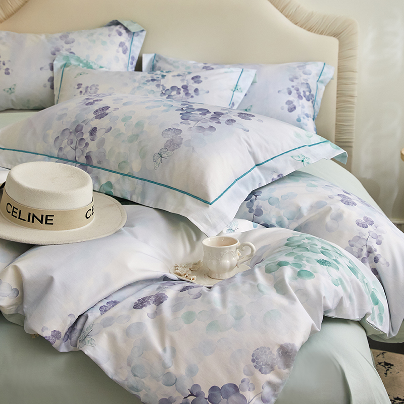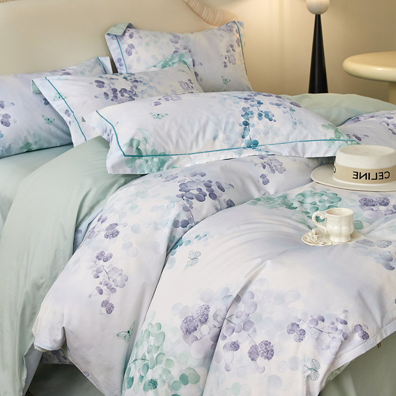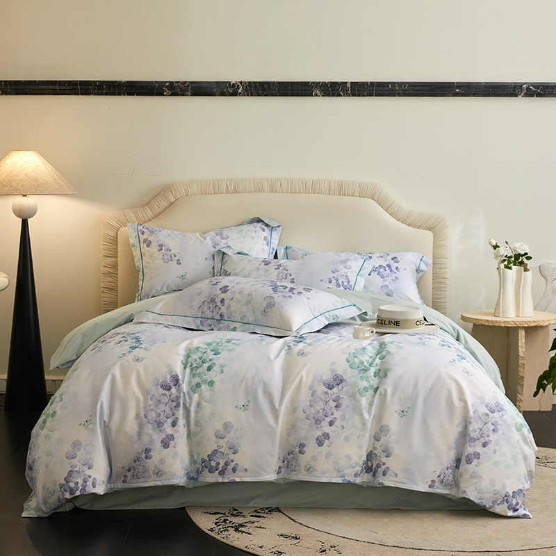(总)薏思家纺 2025新款全棉100支数码印花生态磨毛轻奢款四件套-珍珠纽扣系列,花弄影-青,花弄影-玉,花弄影-紫,紫纱春日