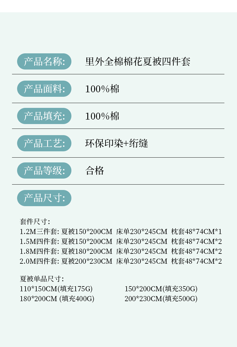 1.5m四件套:夏被150x200cm 床单230*245cm