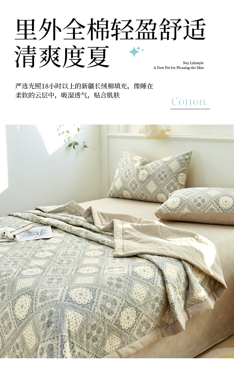 • 91家纺网 家纺一手货源 找家纺 黛妮雅 2025新款里外全棉印花棉花被纯棉夏被夏凉被空调被 夏被四件套 凡尔赛