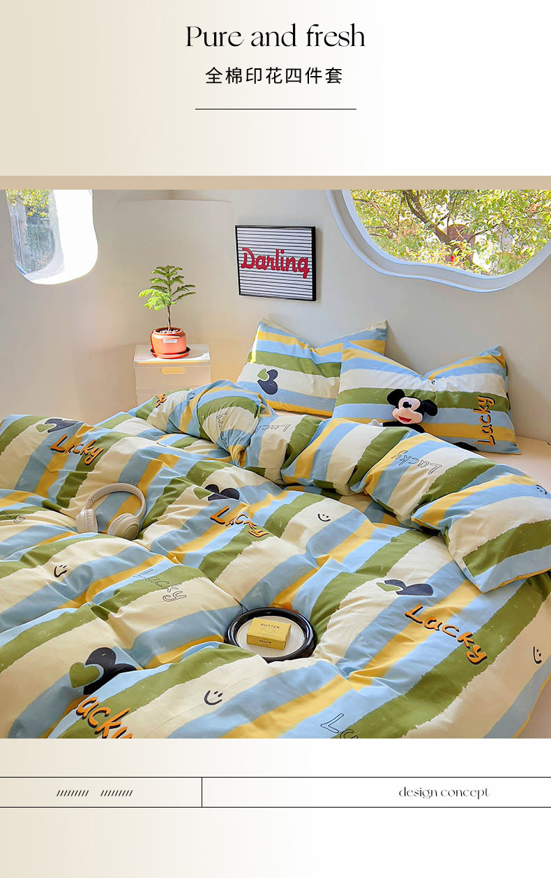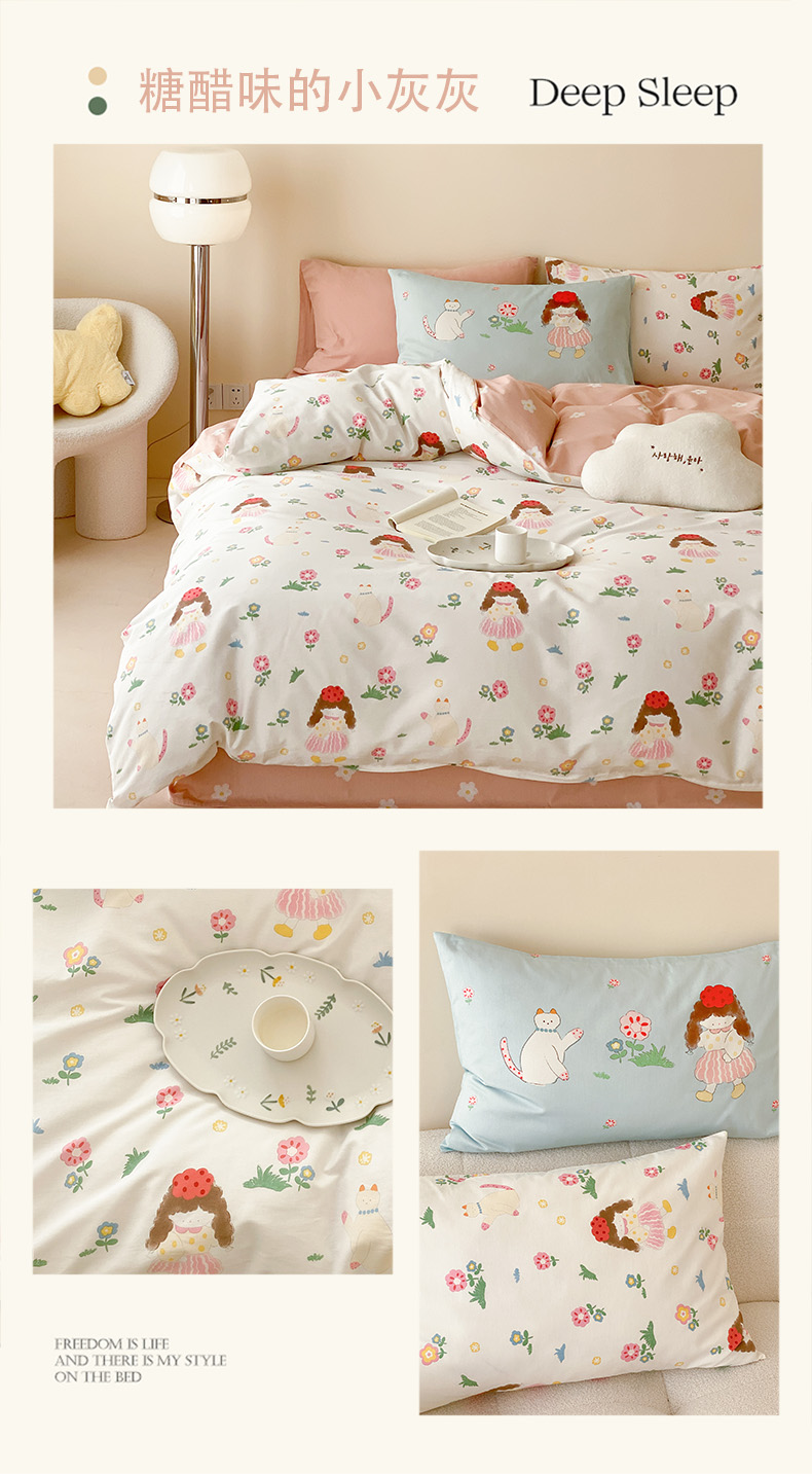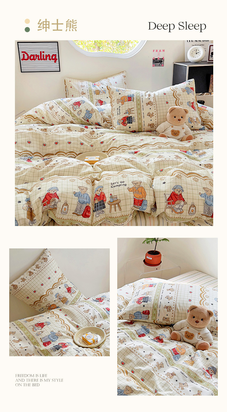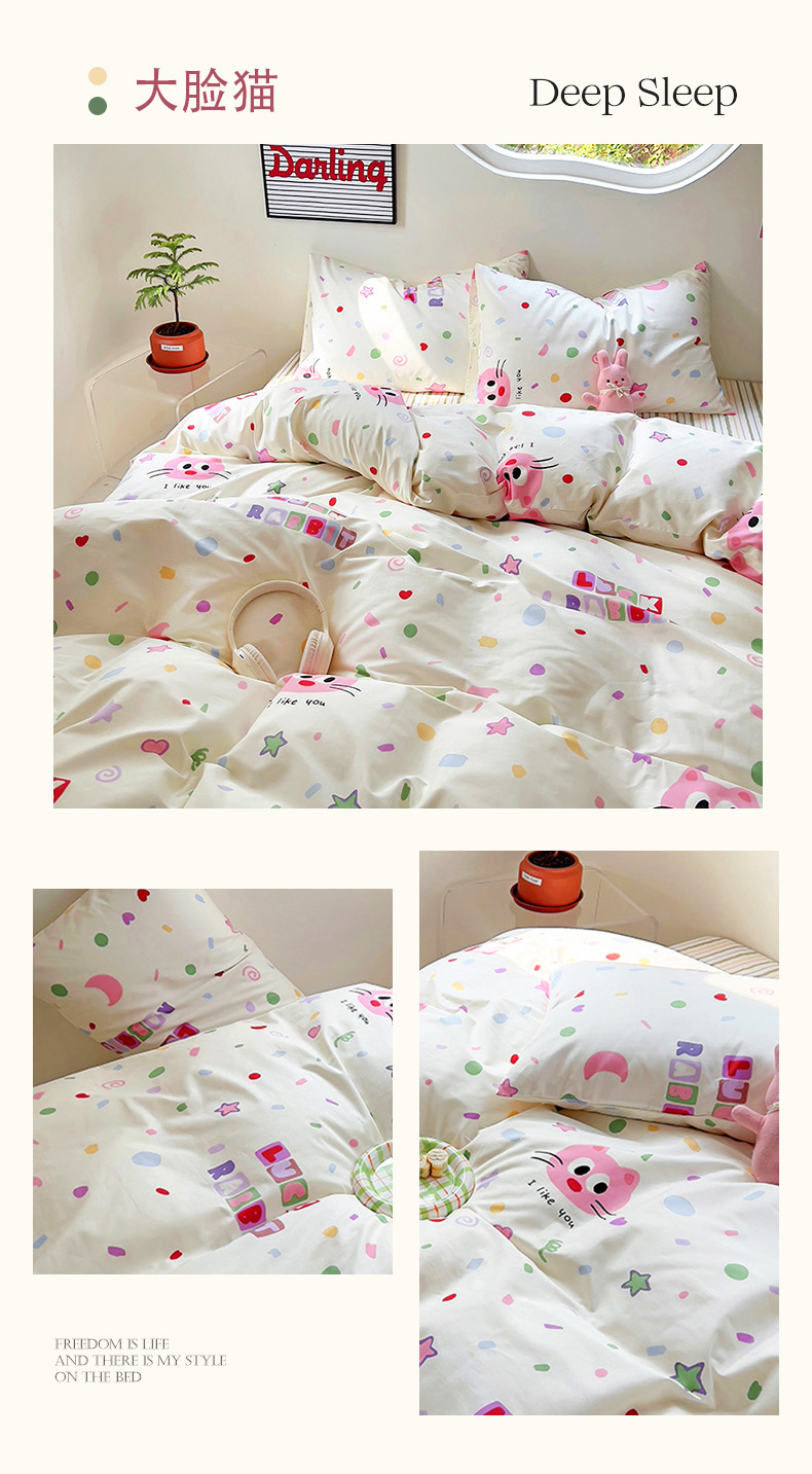 (总)(买家秀 爆款花型 不断货)13372纯棉四件套全棉四件套卡通四件套儿童三件套学生宿舍三件套学生套件