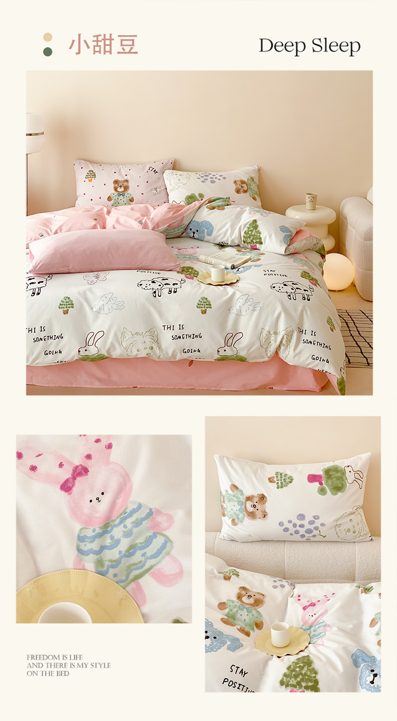 (总)(买家秀爆款不断货)儿童卡通花卉高克重亲肤棉13372全棉纯棉四件套全棉纯棉全棉四件套全棉纯棉三件套,采薇兔,巴尼,茶话会,春意萌,椿野,莱茵小兔,木槿,南枝,青蕊,青棠,森之境,晚风,忘忧草,绽蔓