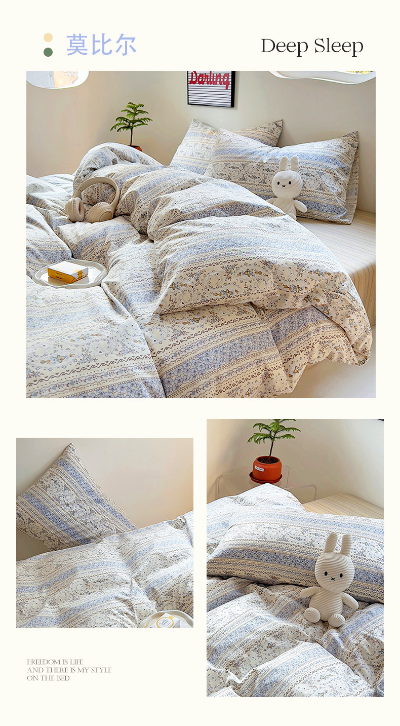 (总)买家秀热款花型不断货 母婴级A类ins风水洗棉四件套水洗棉毛巾绣四件套水洗棉床笠四件套提花绣花四件套,恐龙宝贝,花朵兔兔,面包小狗,奶油小甜甜,奶油芝士,兔伙伴,樱桃兔,优雅