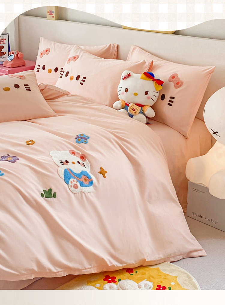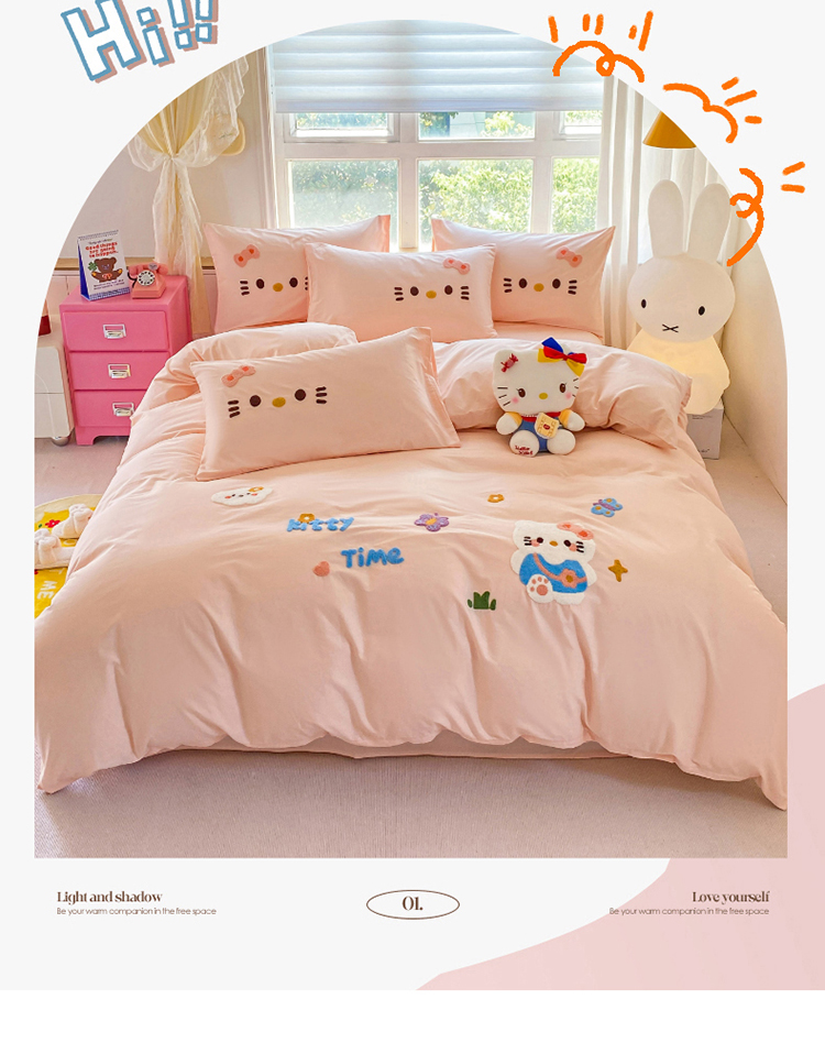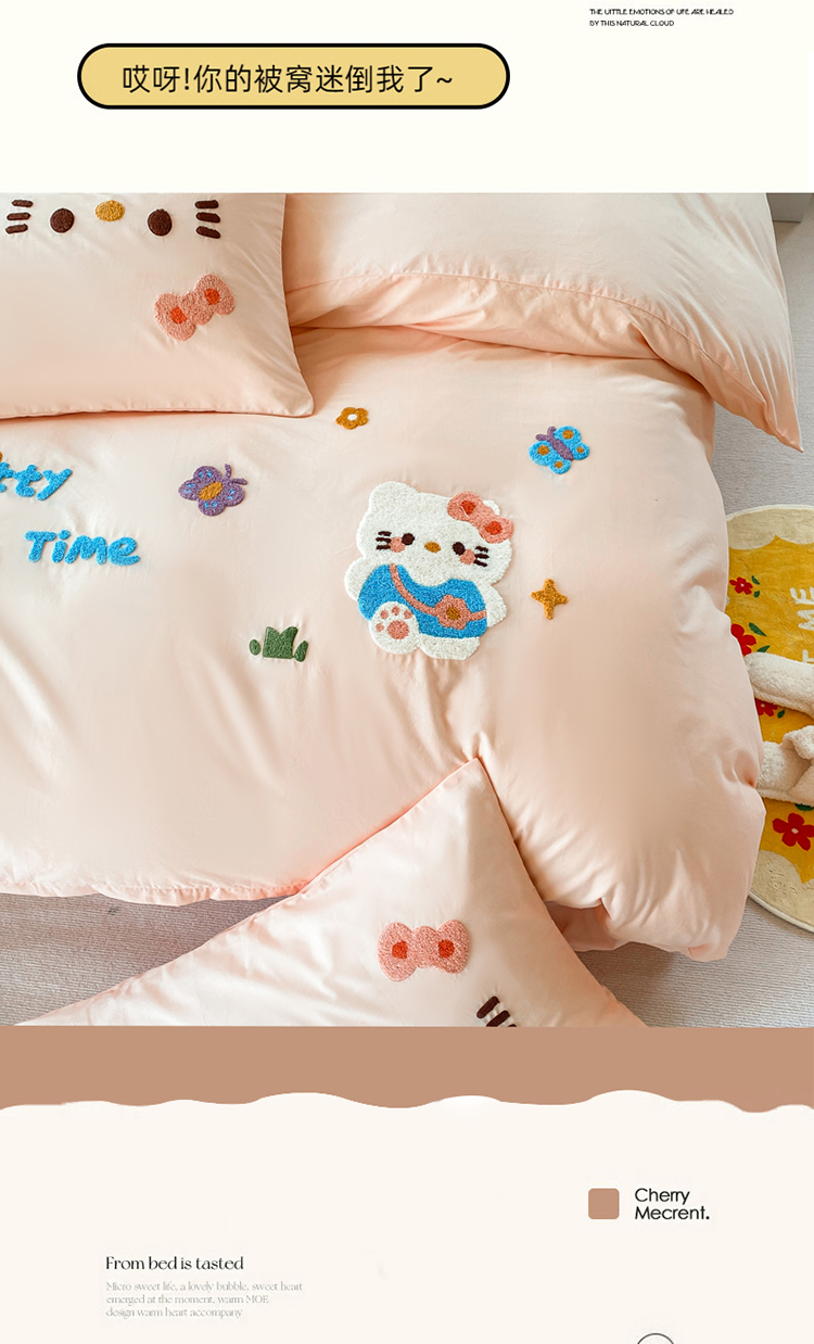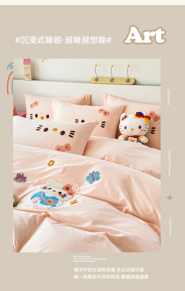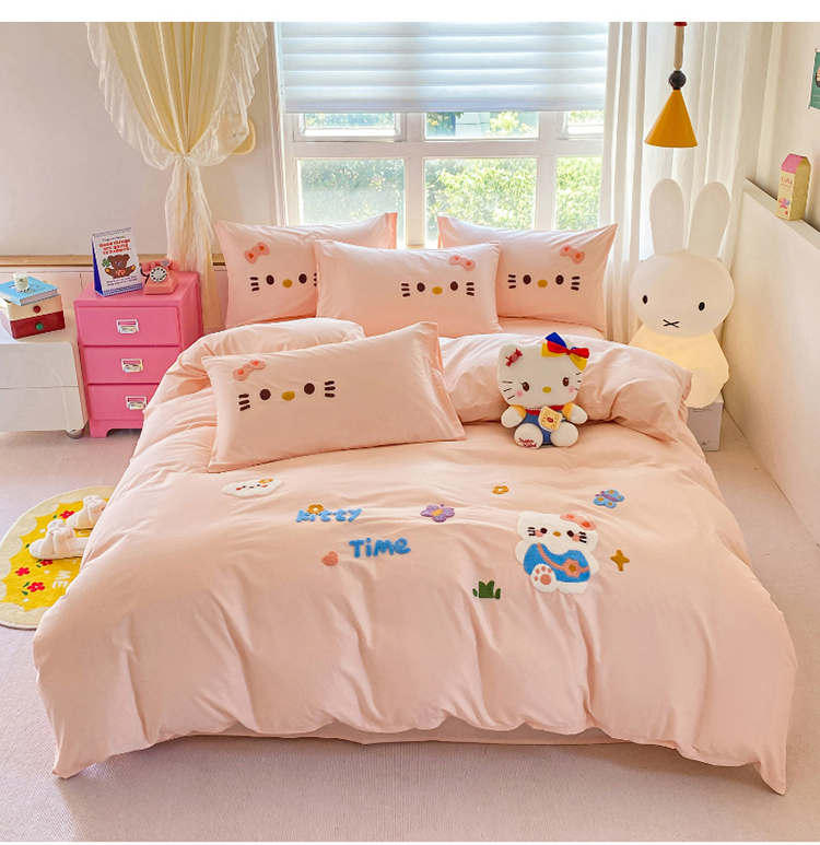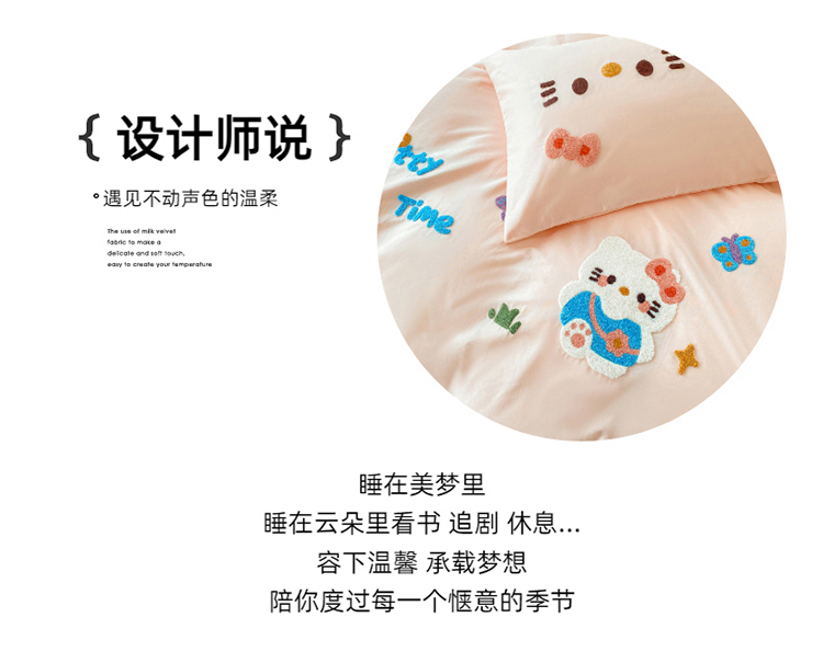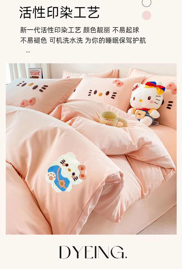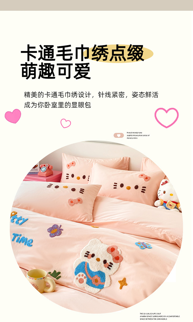 商品名称:(买家秀)(爆款花型长期款不断货)A类全棉贴布绣四件套绣花四件套毛巾绣四件套毛巾绣三件套卡通 甜心猫