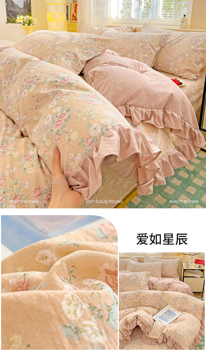 当前位置: 91家纺网 > 商品网购 > 床品套件 > 四件套 > 化纤普通四件套 > 纽缦家纺 2025新款云感提花双层纱韩版四件套 爱如星辰