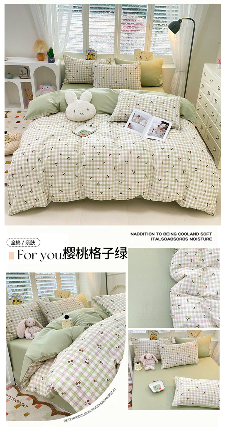 • 91家纺网 家纺一手货源 找家纺 丫丫家纺   2025全棉13070单被套印花小清新卡通碎花纯棉单品被套枕套(有预缩售后无忧 免费提供买家秀) 樱桃格子绿