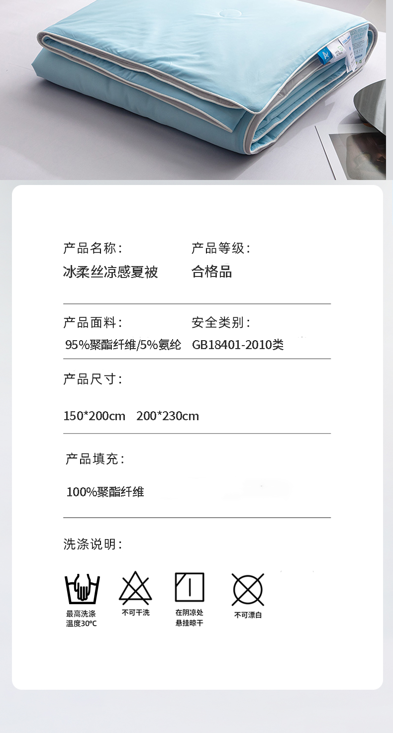 商品名称:金喜 2025新款冰柔丝凉感夏被涤氨纶冰丝夏被夏天薄被子 天空蓝