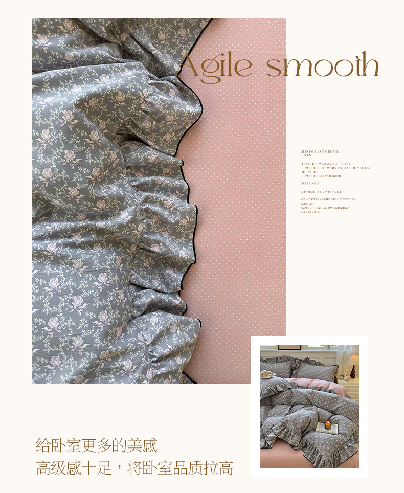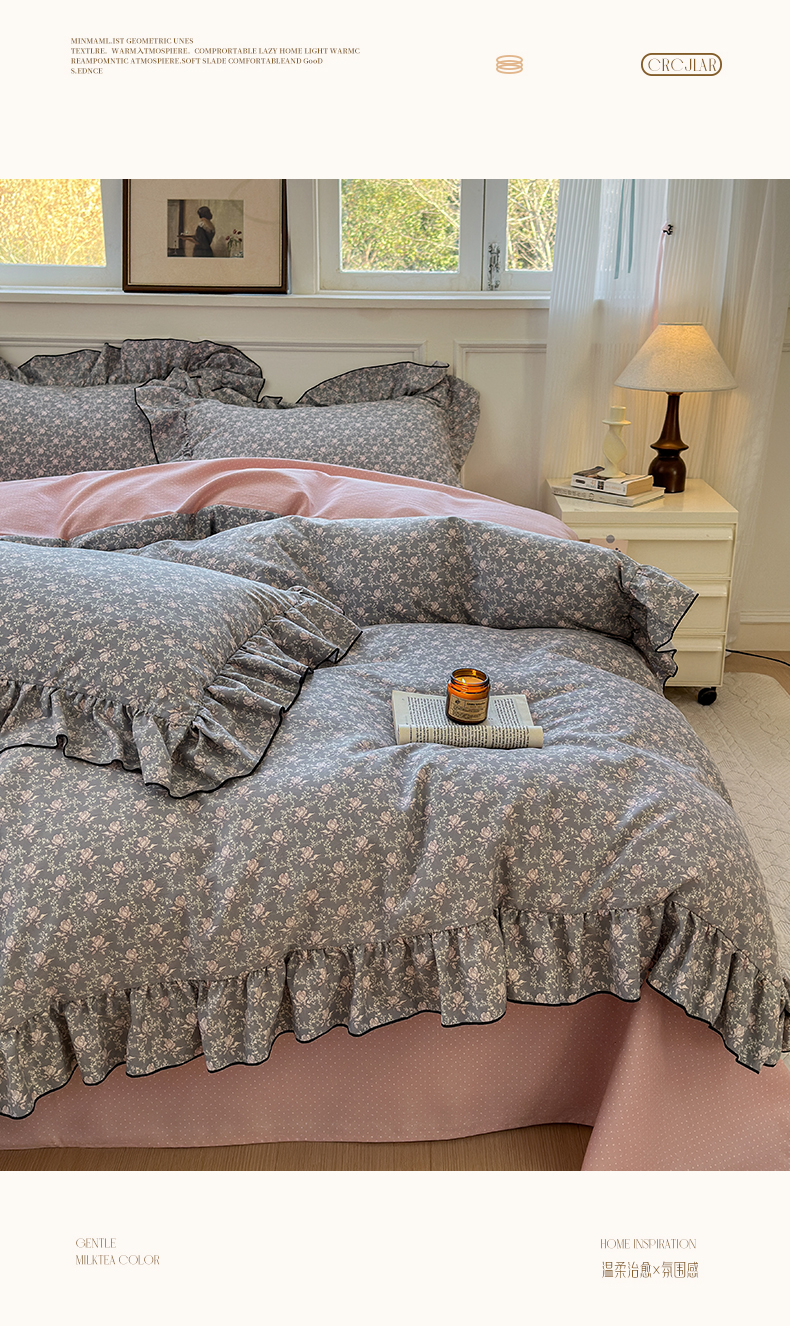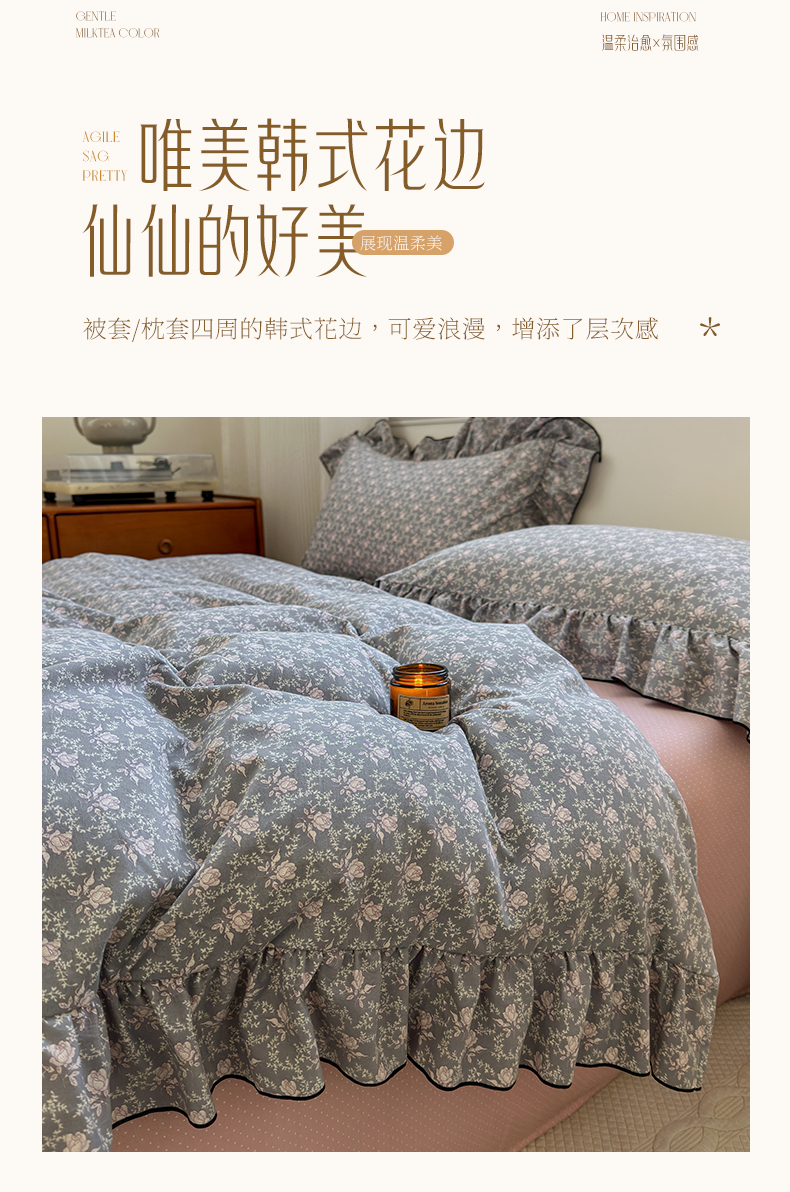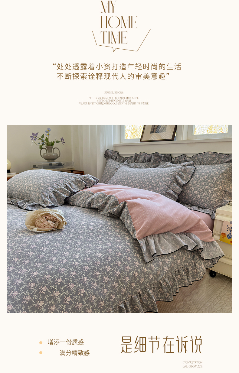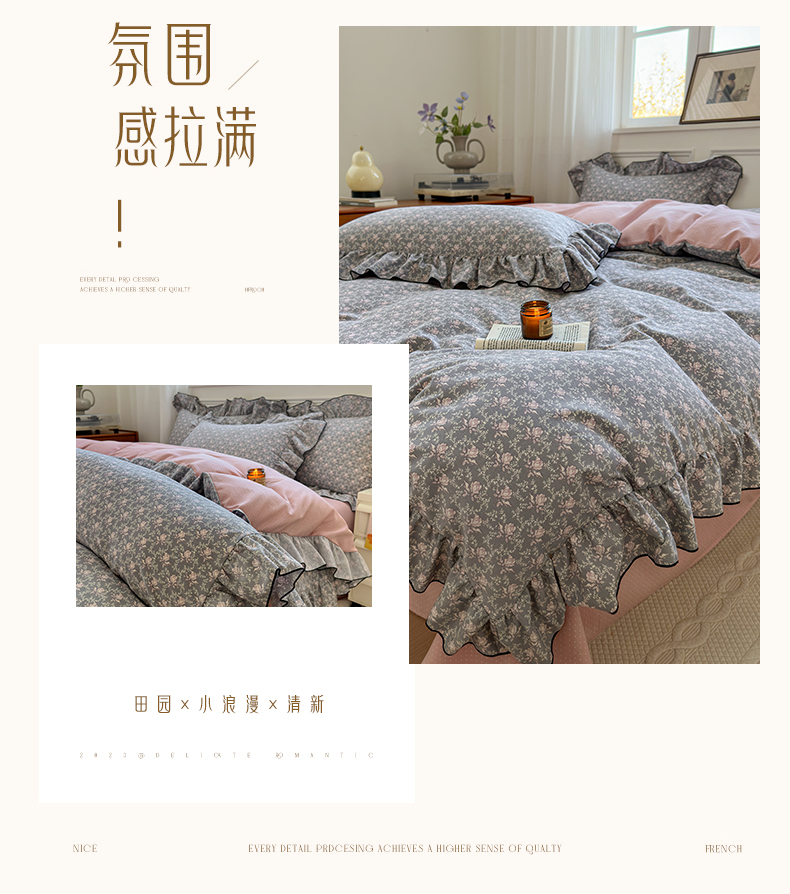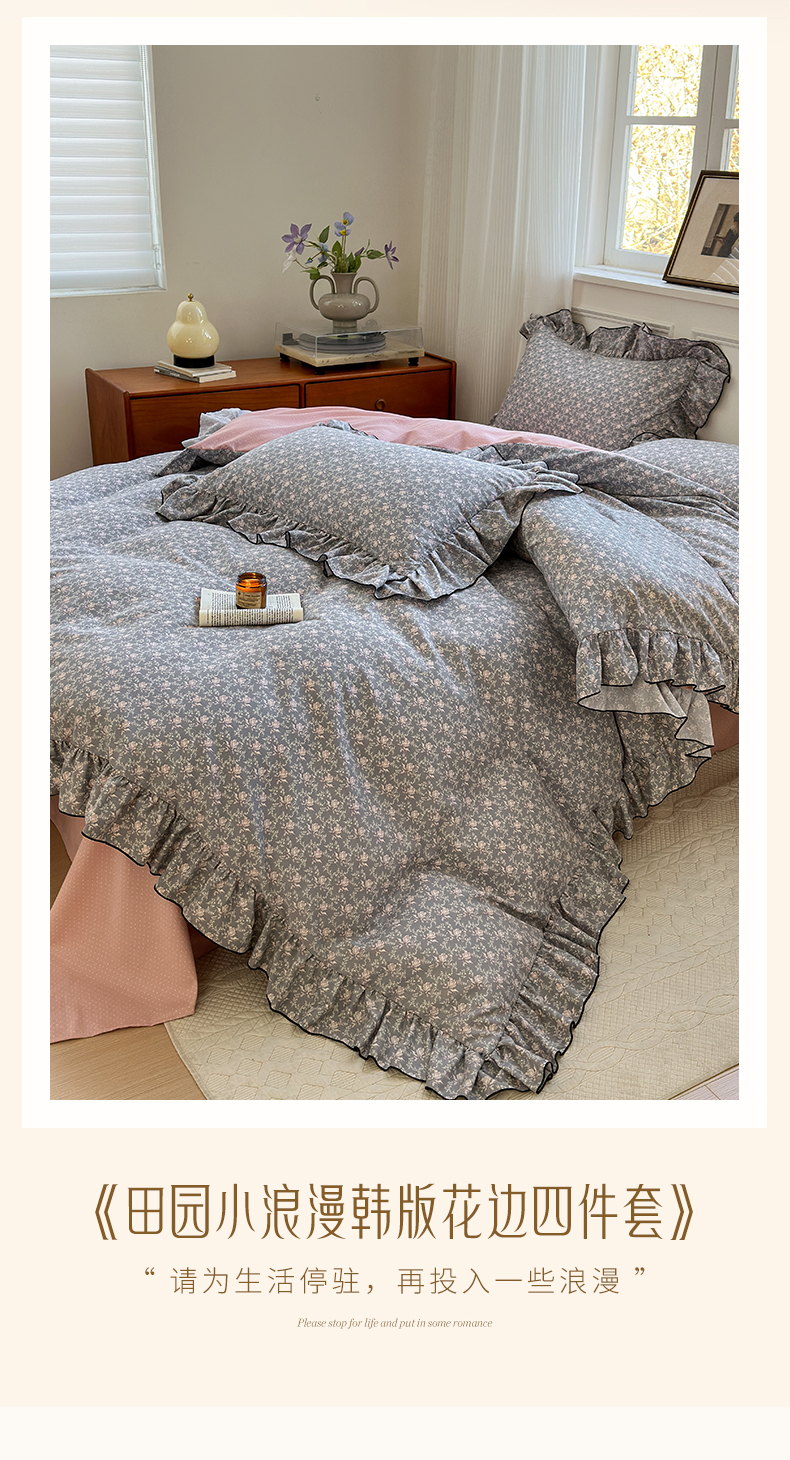 当前位置: 91家纺网 > 商品网购 > 床品套件 > 四件套 > 其它四件套 > 寐居家纺 2025新款韩版舒柔绵四件套 花边款-梦幻花海