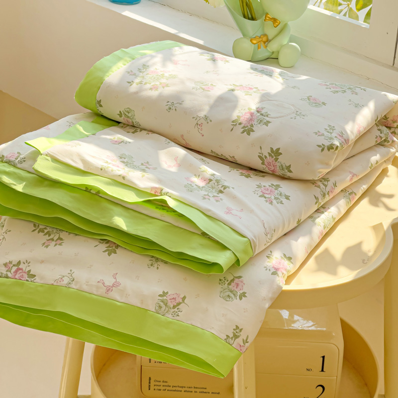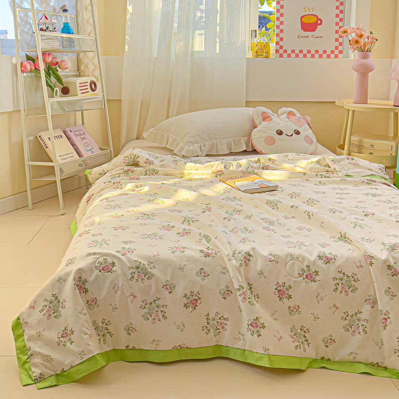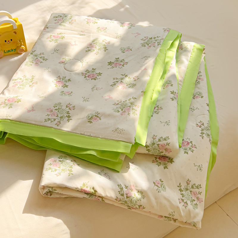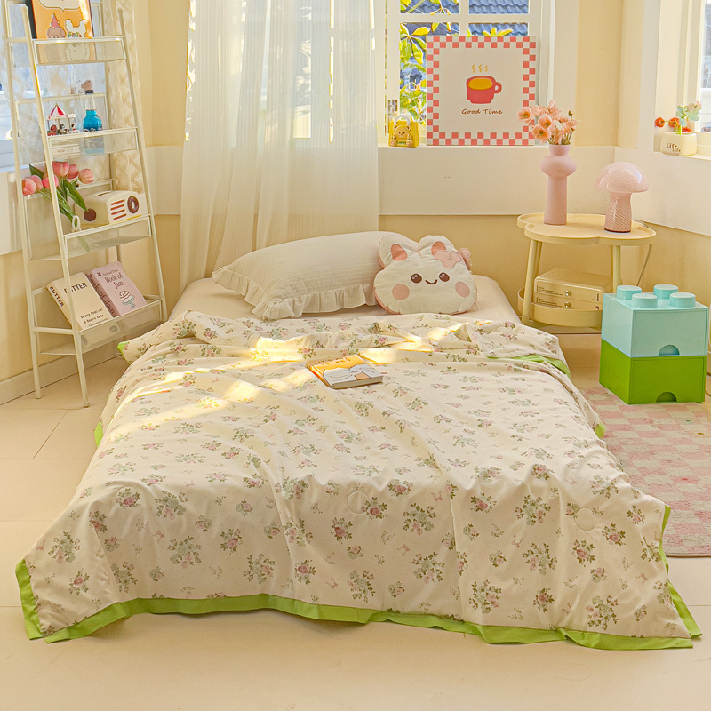 商品名称:十九色2025新款液态硅胶飞边凉感奶嘴同源硅胶微重力贴身凉爽儿童夏被 花园里