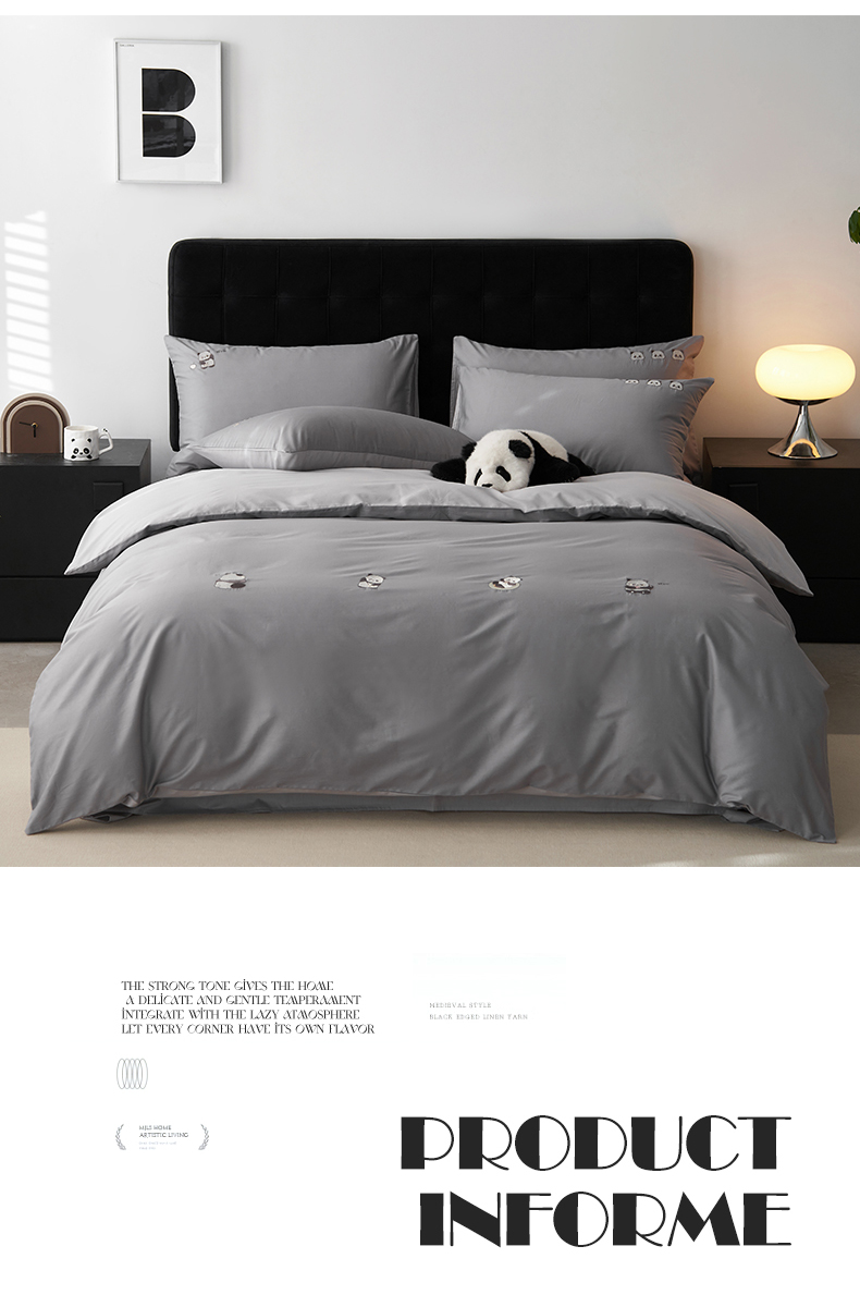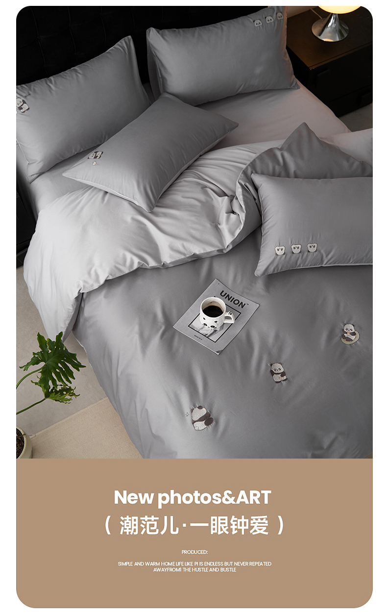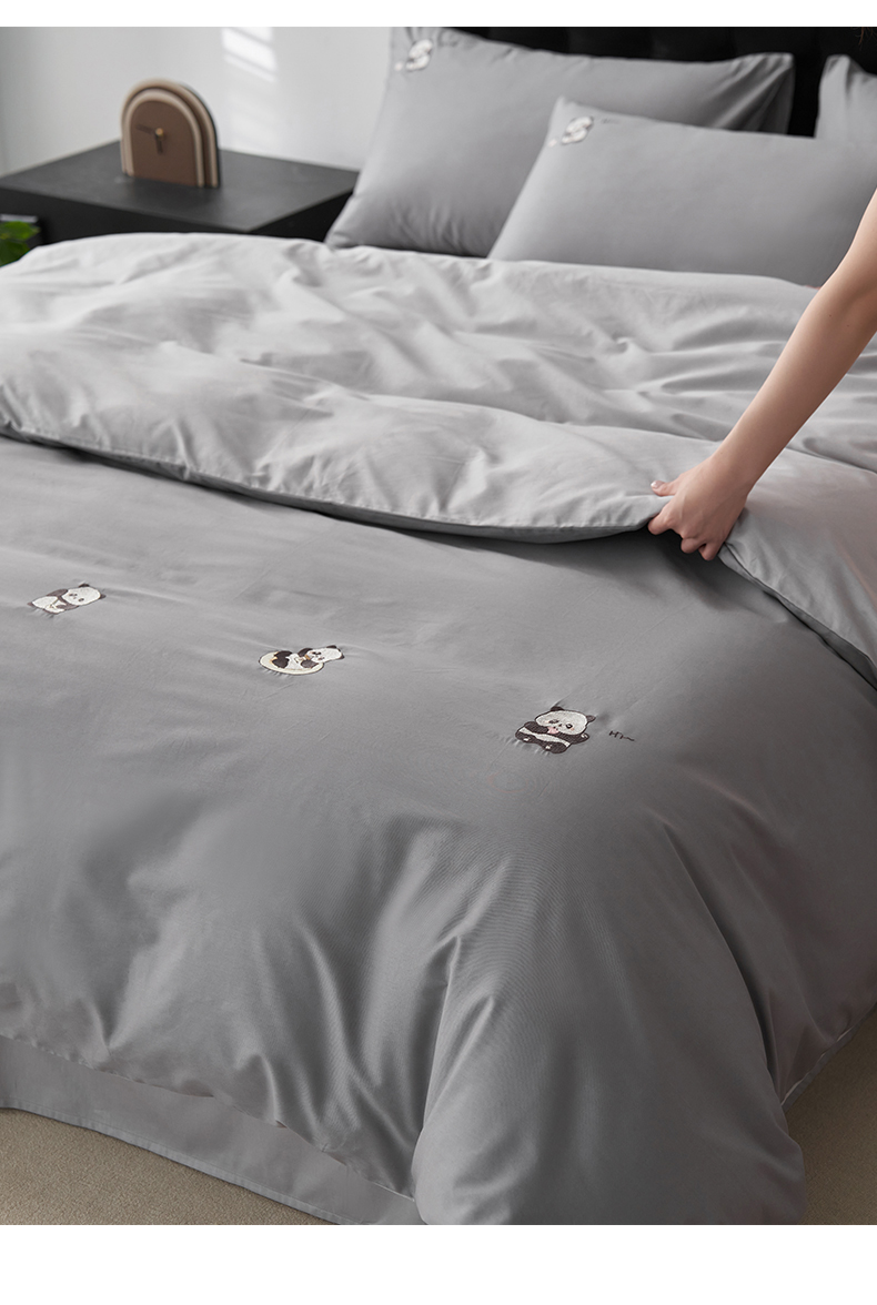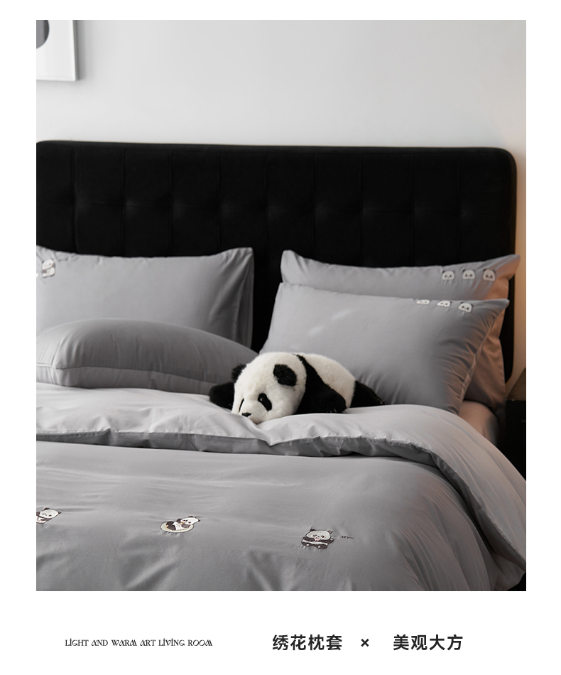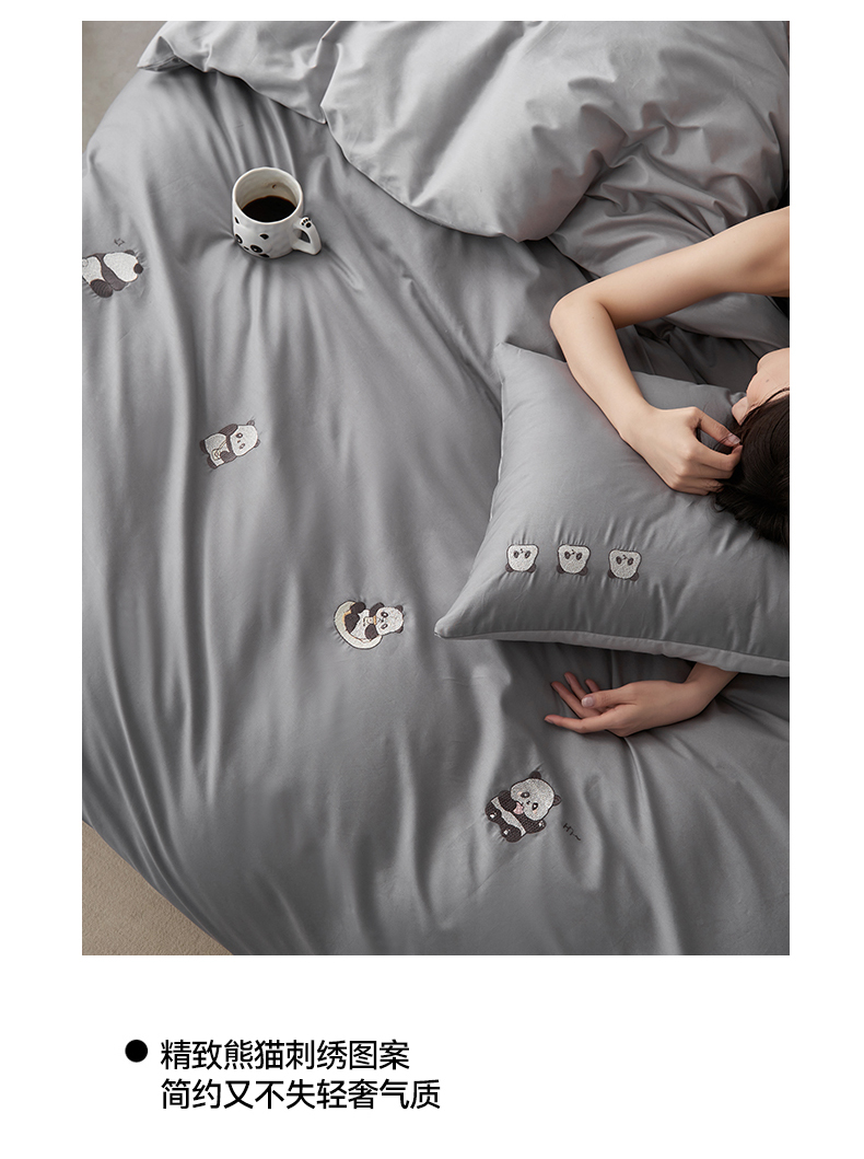 鼎飞家纺 2025新款全棉纯色双拼套件 深灰浅灰