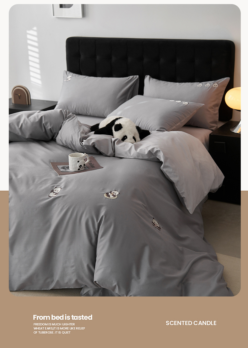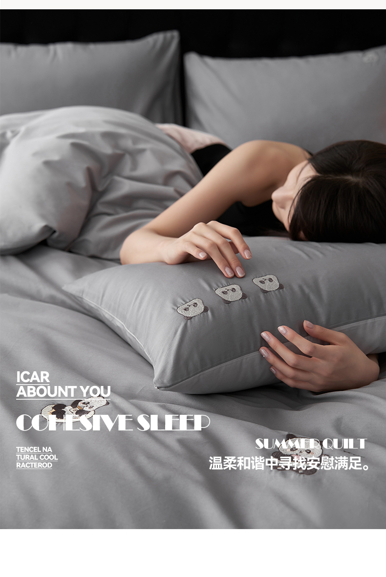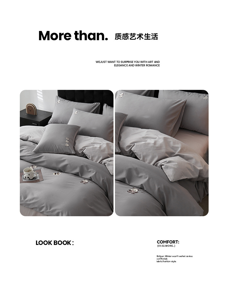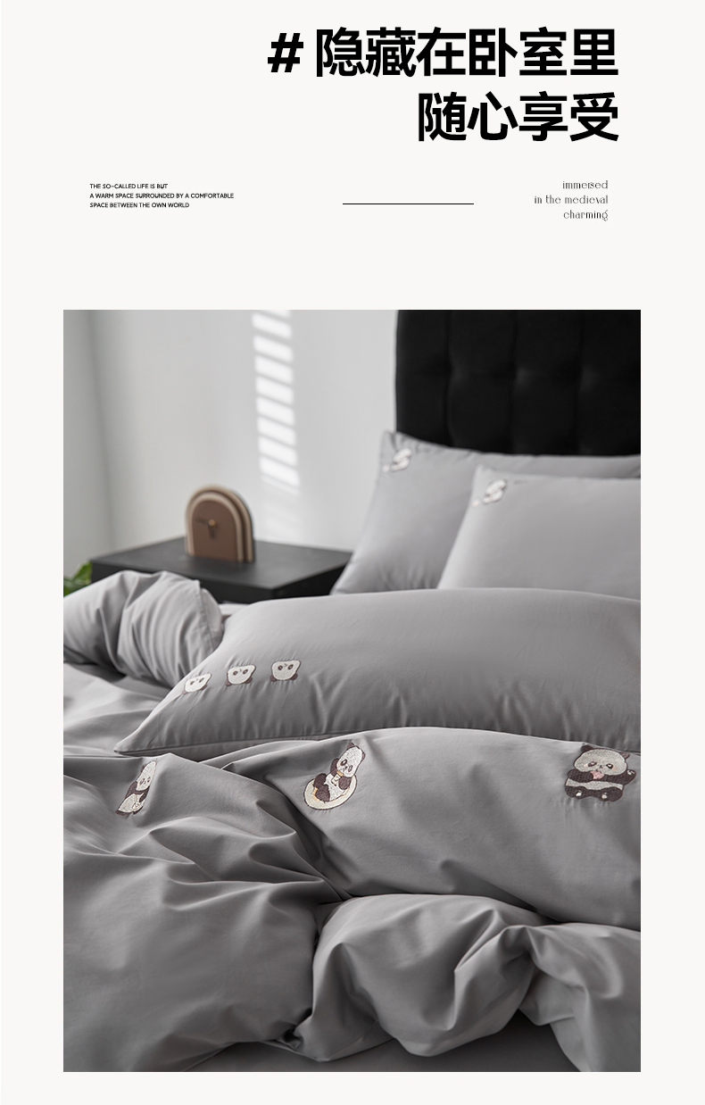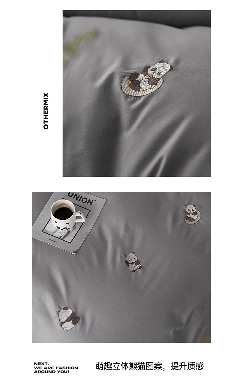 鼎飞家纺 2025新款全棉纯色双拼套件 深灰浅灰