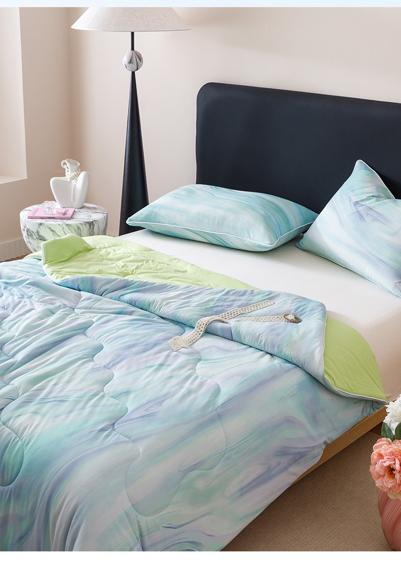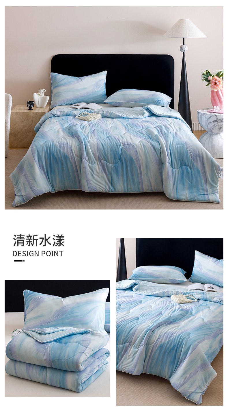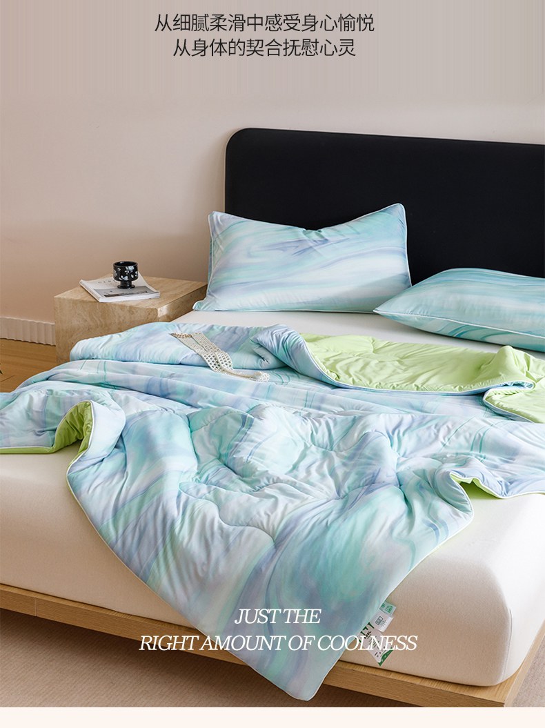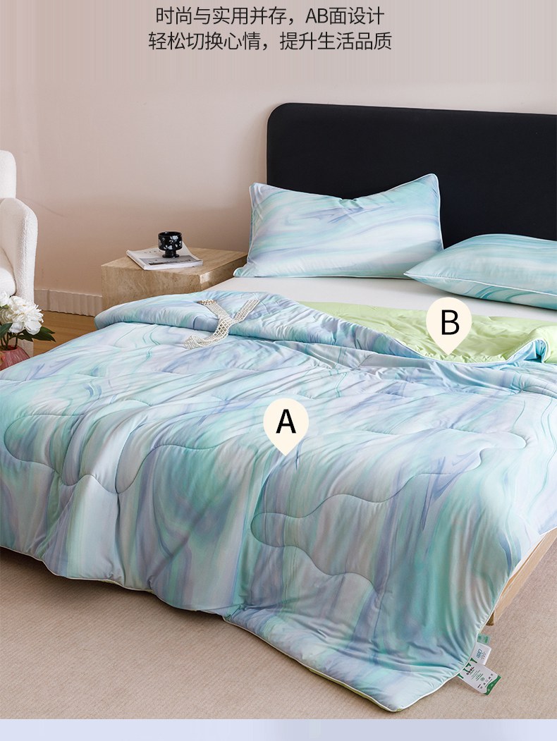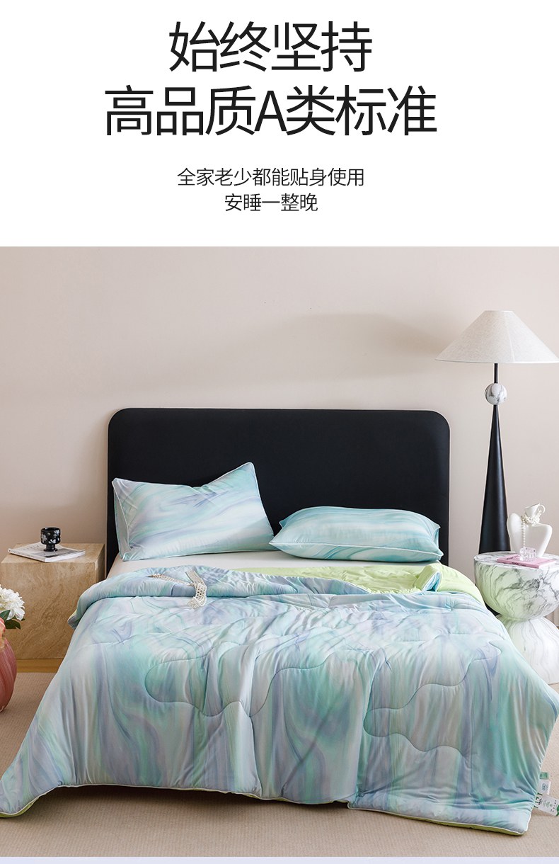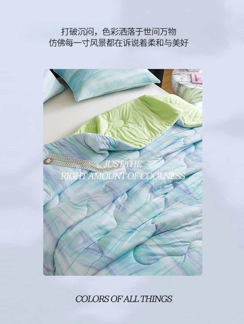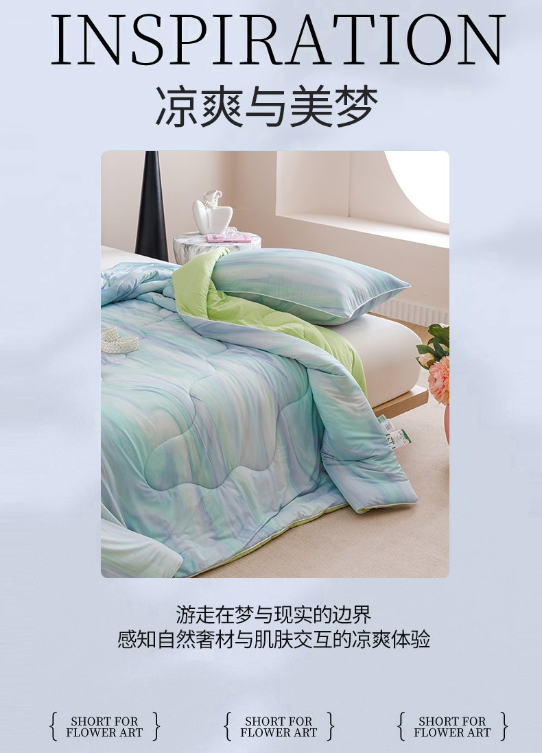 (总)恬思语家纺 2025新款凉感丝时尚彩绘夏凉被,淡雅云影,粉色梦幻,蓝绿云丝,浪漫飘带,清新水漾,柔和幻彩