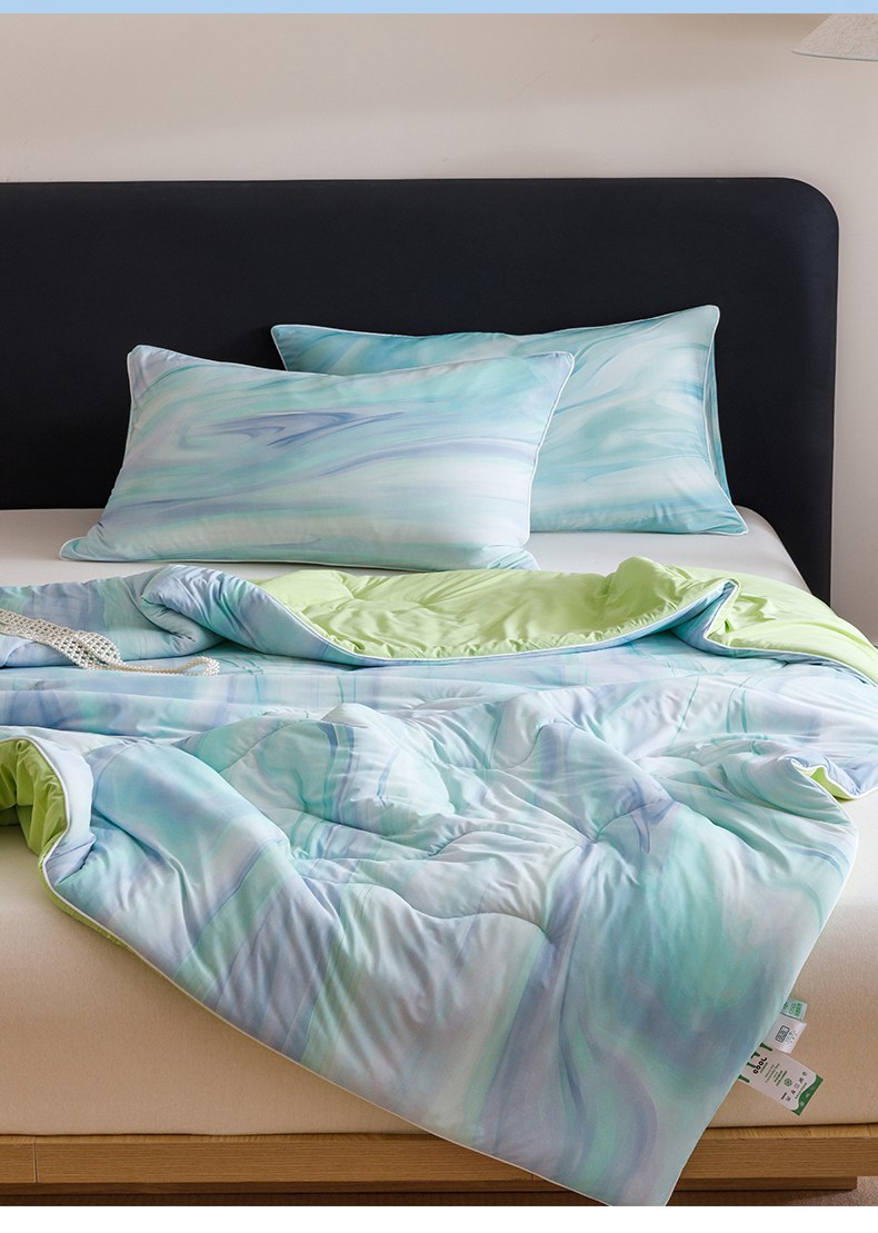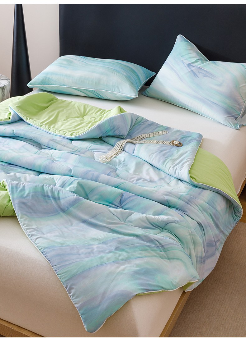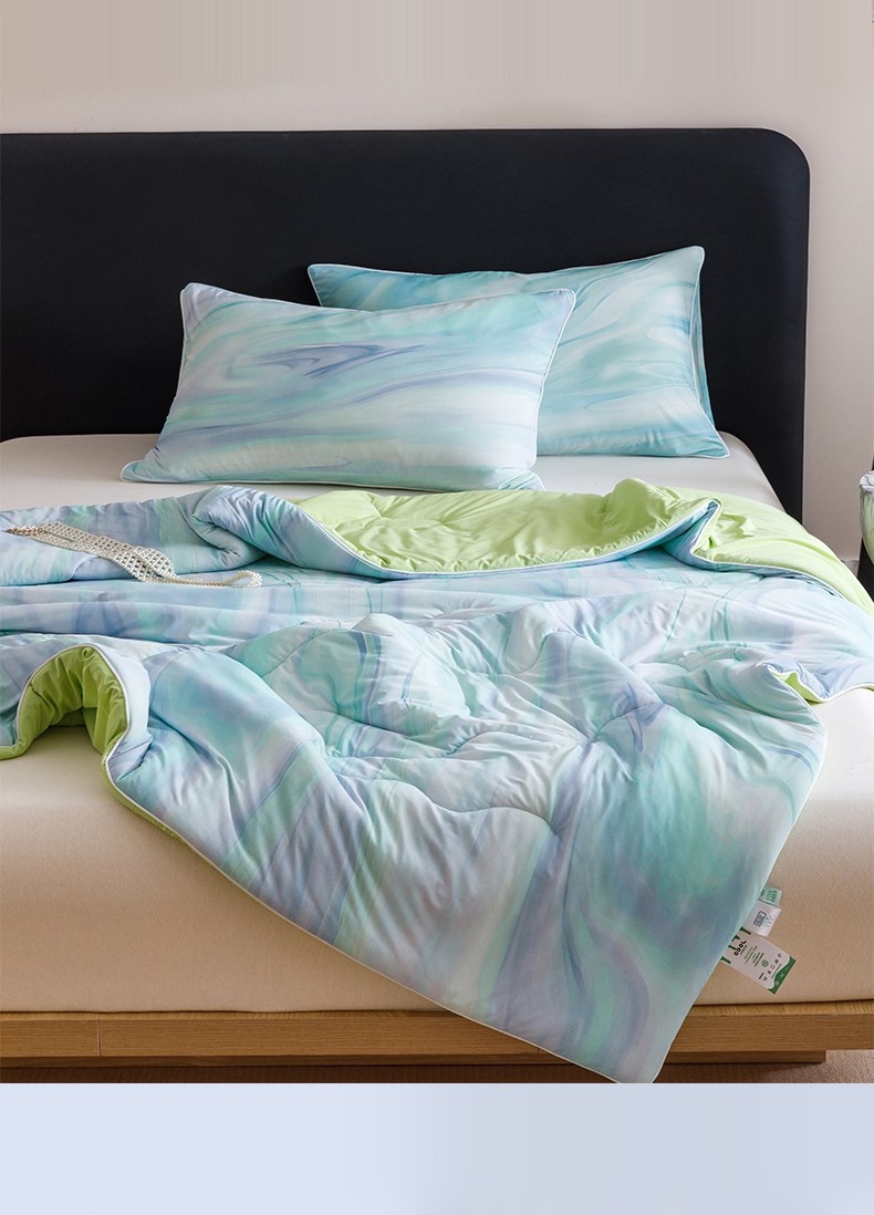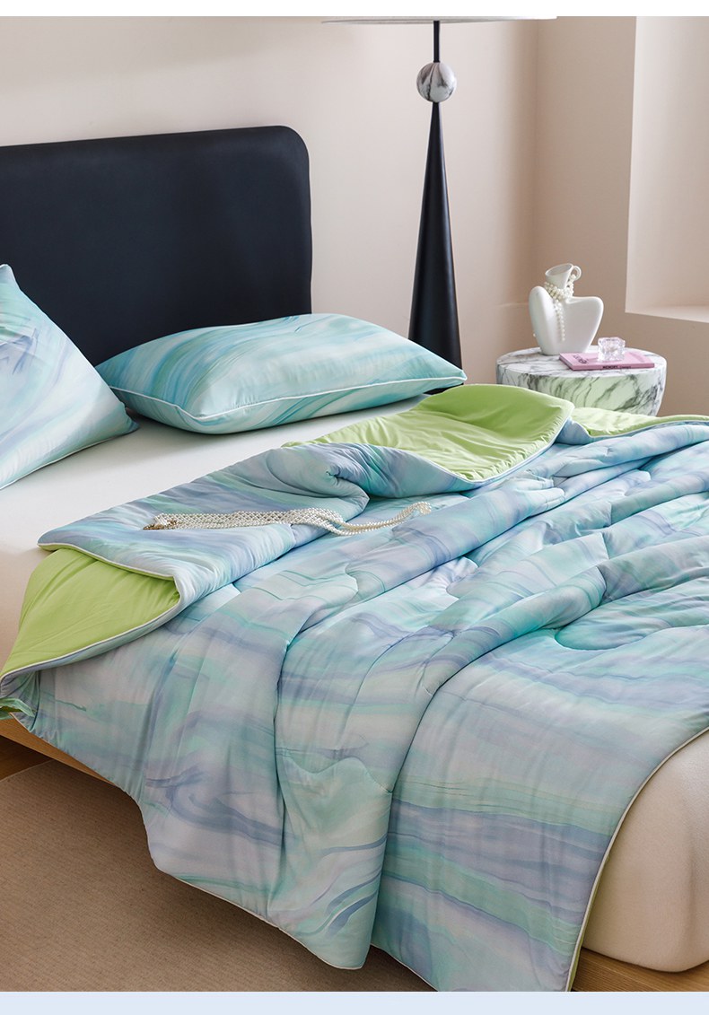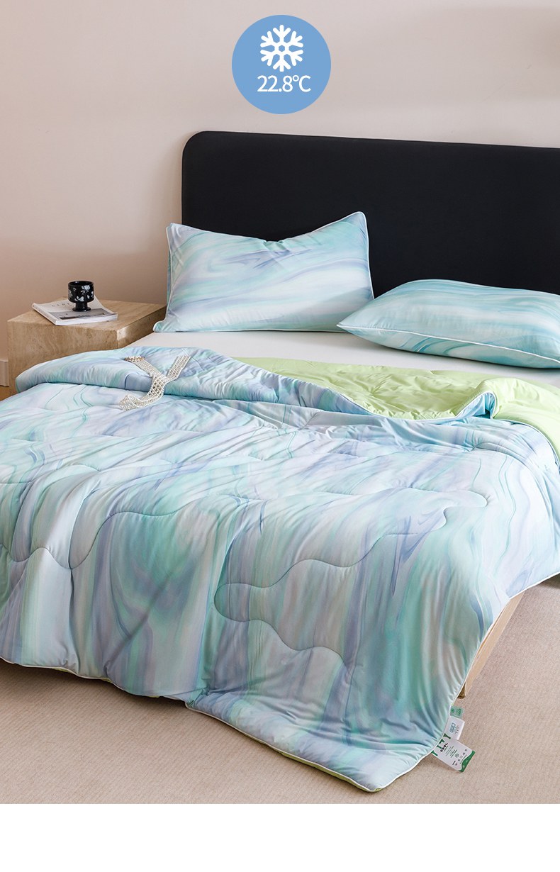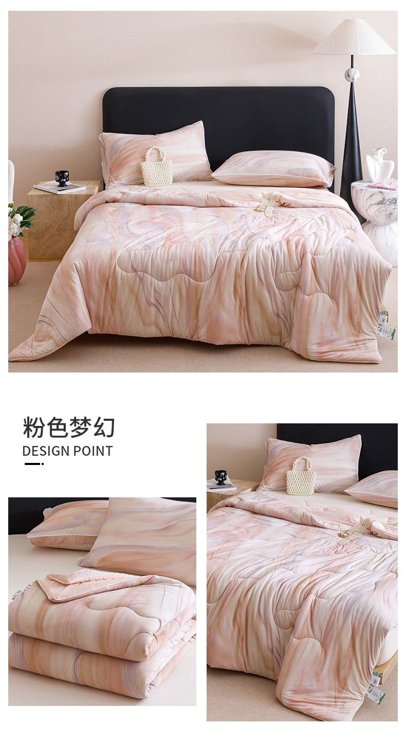 (总)恬思语家纺 2025新款凉感丝时尚彩绘夏凉被,淡雅云影,粉色梦幻,蓝绿云丝,浪漫飘带,清新水漾,柔和幻彩