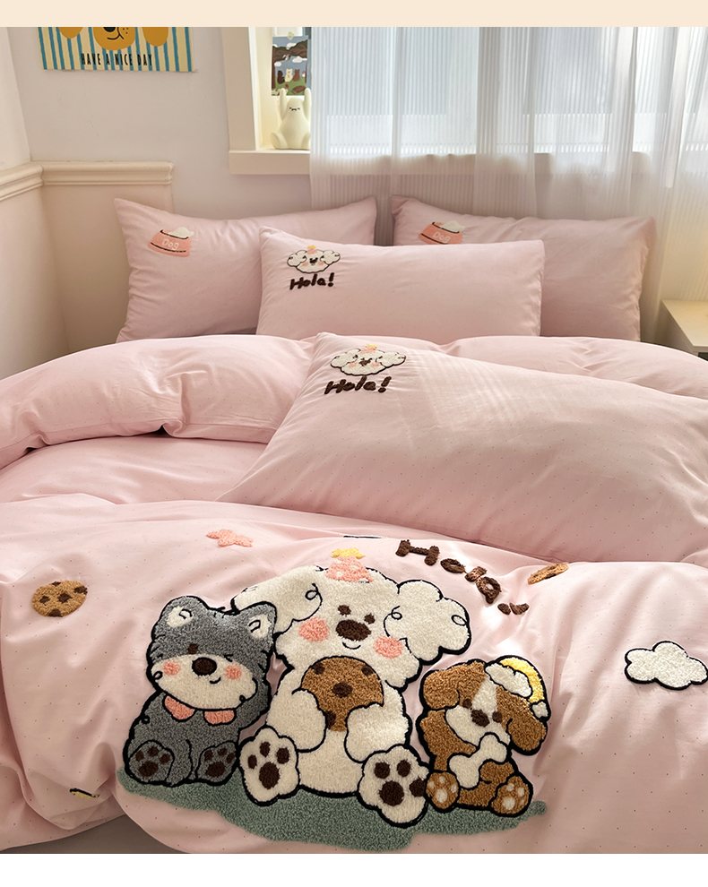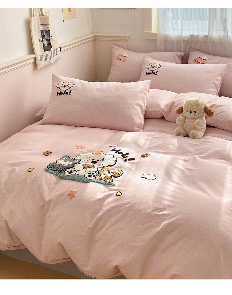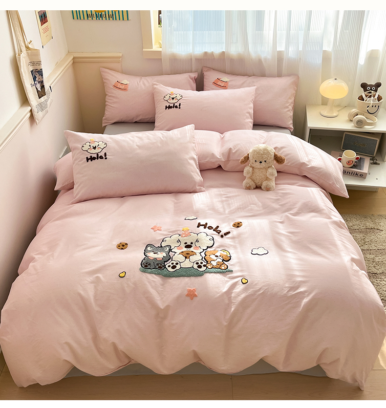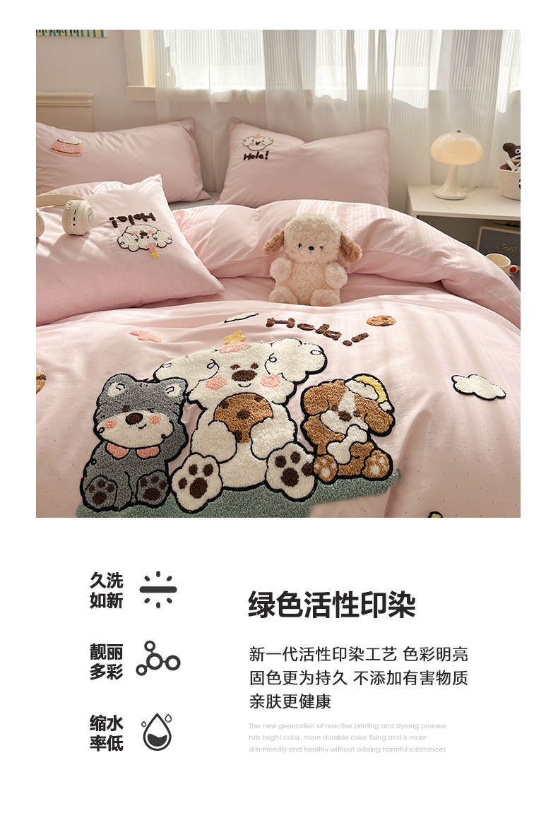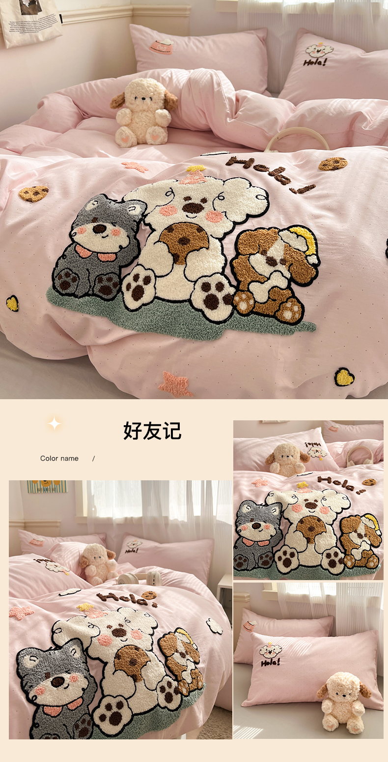 (总)寐居家纺 2025新款贴布绣高克重牛奶绒四件套,安吉拉喵,查理狗,粉糯kitty,皮皮布布