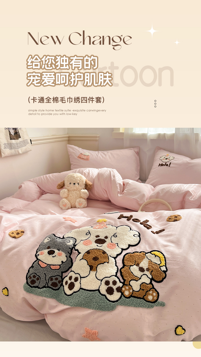 寐居家纺 2025新款全棉13070毛巾绣四件套 好友记