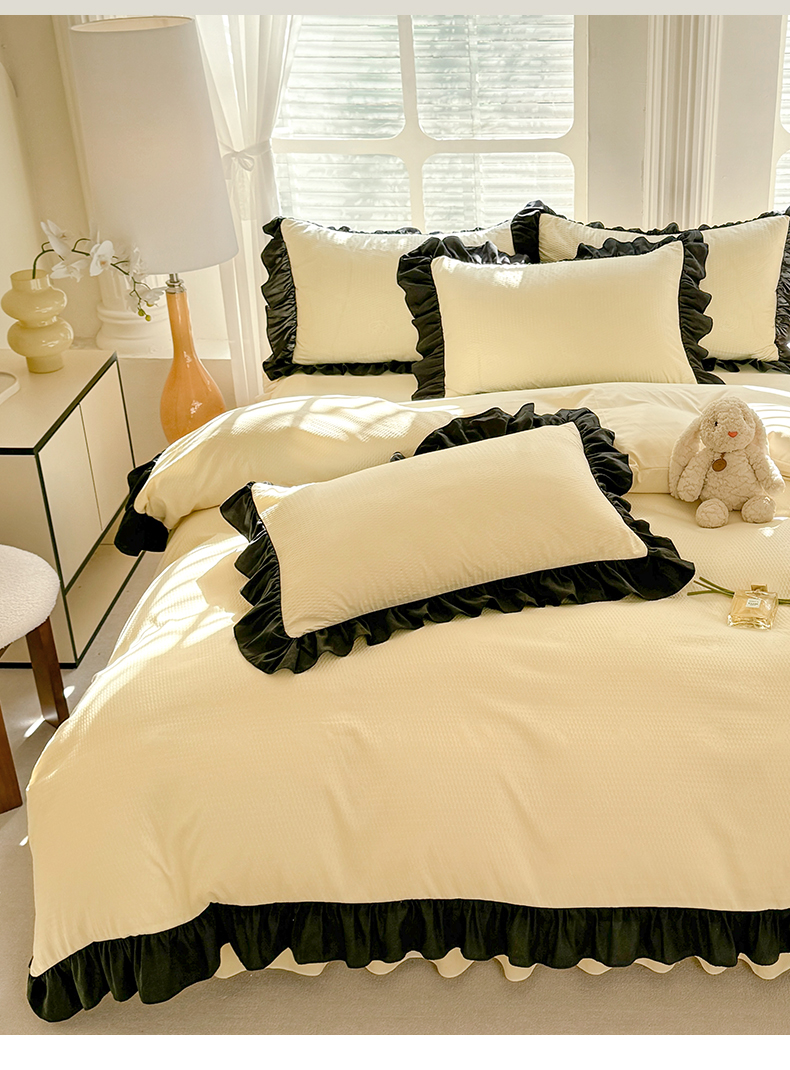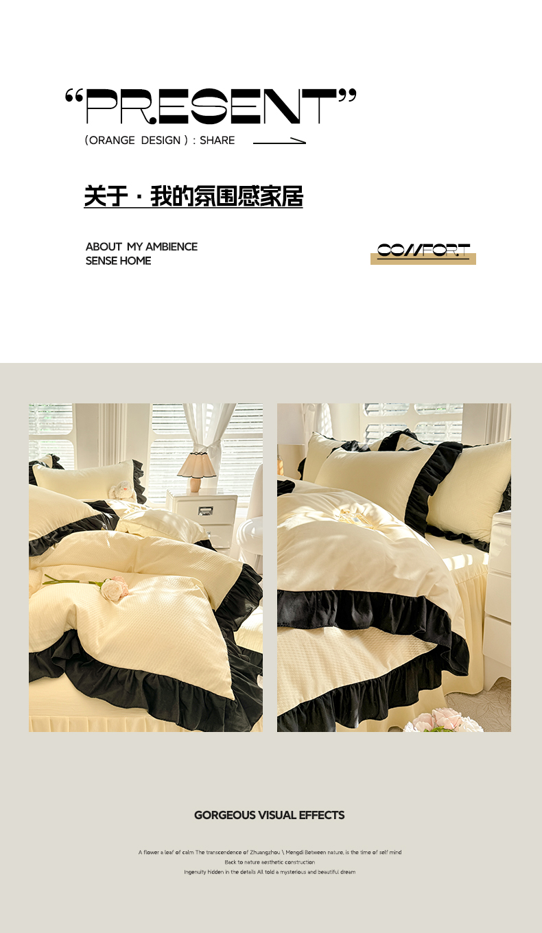 当前位置: 91家纺网 > 商品网购 > 床品套件 > 四件套 > 普通磨毛四件套 > 逸尚阁 2025新款水洗磨毛提花花边四件套--邂逅系列(提供买家秀) 邂逅-珍珠白