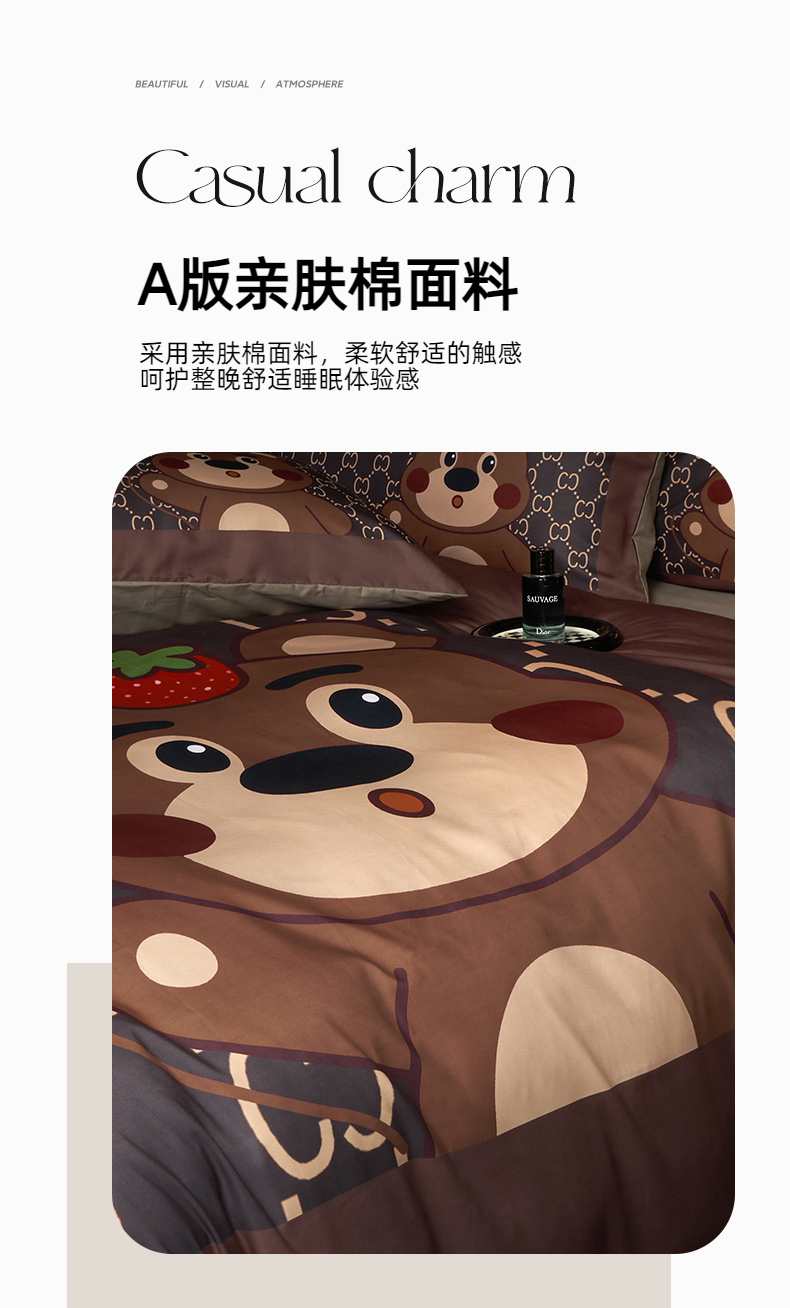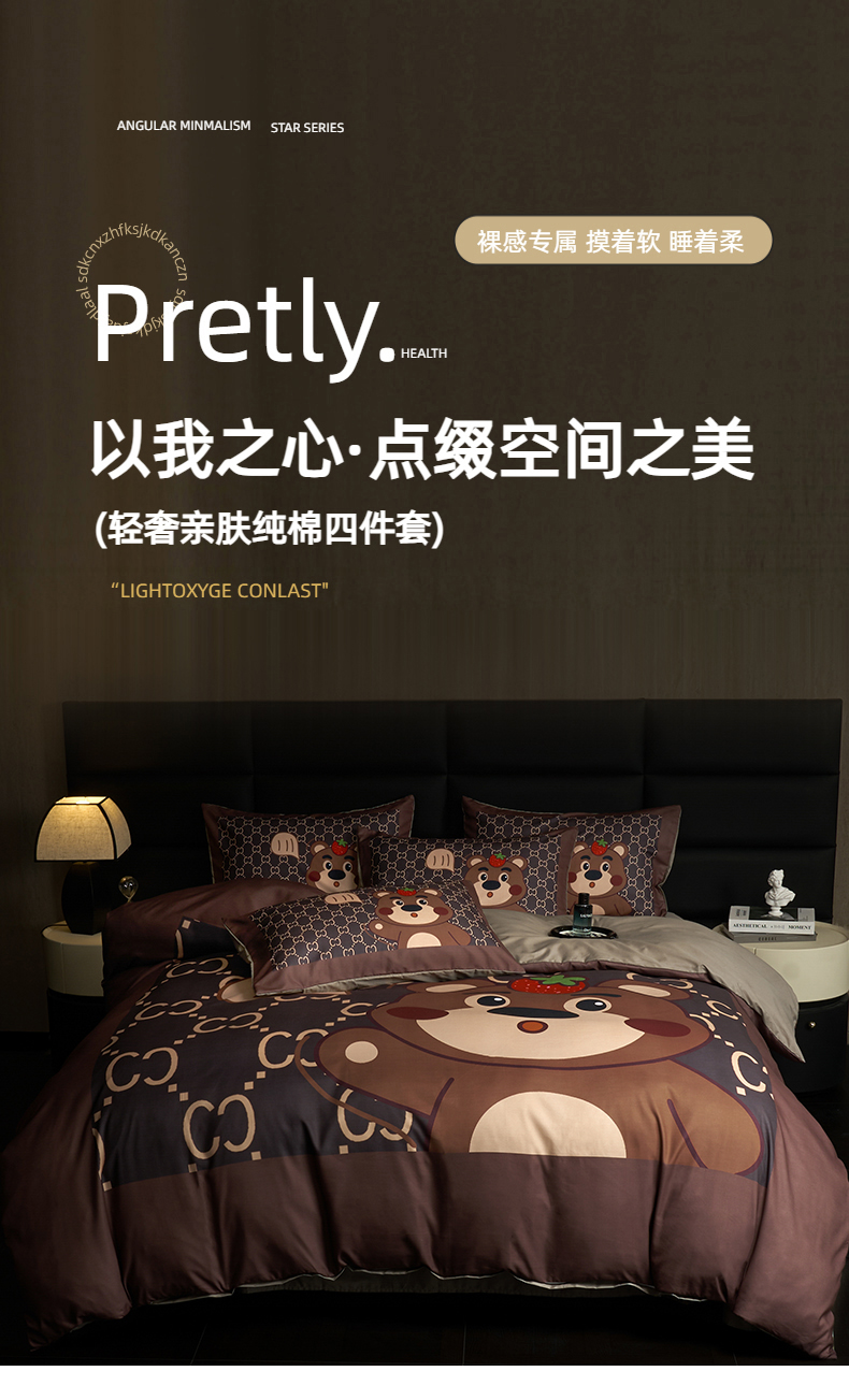 当前位置: 91家纺网 > 商品网购 > 床品套件 > 四件套 > 全棉普通四件套 > 花沐 2025新款轻奢潮牌亲肤棉纯棉四件套 古熊