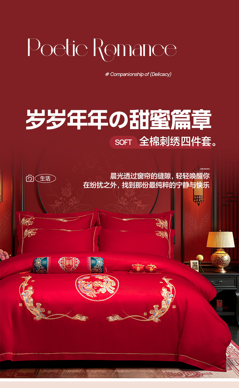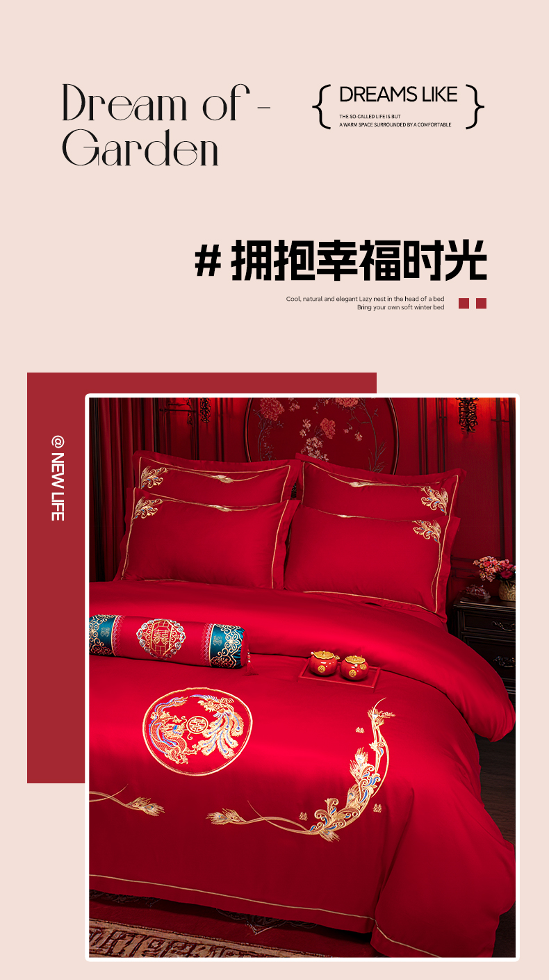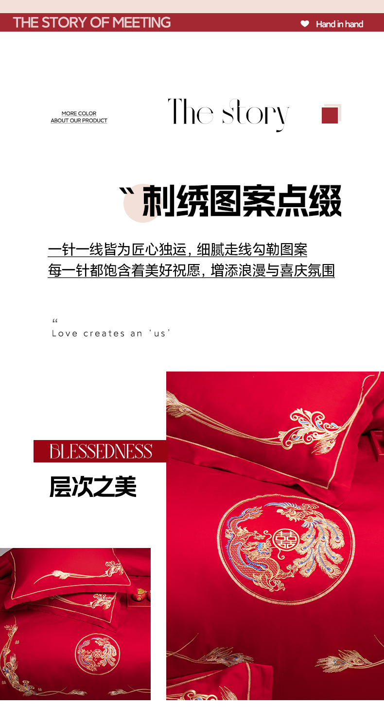 (总)花愿(原花纪) 2025新款水洗棉刺绣婚庆四件套系列,丹枫迎喜,欢喜,良缘,龙凤欢喜,玫瑰之恋,美满,如意,天禧,唯一,喜爱,心心相印,幸福,永恒之恋,钟爱一生