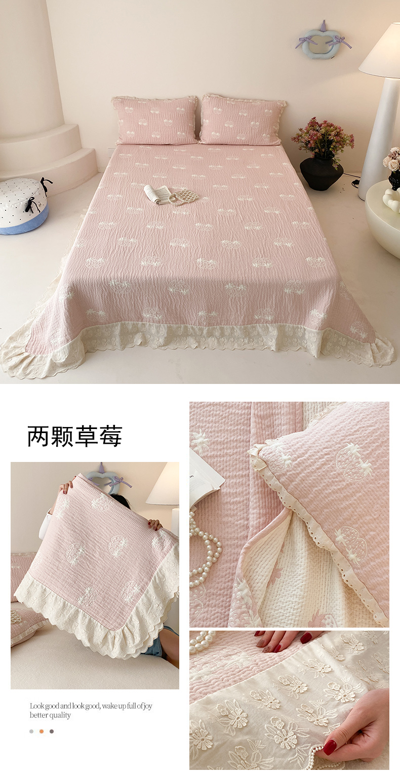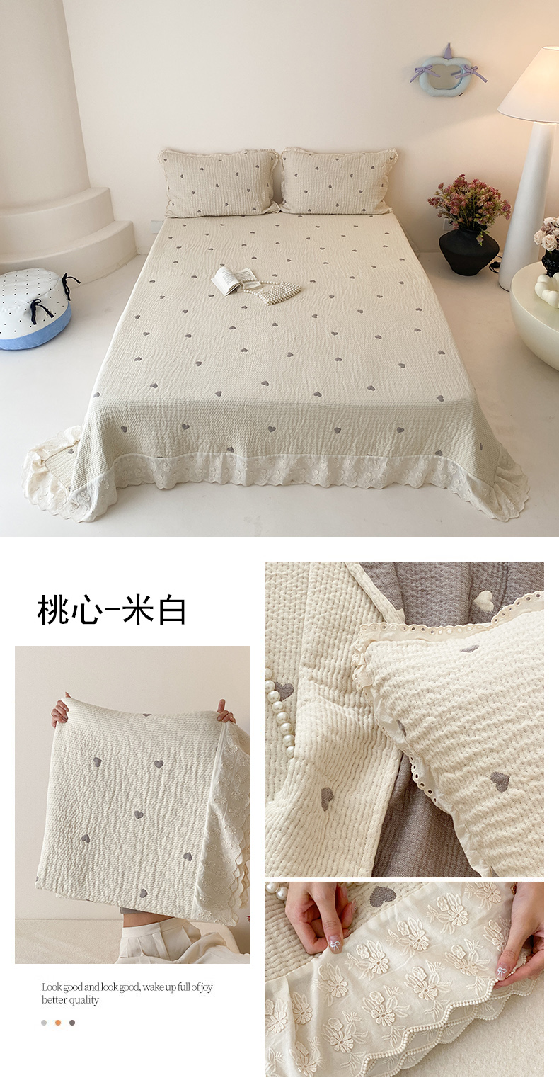 (总)麻依 2025新款韩国清新全棉纱布床盖三件套,憨憨熊,彩色南瓜,车厘子,两颗草莓,奶盖KT,奶油波点-灰,奶油彩点,水蓝KT,水墨花,丝带,桃心-米白,小猫鱼