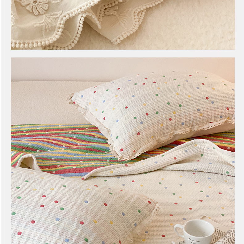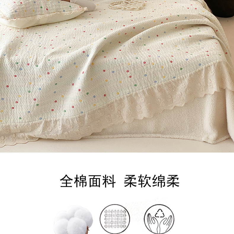 商品名称:麻依 2025新款韩国清新全棉纱布床盖三件套 奶油波点-灰