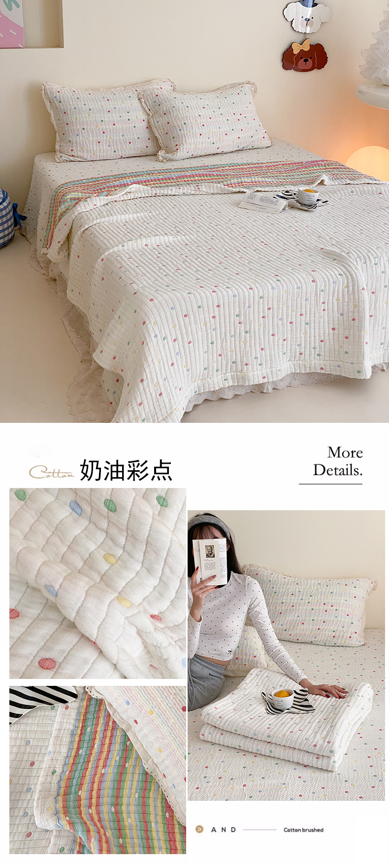 (总)麻依 2025新款韩国清新全棉纱布床盖三件套,憨憨熊,彩色南瓜,车厘子,两颗草莓,奶盖KT,奶油波点-灰,奶油彩点,水蓝KT,水墨花,丝带,桃心-米白,小猫鱼