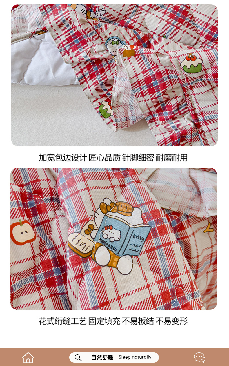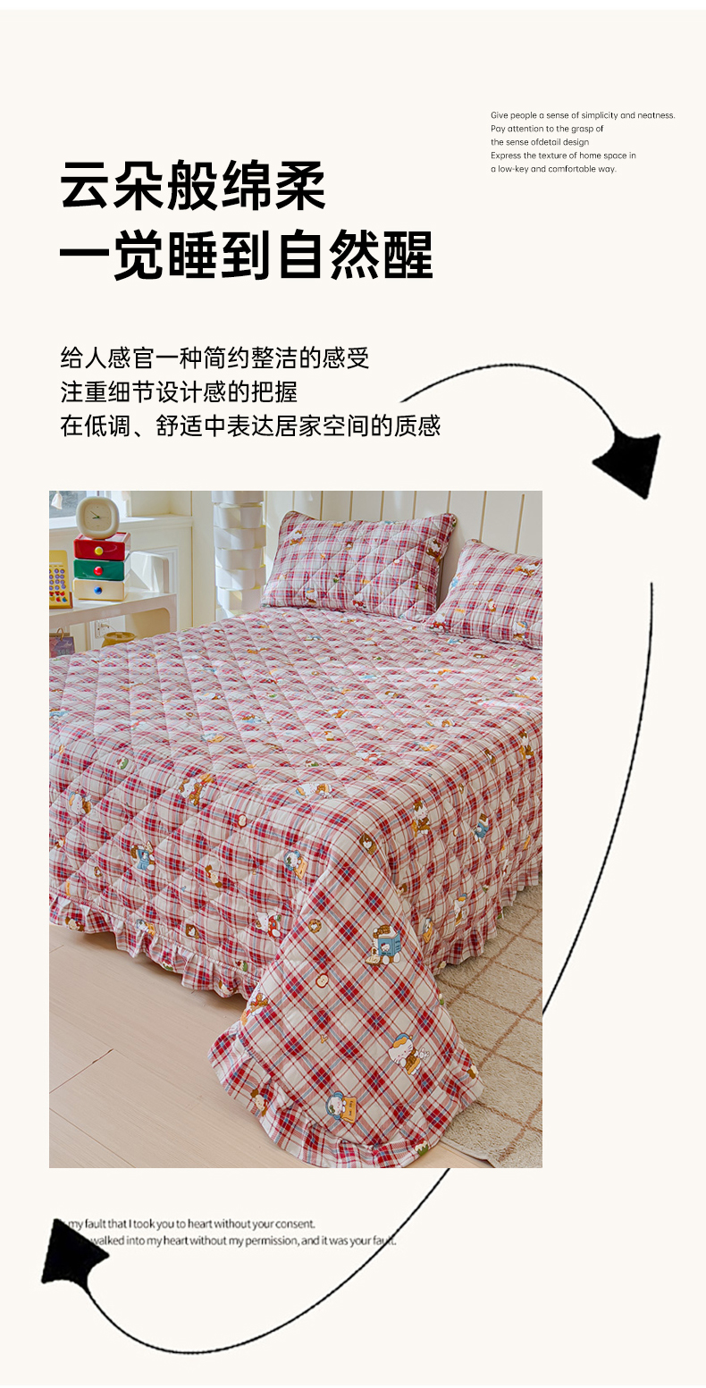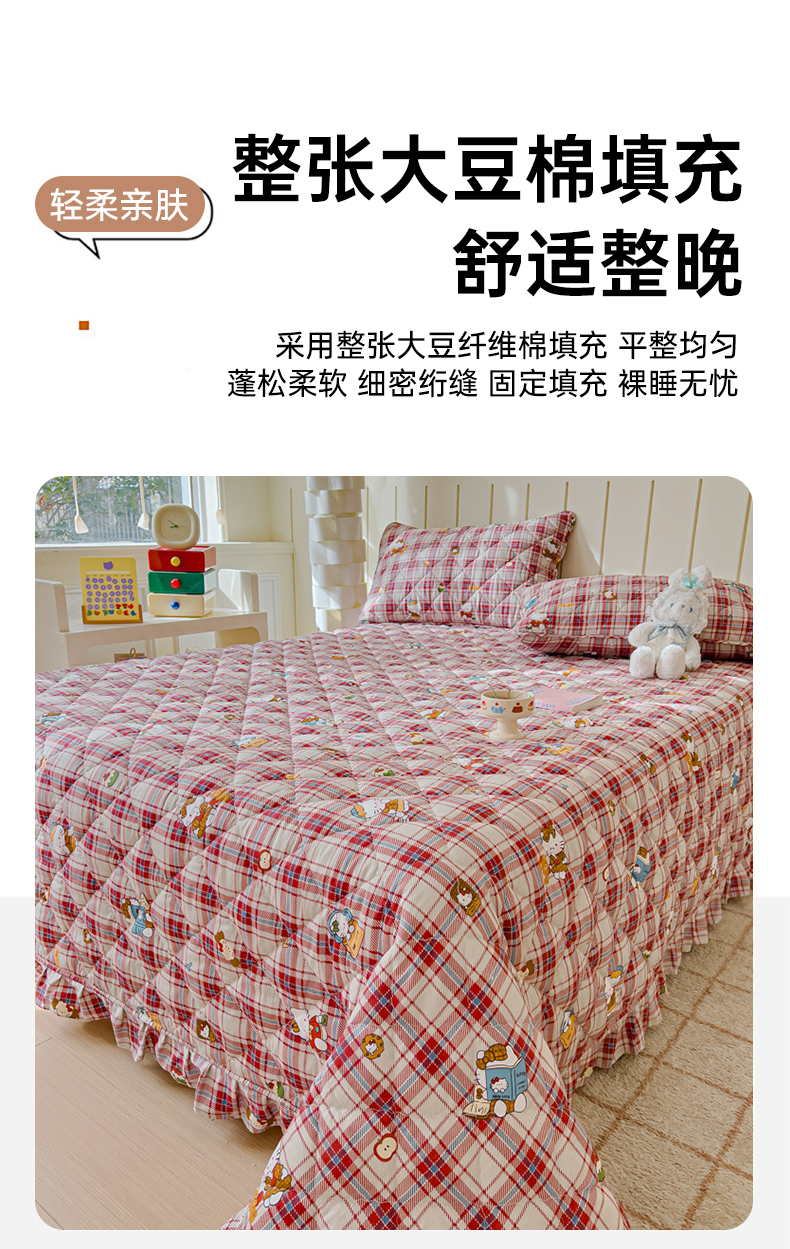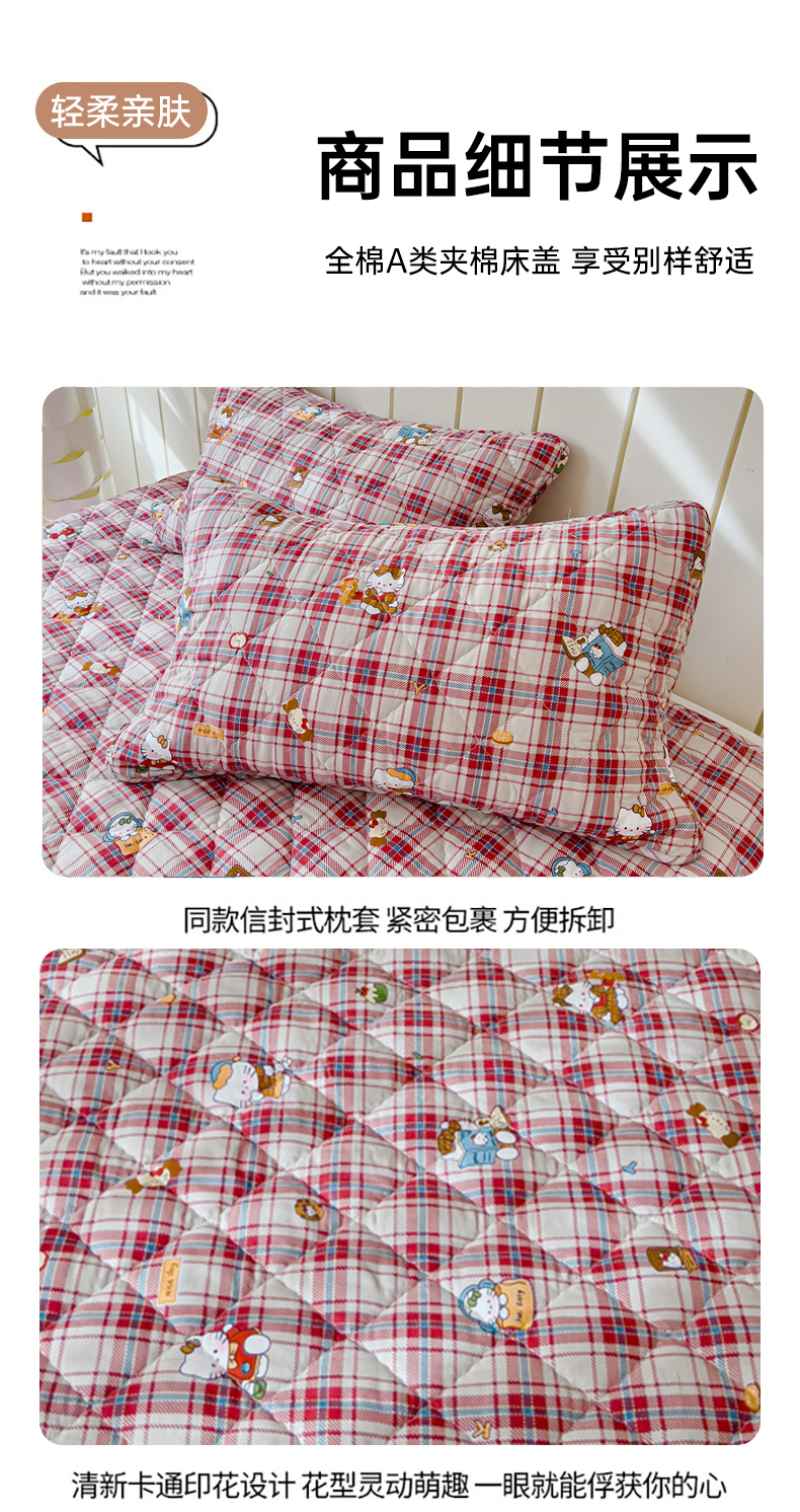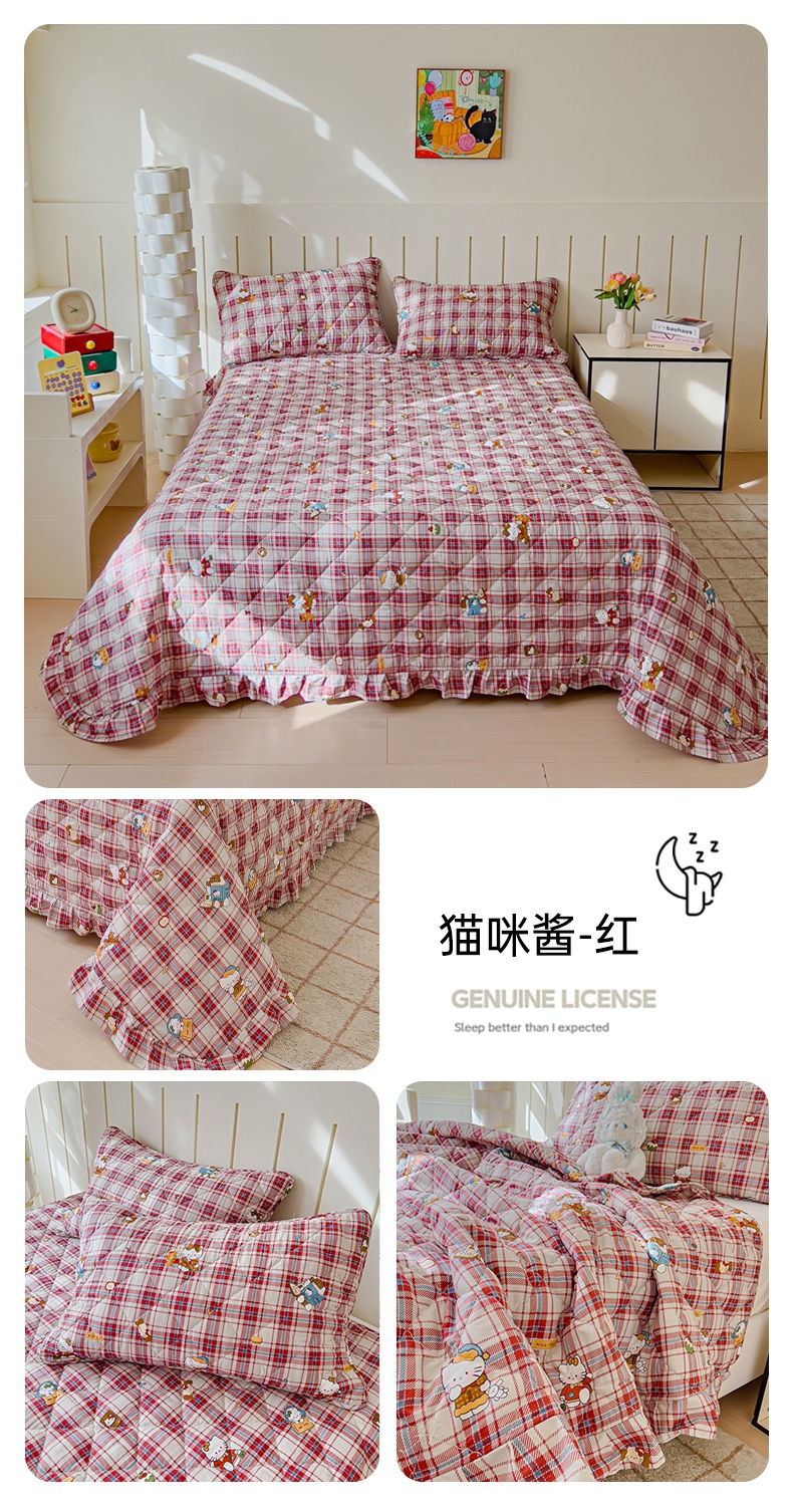 商品名称:U品汇 2025新品A类全棉夹棉床盖纯棉100%棉绗缝三件套炕垫褥子13372 G猫咪酱-红