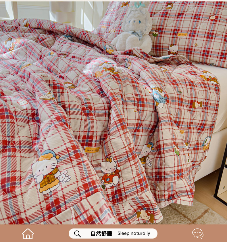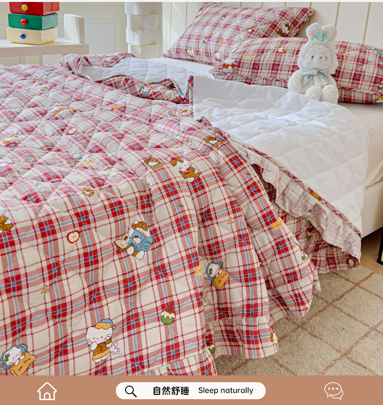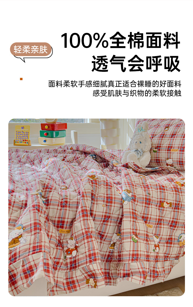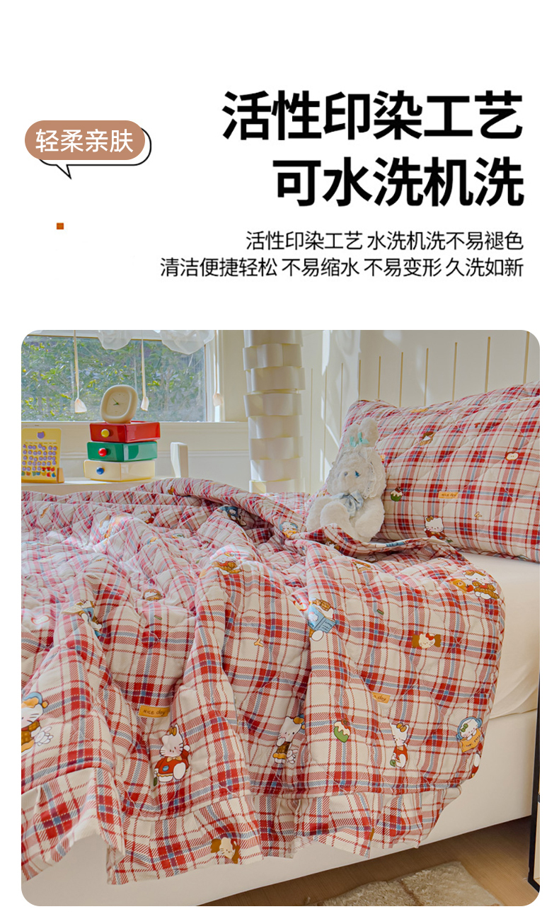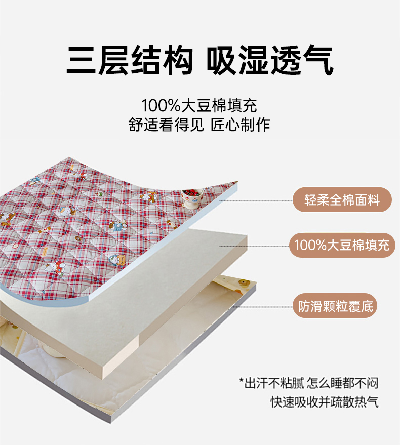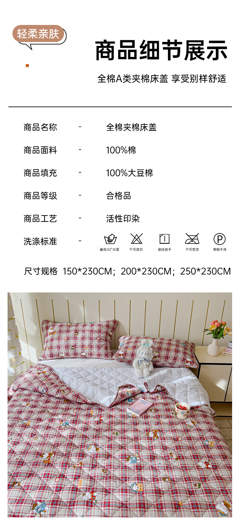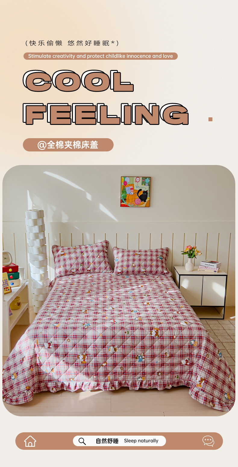 商品名称:U品汇 2025新品A类全棉夹棉床盖纯棉100%棉绗缝三件套炕垫褥子13372 G猫咪酱-红