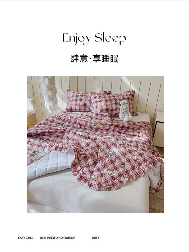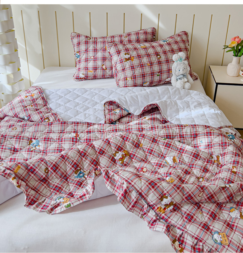 U品汇 2025新品A类全棉夹棉床盖纯棉100%棉绗缝三件套炕垫褥子13372 G猫咪酱-红
