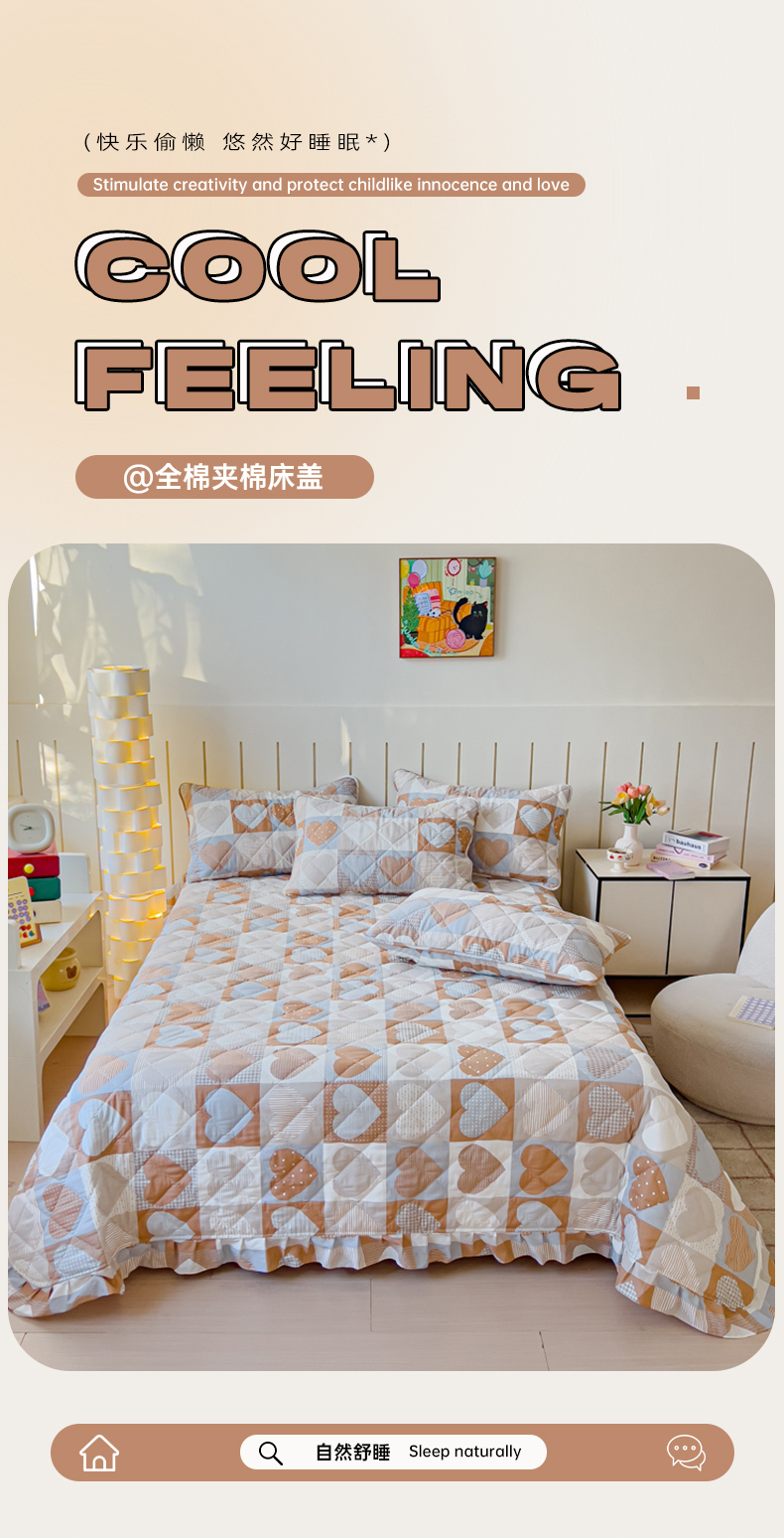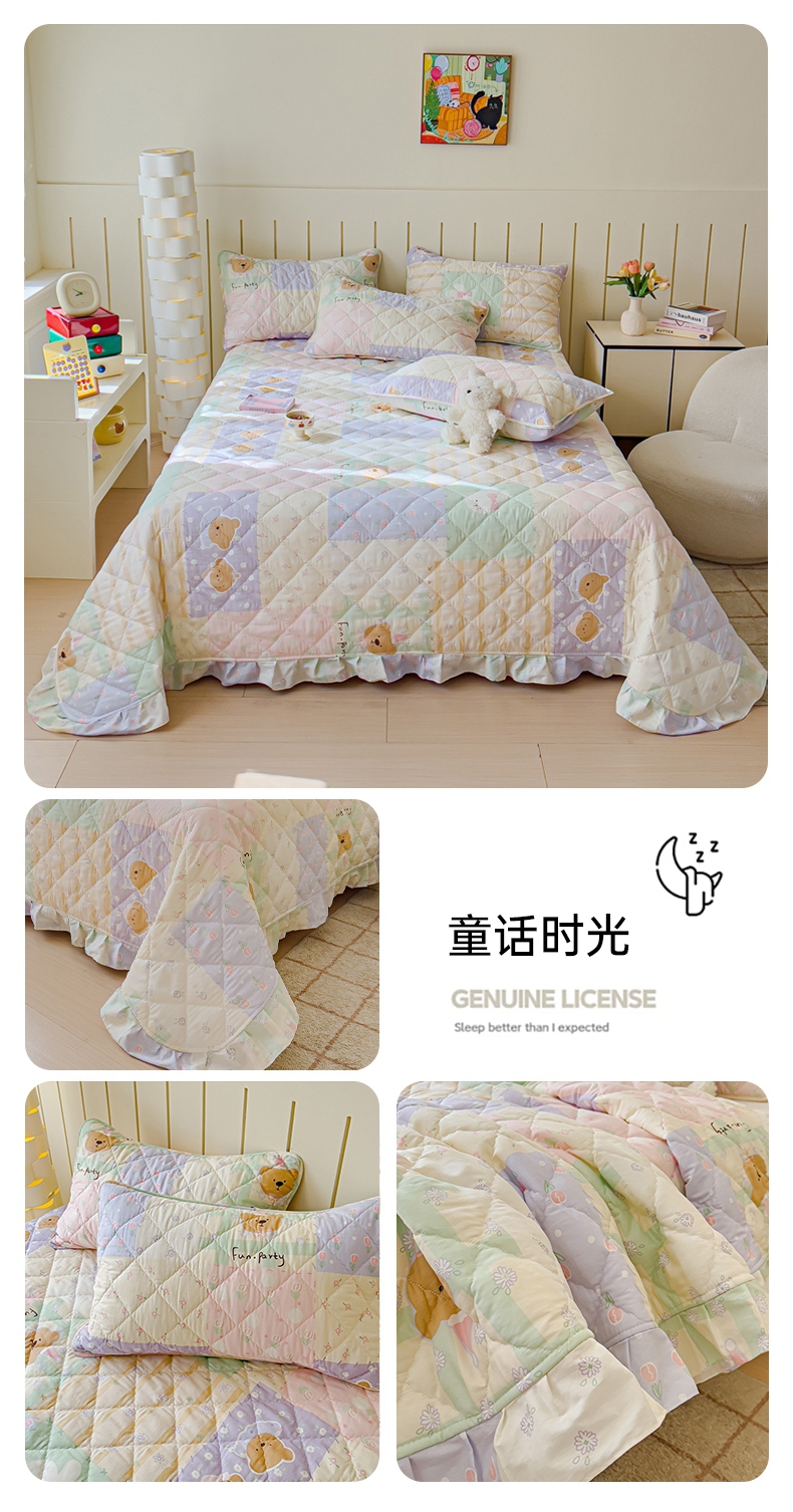商品名称:U品汇 2025新品A类全棉夹棉床盖纯棉100%棉绗缝三件套炕垫褥子13372 G向云端-绿