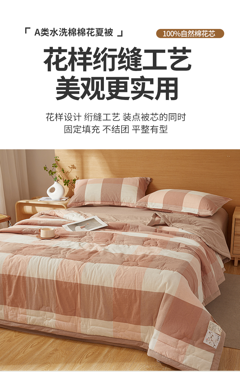 新疆纯棉花宽边无印款全棉水洗棉夏凉被空调被薄款春秋被 卡其大格