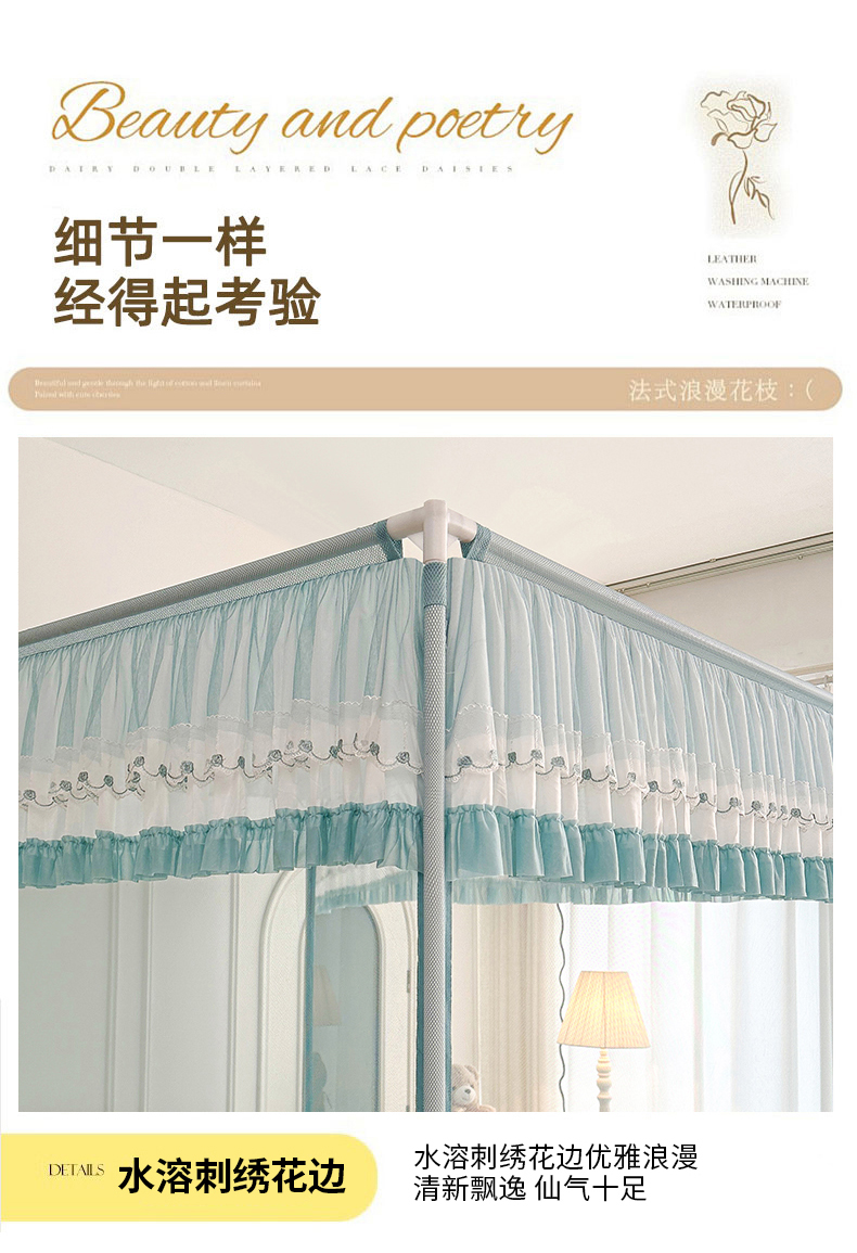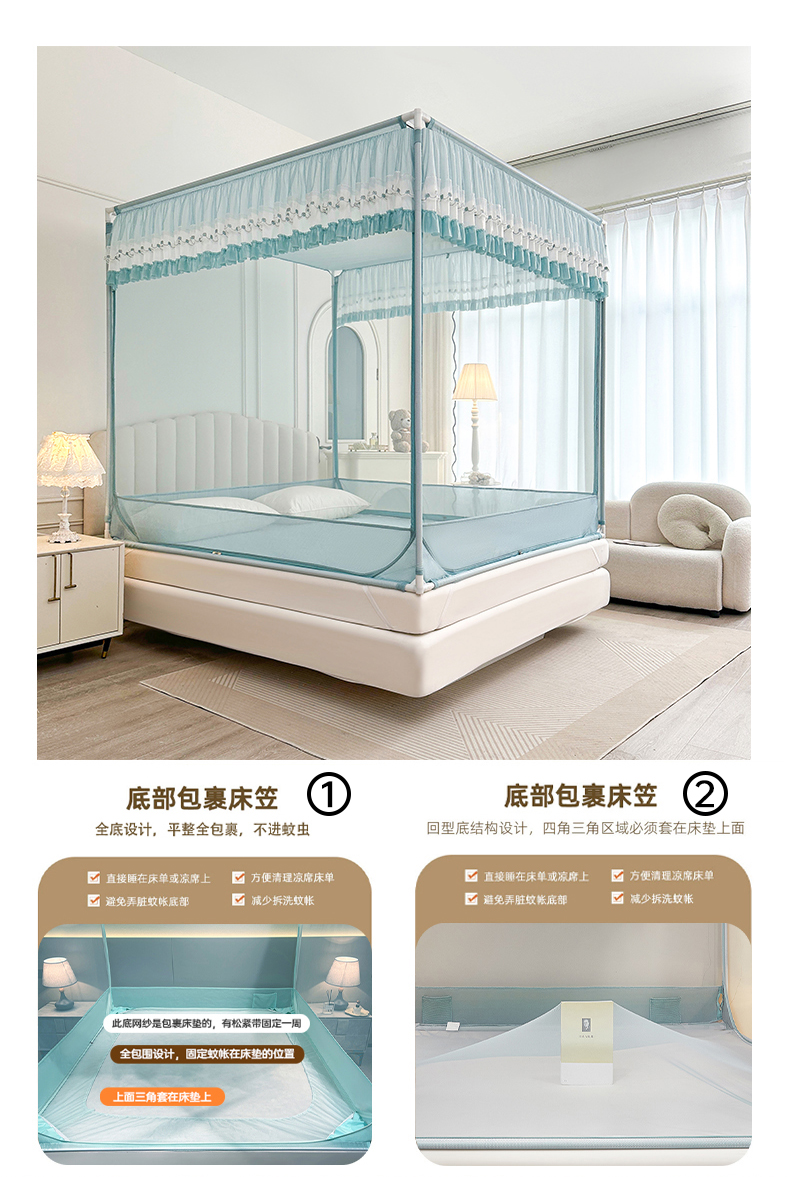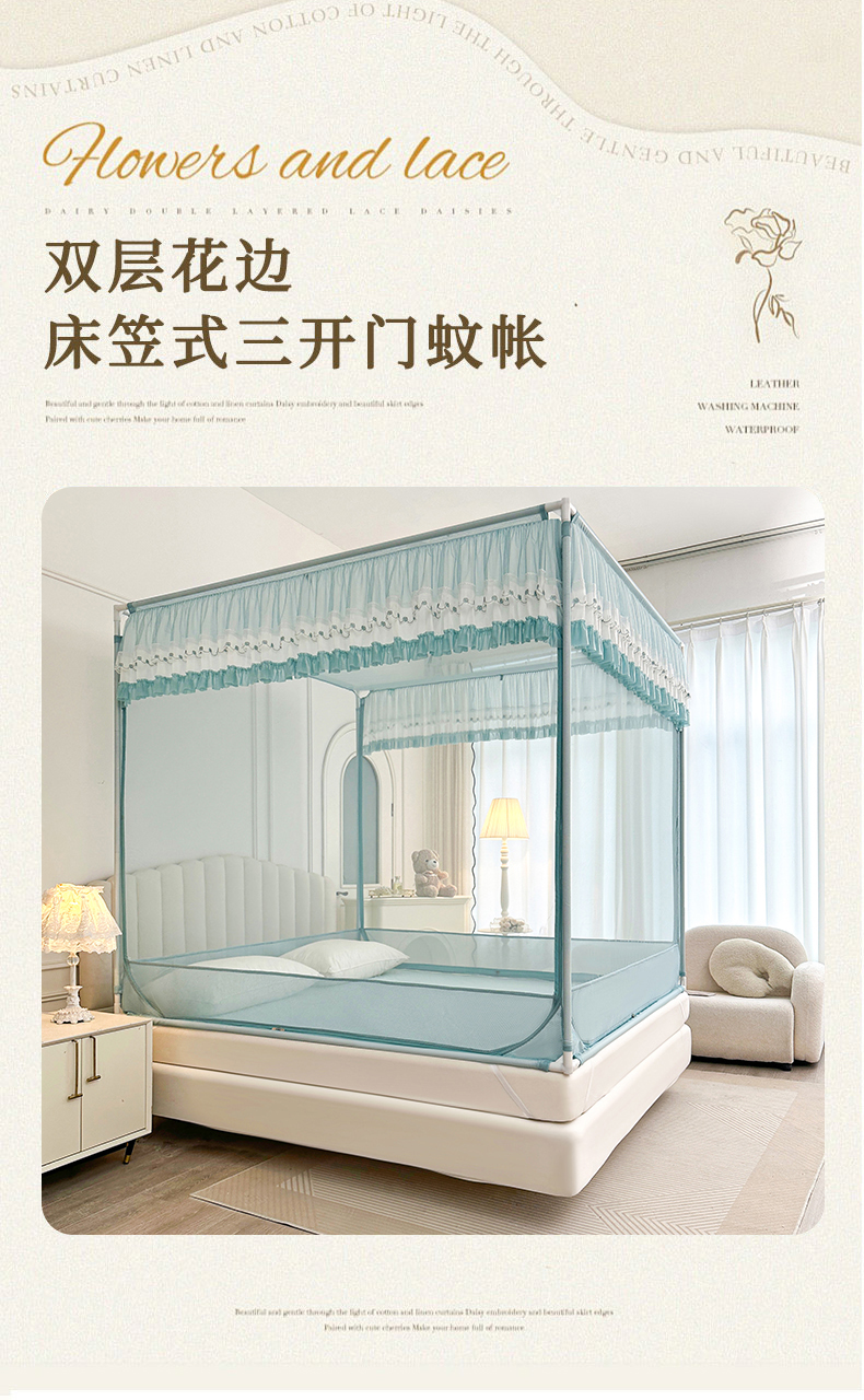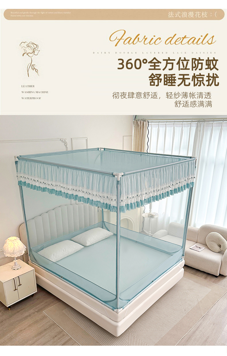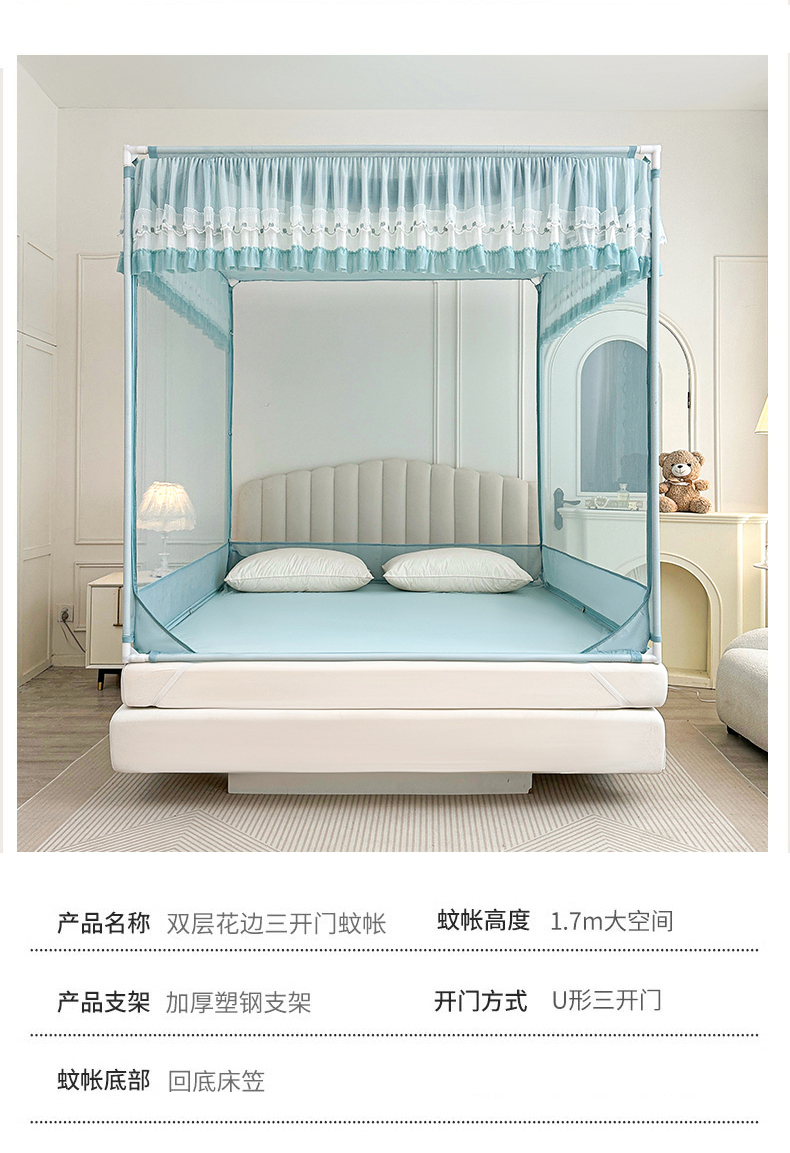 当前位置: 91家纺网 > 商品网购 > 床上用品 > 蚊帐 > 坐床式蚊帐 > 梦尔佳蚊帐 2025新款双层花边全包围全底款和床笠款三开门蚊帐-863系列青春亮丽 淡蓝