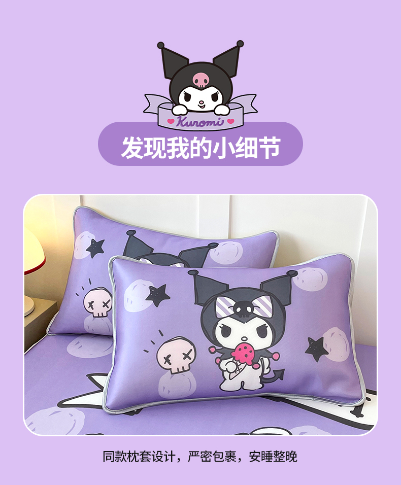 商品名称:米帛家纺 2025新款大版三丽鸥碳光冰丝软凉席床笠款 樱桃酷洛米