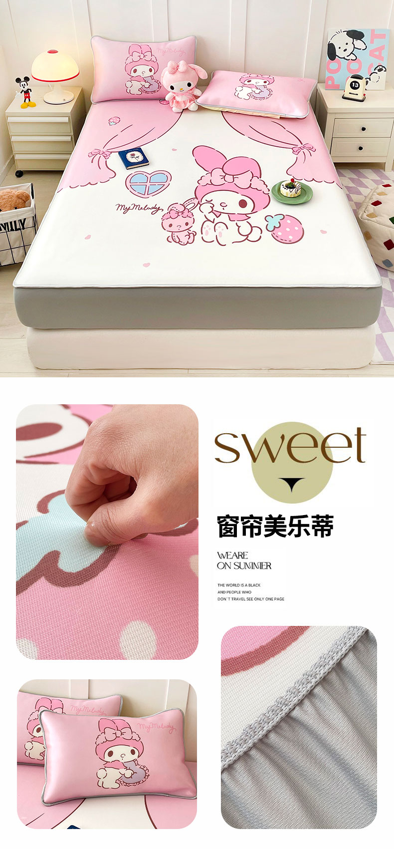 (总)米帛家纺 2025新款大版三丽鸥碳光冰丝凉席床笠款,圆点酷洛米,彩虹帕恰狗,彩虹玉桂狗,草莓美乐蒂,窗帘美乐蒂,粉色酷洛米,皇冠玉桂狗,木马美乐蒂,气球玉桂狗,巧克力酷洛米,糖果美乐蒂,糖果玉桂狗,香水凯蒂猫,樱桃凯蒂猫,樱桃酷洛米